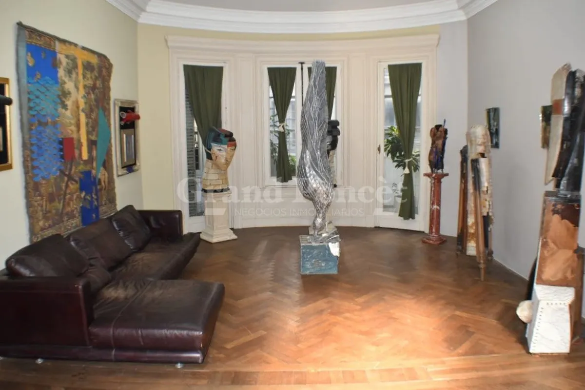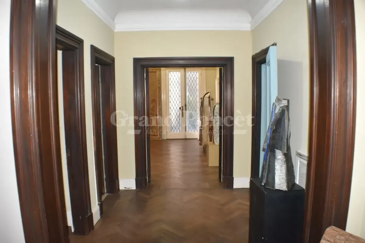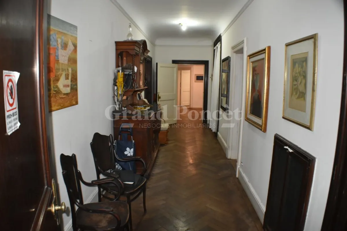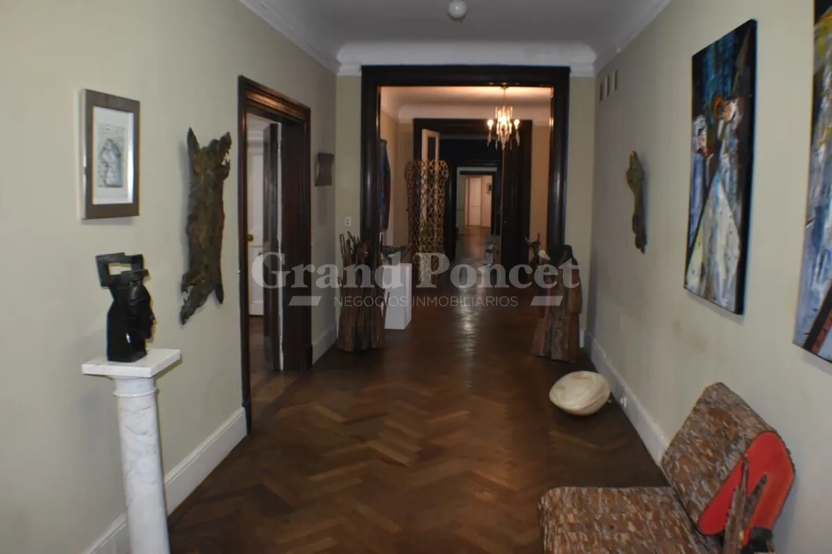 Piso de 12 ambientes en Retiro, con orientación norte. Se ubica en un edificio de 6 pisos, con 1 departamento por planta y ascensor; ocupa el frente del edificio. Cuenta con calefacción y agua caliente individuales, techos altos y pisos de parquet de roble. La unidad tiene cocina y baños equipados; el comedor incluye hogar. Originalmente tenía 2 dependencias de servicio, que fueron transformadas en 2 departamentos independientes de 1 ambiente, cada uno con baño y cocina. Tiene 2 cocheras en plan