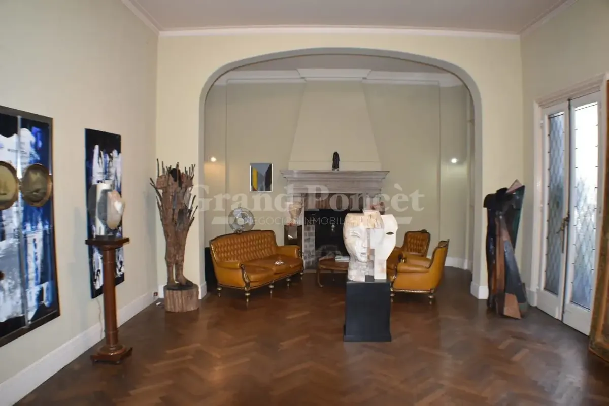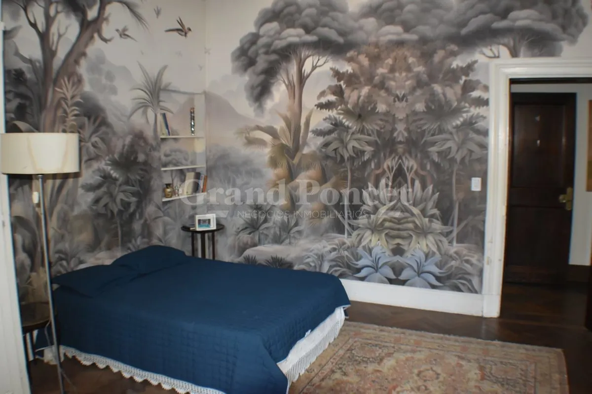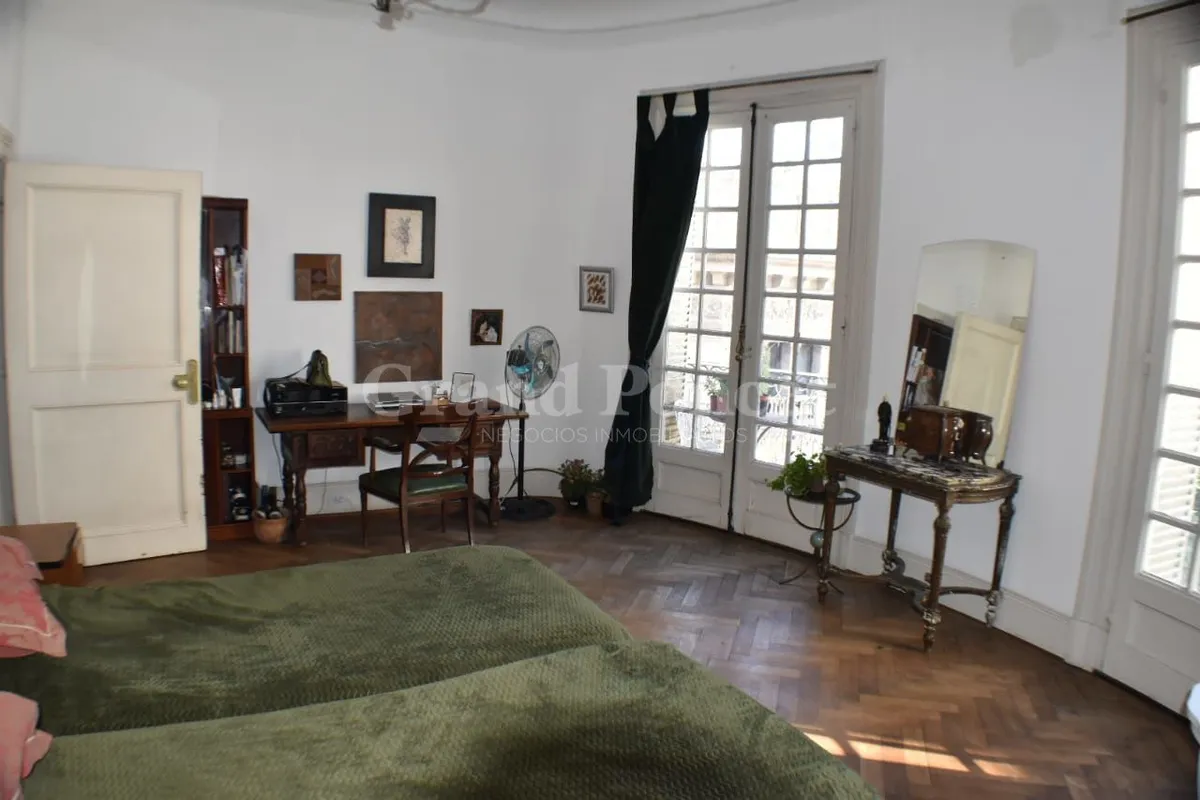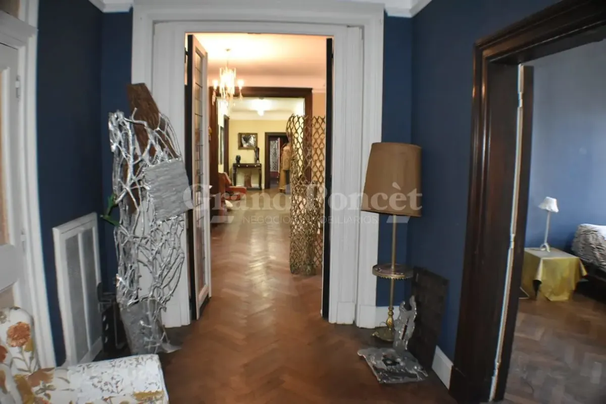 Piso de 12 ambientes en Retiro, con orientación norte. Se ubica en un edificio de 6 pisos, con 1 departamento por planta y ascensor; ocupa el frente del edificio. Cuenta con calefacción y agua caliente individuales, techos altos y pisos de parquet de roble. La unidad tiene cocina y baños equipados; el comedor incluye hogar. Originalmente tenía 2 dependencias de servicio, que fueron transformadas en 2 departamentos independientes de 1 ambiente, cada uno con baño y cocina. Tiene 2 cocheras en plan