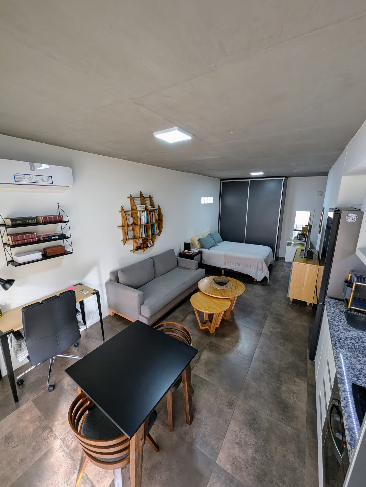 Monoambiente de 32 m² en planta al frente, con orientación norte. Cuenta con cama doble, living con sofá, TV Smart QLED y mesa de comedor. La cocina incluye microondas y heladera. Tiene baño completo y escritorio. Dispone de aire acondicionado frío/calor y balcón. Apto profesional. Expensas $184.504 y alquiler $900.000.