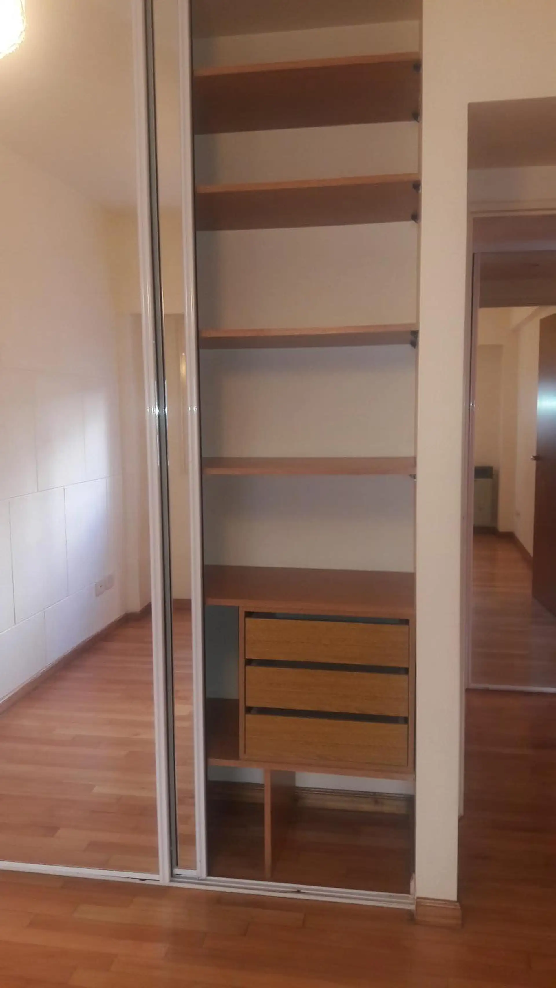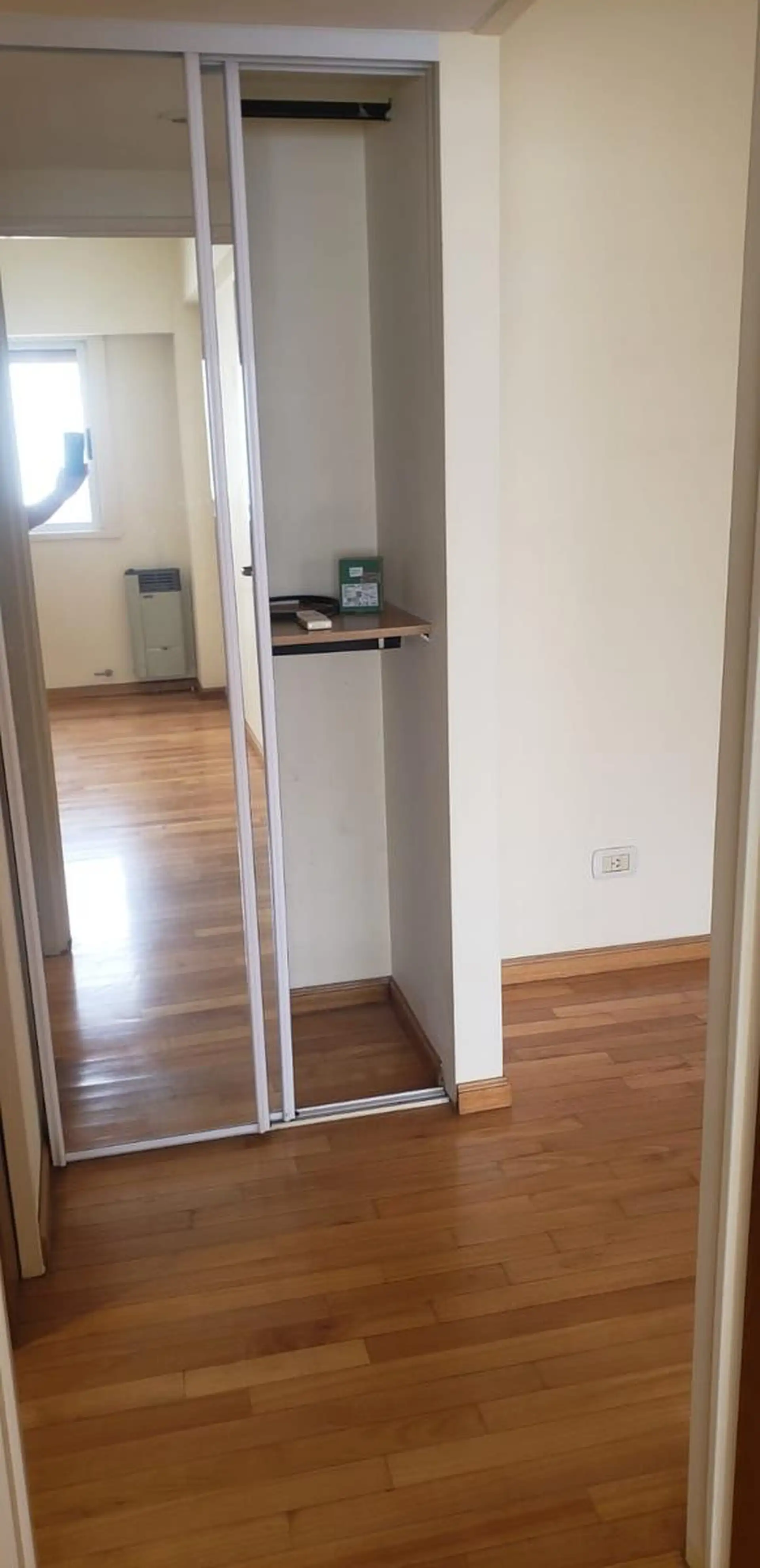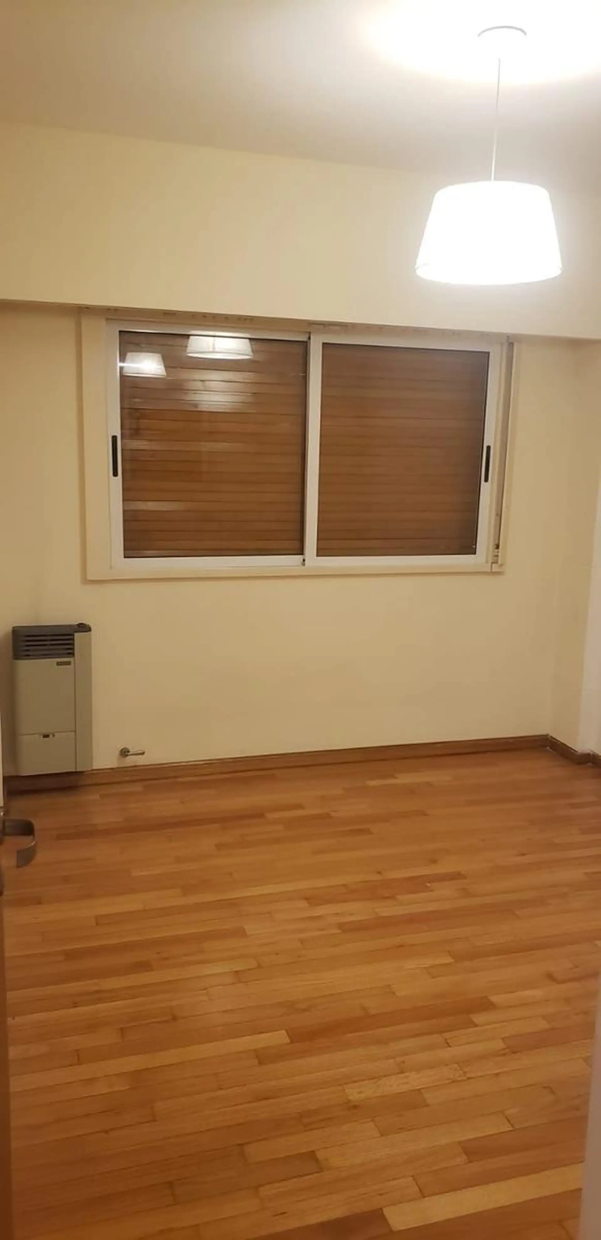 Departamento de 2 ambientes con 1 dormitorio, en Almagro. Cuenta con hall de entrada, puerta blindada, living comedor con placard y equipo de aire tipo split frío-calor, y dormitorio con placard de puertas corredizas con frente espejado. Incluye estufa a gas de tiro balanceado, pisos de parquet, cocina comedor con doble mesada, alacenas, pileta doble, artefacto de cocina a gas de 4 hornallas con horno y purificador extractor de aire tipo Spar, agua caliente por calefón a gas y baño con vannitory