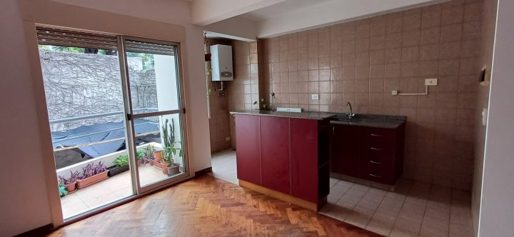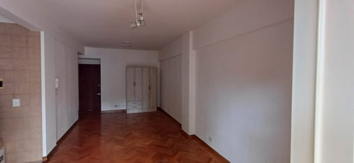Departamento monoambiente en alquiler, con cocina integrada y balcón. Cuenta con pisos de madera de pinotea, conexión para lavarropa y baño completo. Tiene ascensor y es apto profesional. La locación exige ingresos comprobables, seguro de caución, 1 mes de anticipo y depósito de U$S 500; no se aceptan mascotas. Contrato de 2 años o a convenir, con actualización cuatrimestral según el Índice de Contratos de Locación.