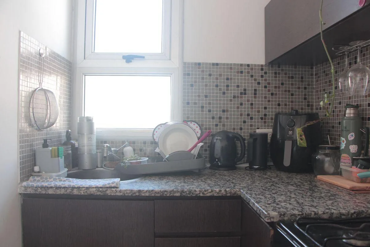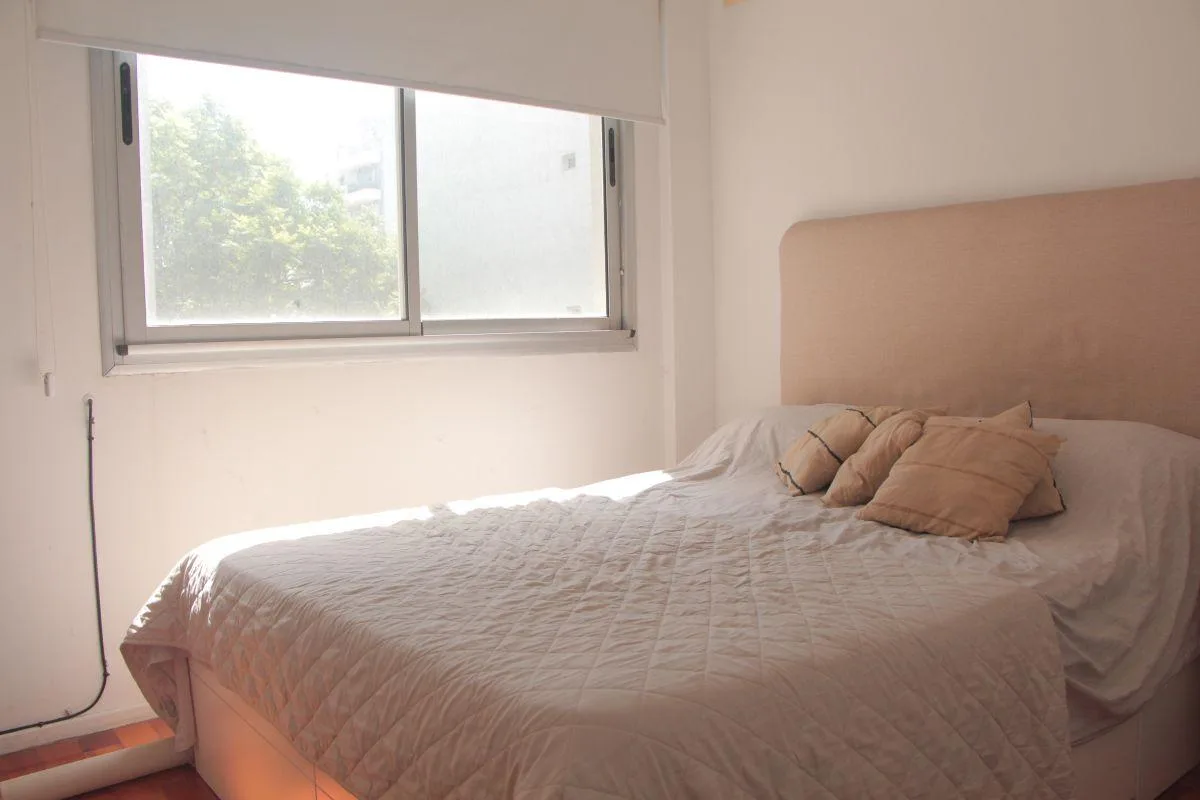 Departamento de 2 ambientes de 1 dormitorio en el 3er piso, al contrafrente. Cuenta con living comedor con aire acondicionado y salida al balcón, cocina independiente con bajo mesada y alacena, dormitorio con placard y baño completo. El balcón tiene conexión para lavarropas. El edificio dispone de piscina. Expensas e impuestos a cargo del inquilino, con expensas que incluyen Aysa; expensas extraordinarias y ABL a cargo del propietario.