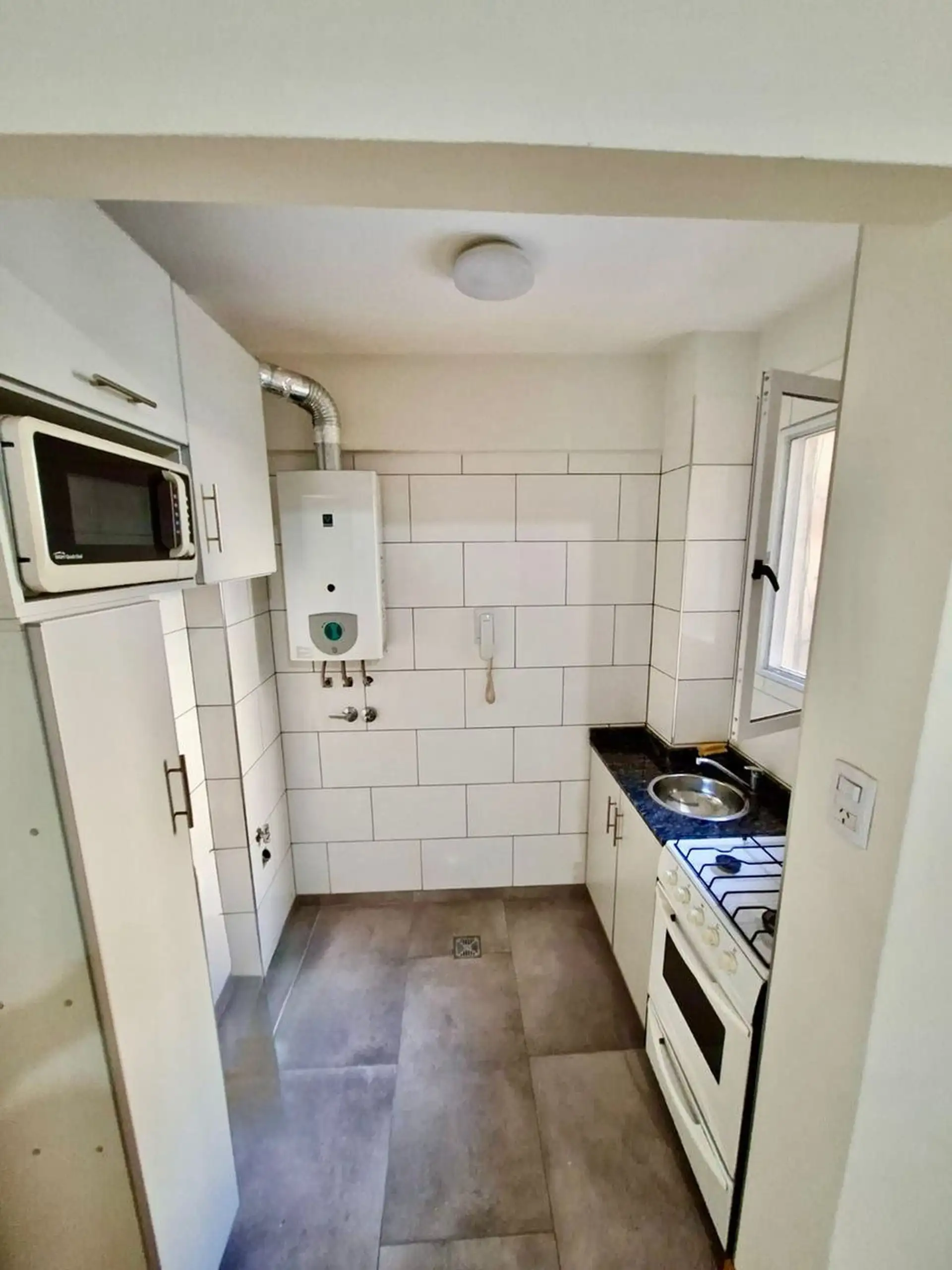 Departamento de 2 ambientes de 33 m² en Almagro Norte, al frente del Hospital Italiano. Sin muebles. Incluye living-comedor, cocina con microondas, dormitorio y baño completo, con calefactor interno. Requiere 1 mes de adelanto, 1 mes de depósito y seguro de caución; contrato por 2 años con ajuste trimestral por IPC.