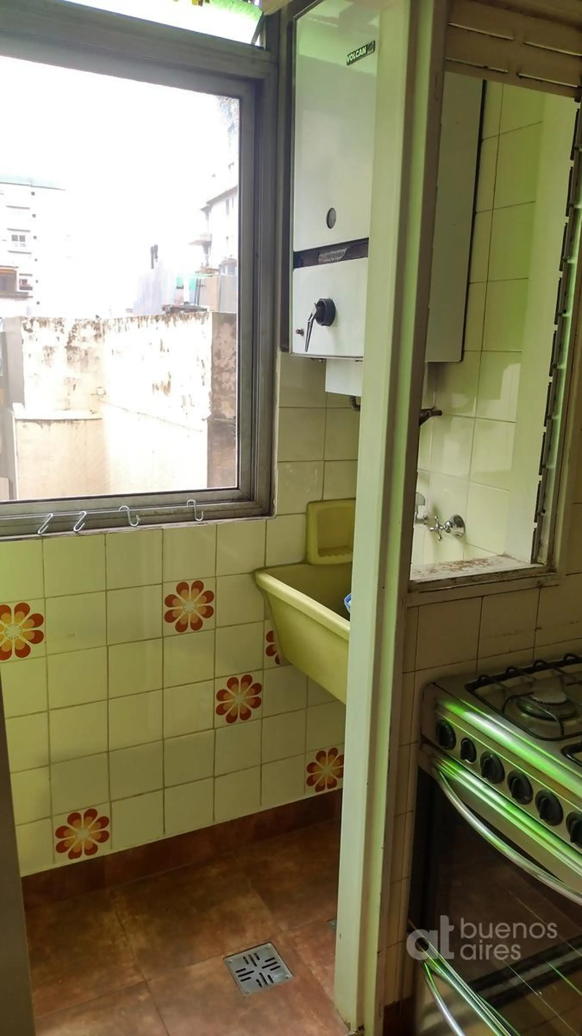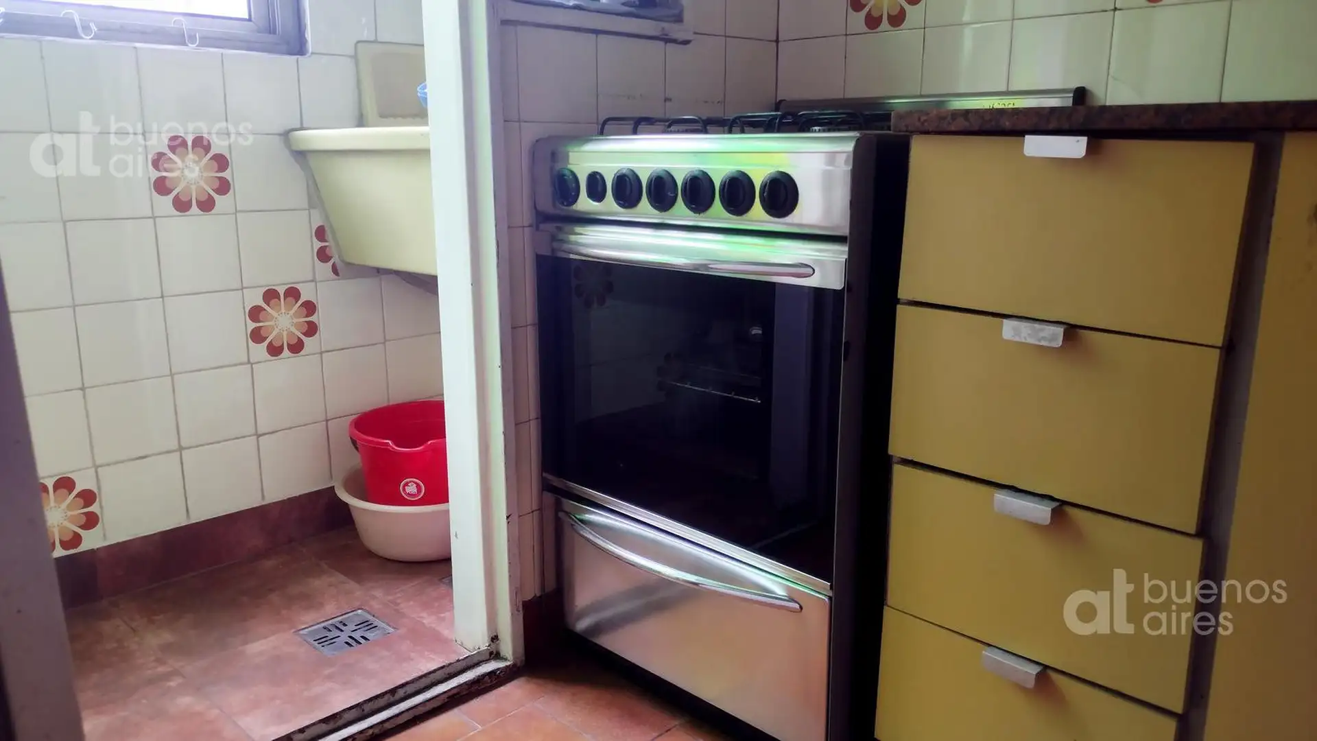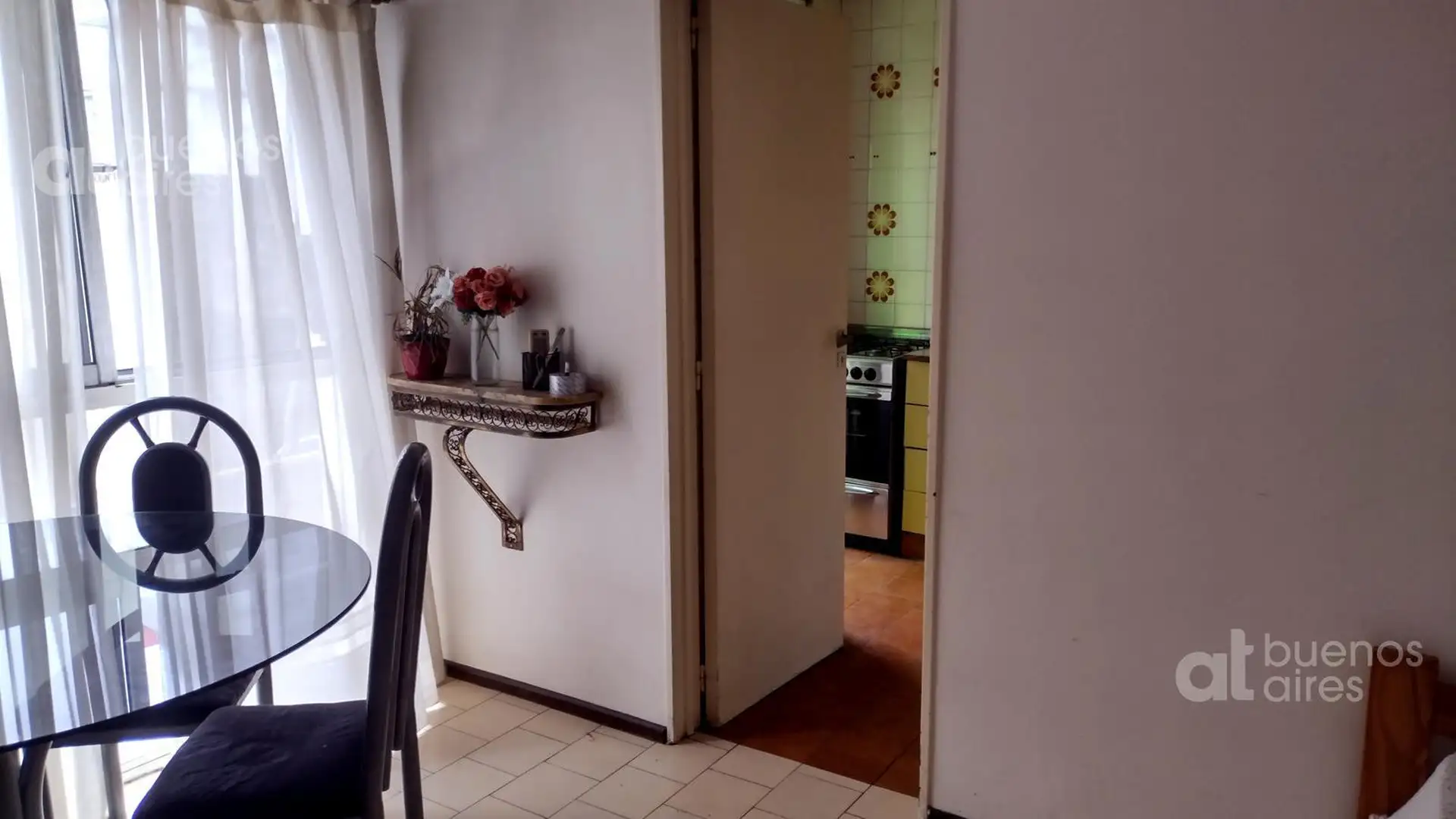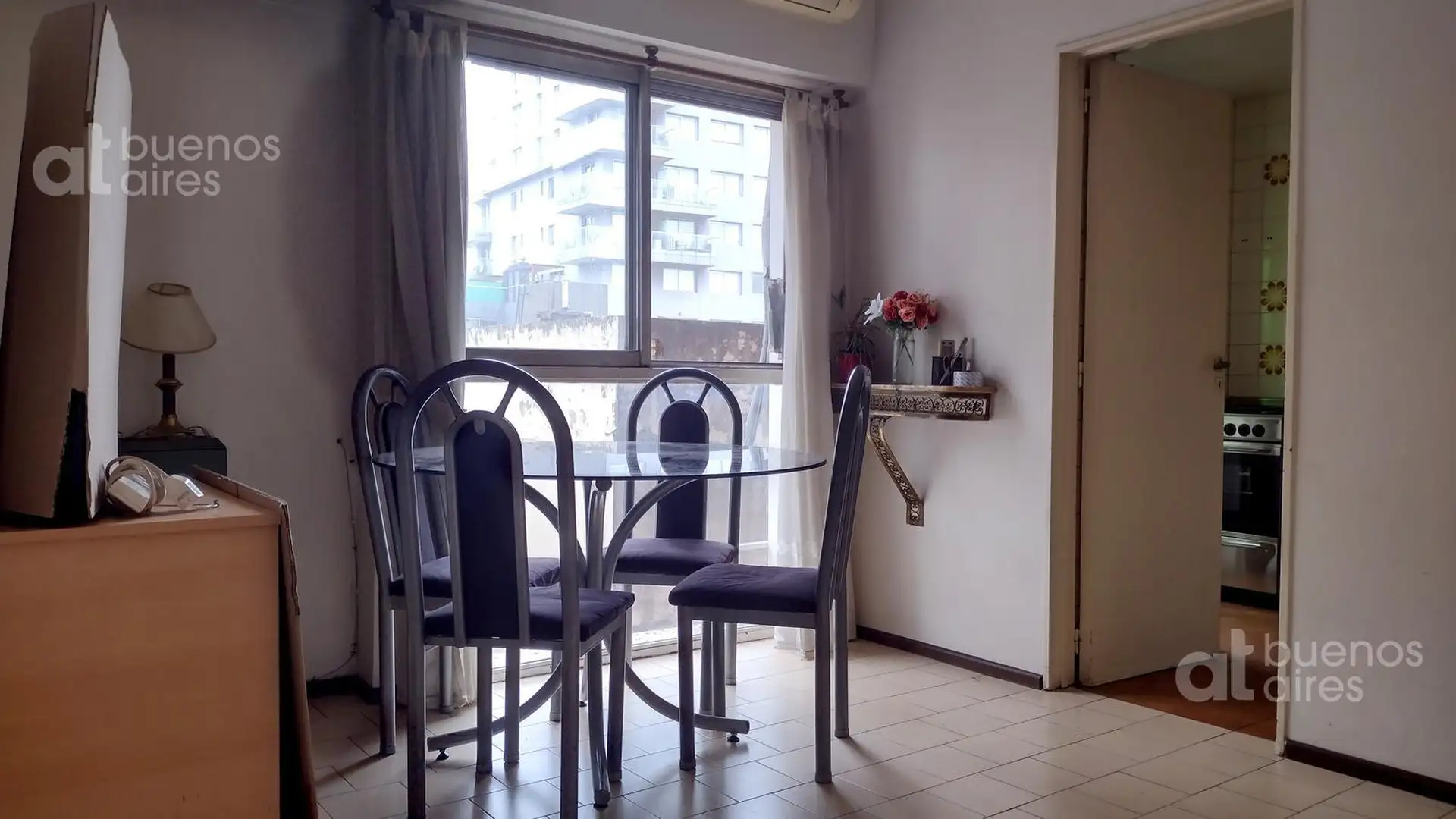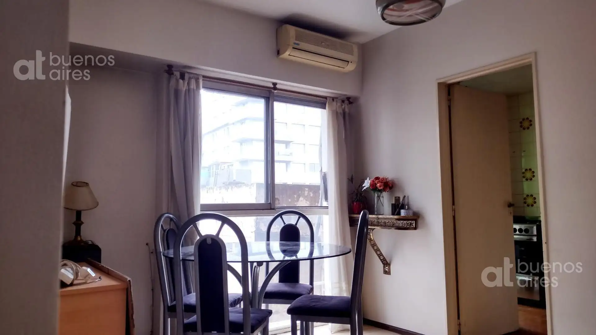 Departamento de 2 ambientes en Almagro. Disponible a partir del 21/04/2026. Cuenta con living comedor con sillón cama y aire acondicionado, y dormitorio con cama matrimonial, placard doble y ventilador de techo. La cocina tiene horno a gas de 4 hornallas y heladera con frizzer, con alacena y bajo mesada. Incluye baño completo y lugar para lavadero. El valor publicado se abona con expensas y servicios.