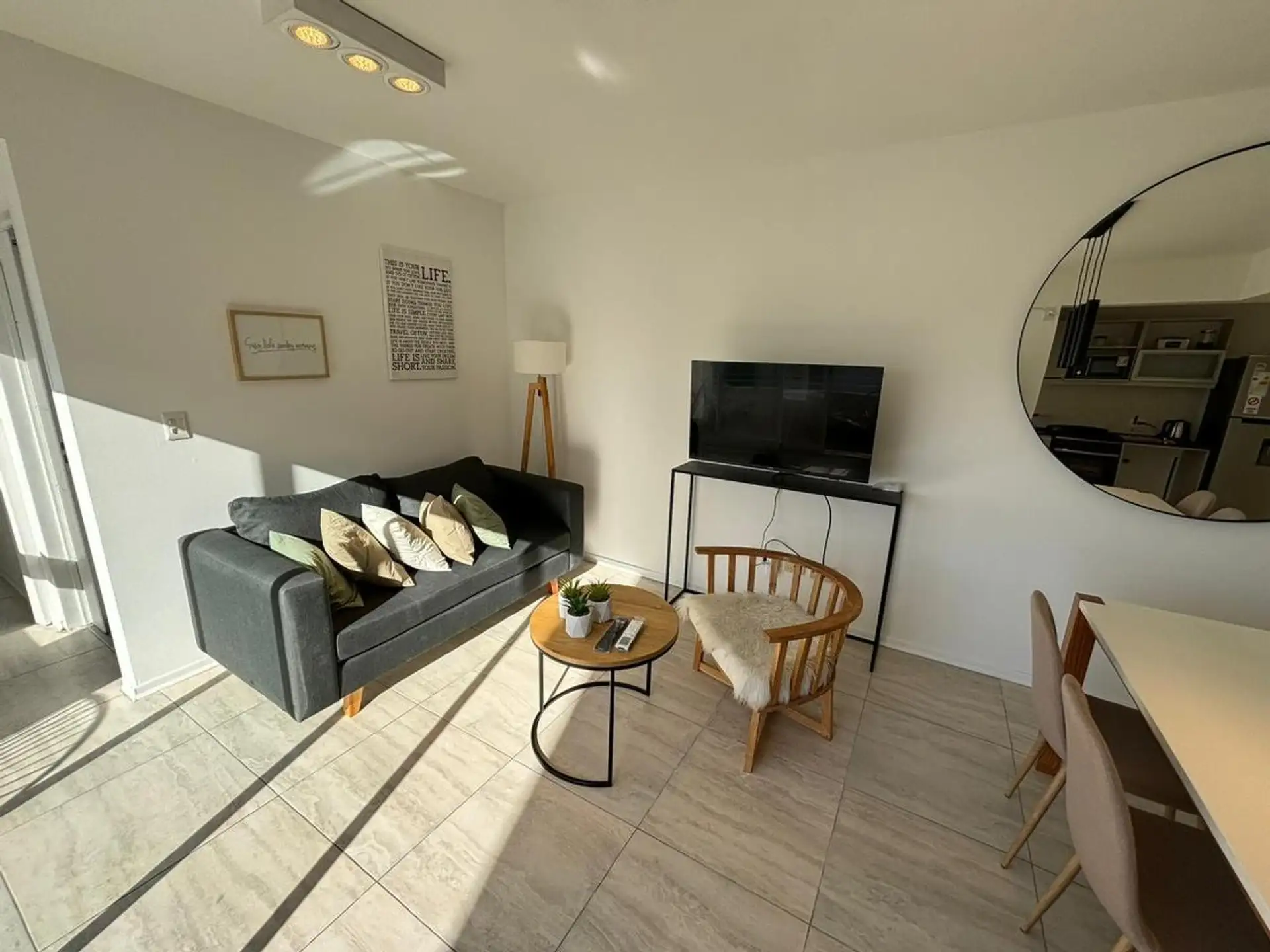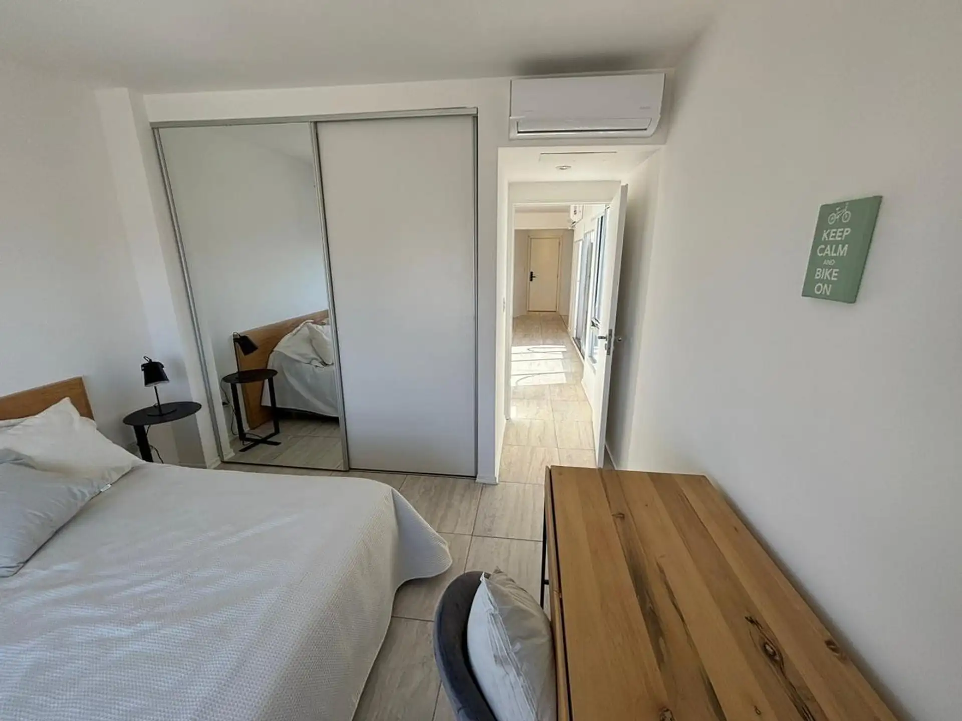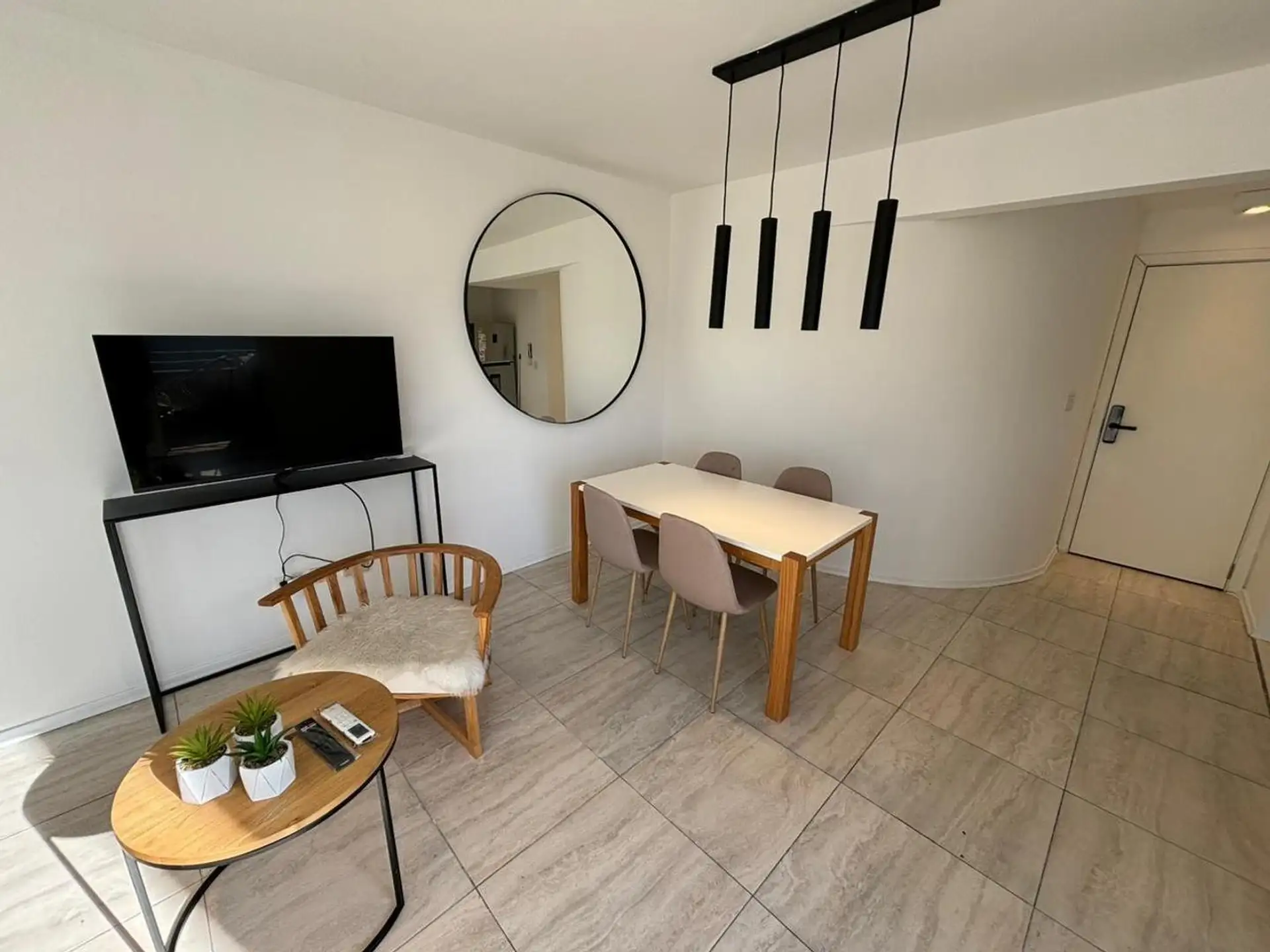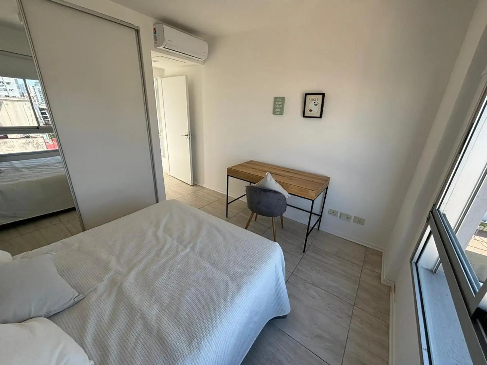 Departamento de 2 ambientes con 1 dormitorio, en Almagro, al lateral. Cuenta con baño completo y balcón. Piso alto, con split frío/calor, heladera y equipamiento para estadía: camas y otros electrodomésticos, además de servicio de wifi y cable. Se ubica en Avenida Corrientes y Gascon, a metros de Subte B. El alquiler temporario puede ser por 3 noches hasta 3 meses, con opción de renovación.