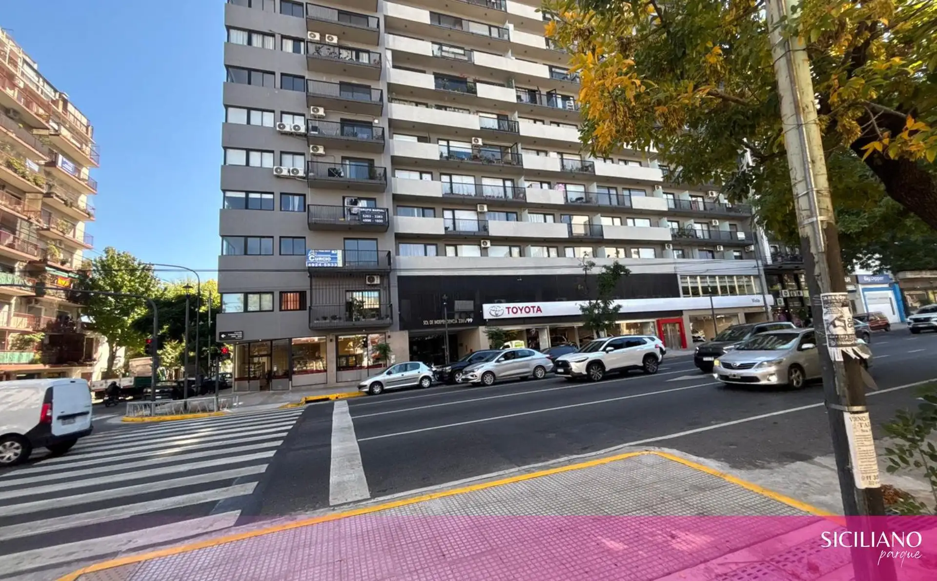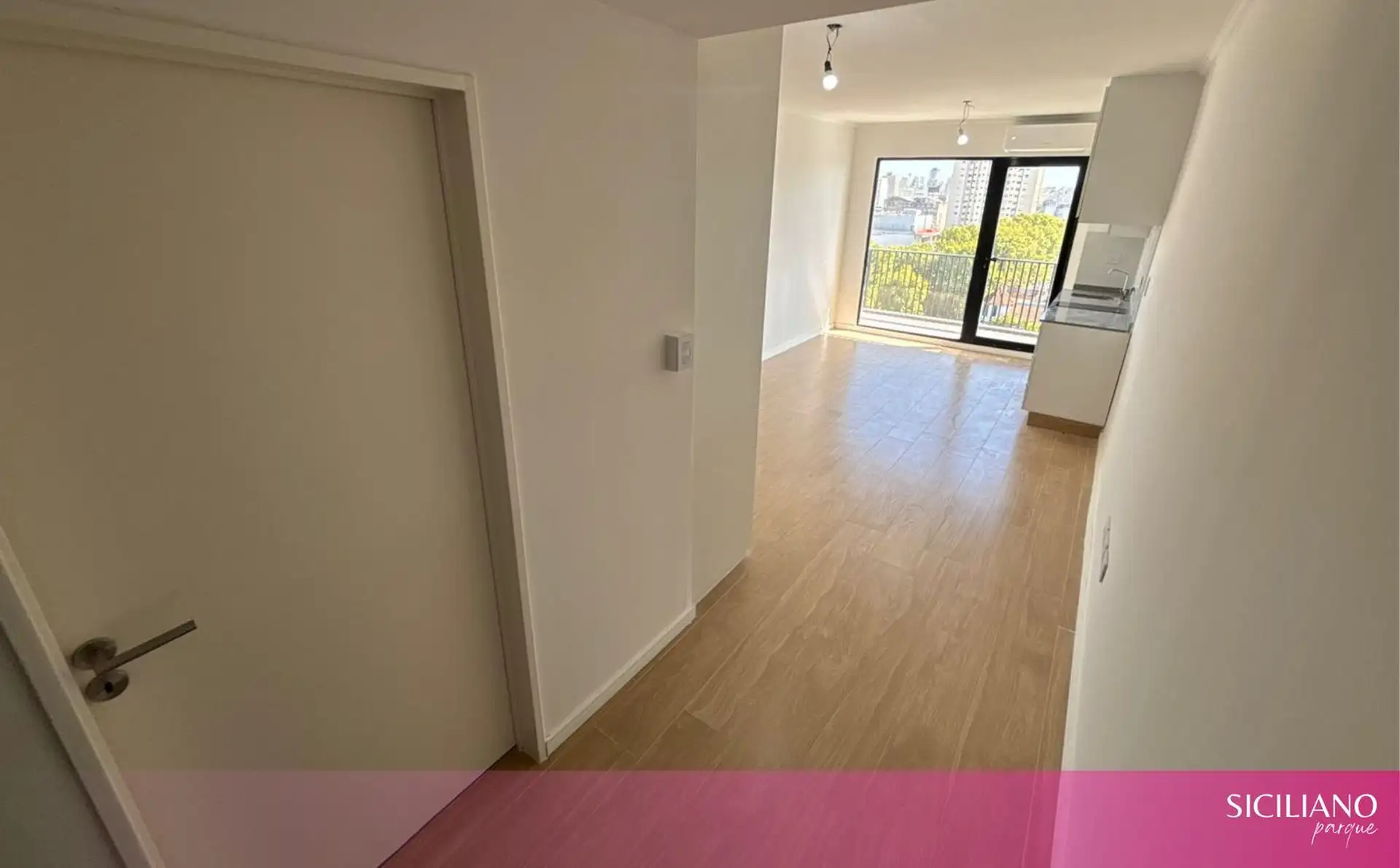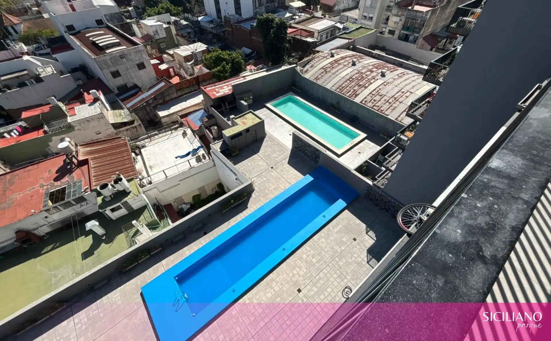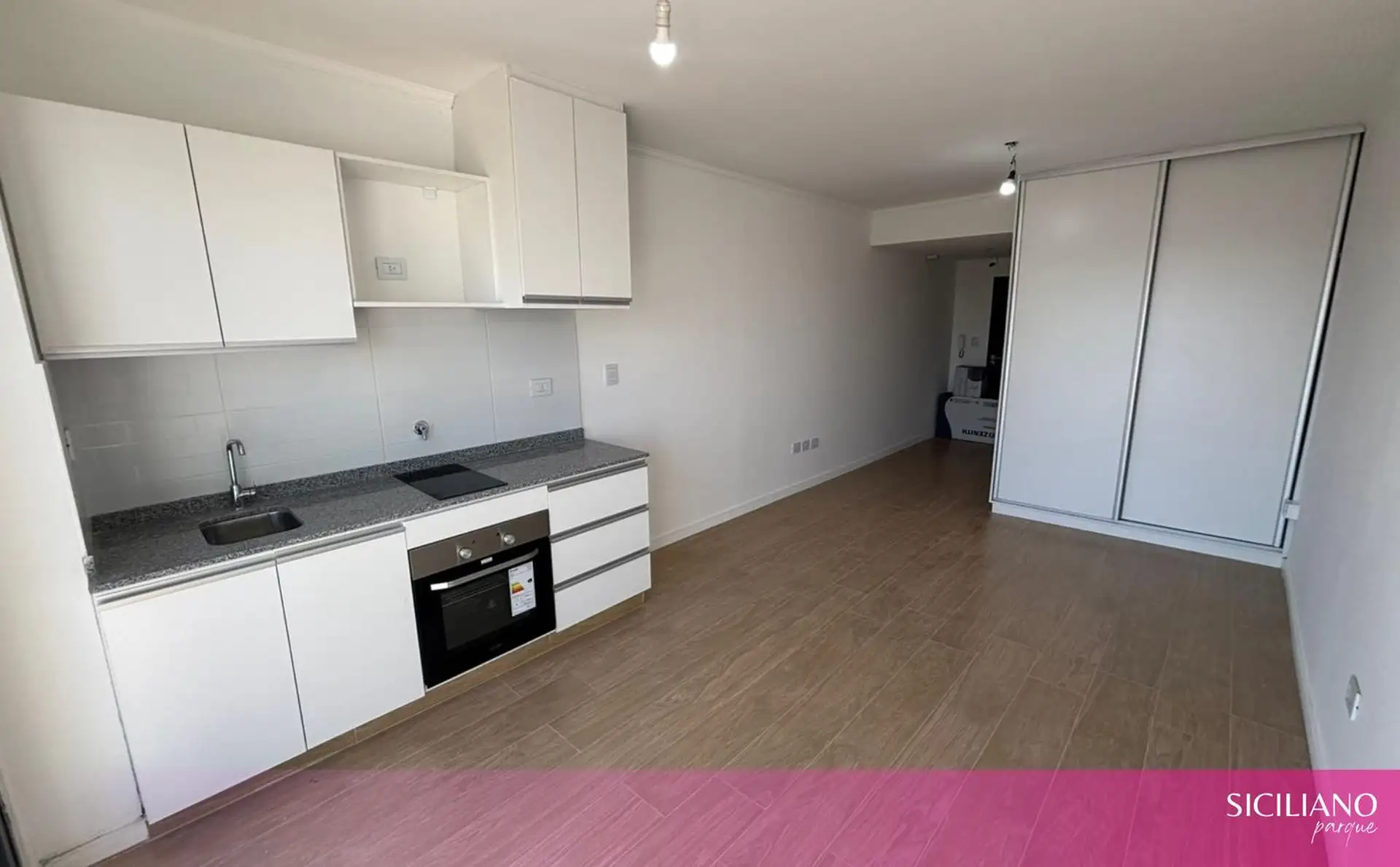 Departamento monoambiente de 30 m² totales, 26,5 m² cubiertos y 3,5 m² descubiertos, ubicado en el 10º piso. Orientación norte, balcón al contrafrente con vista abierta. Cocina integrada, ambiente principal con placard y baño completo con bañera. Incluye aire acondicionado frío/calor, cocina eléctrica y agua caliente individual por termotanque eléctrico; no tiene instalación de gas. Edificio PB + 15 pisos, entre medianeras, 9 departamentos por piso, 2 ascensores, servicio de limpieza, 2 piscinas