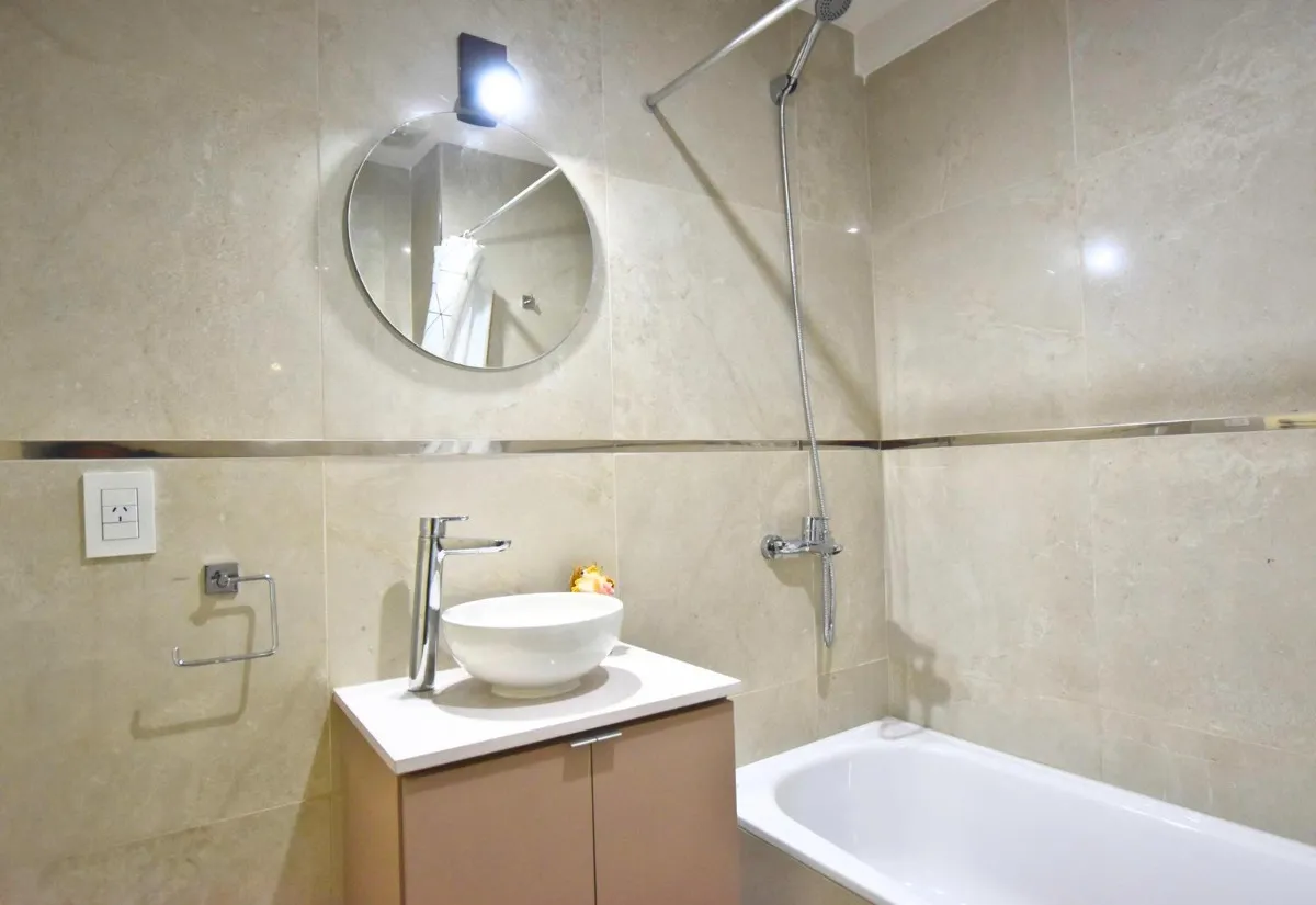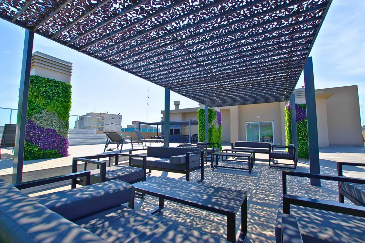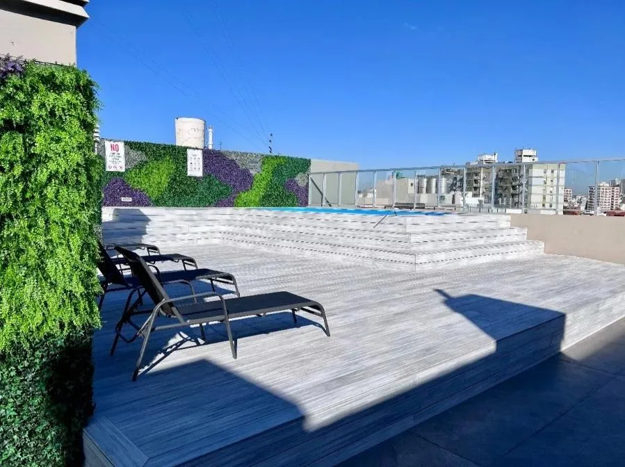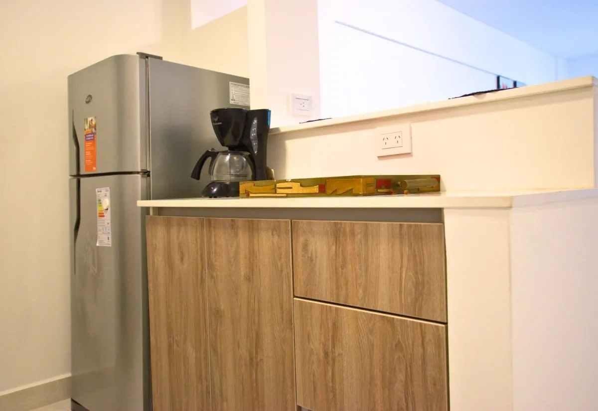 Monoambiente en alquiler totalmente amoblado y equipado, al frente con balcón, en Almagro. Cocina semi integrada con barra desayunadora y campana extractora en acero inoxidable, con cocina horno a gas; baño completo. Cuenta con calefacción y climatización por equipo split frío-calor, y el edificio dispone de accesibilidad para movilidad reducida, 2 ascensores, SUM, parrillas, terraza con solarium y pileta. El precio publicado incluye el mobiliario.
