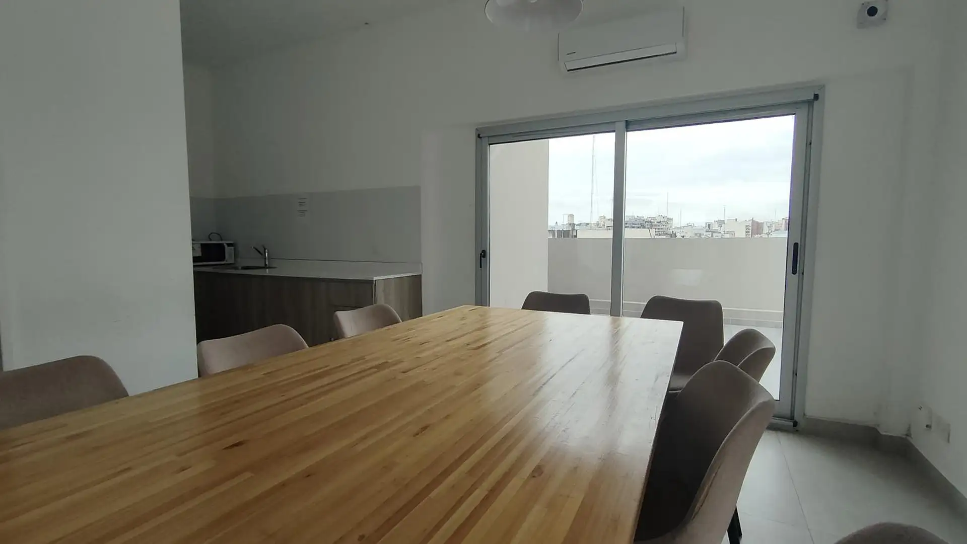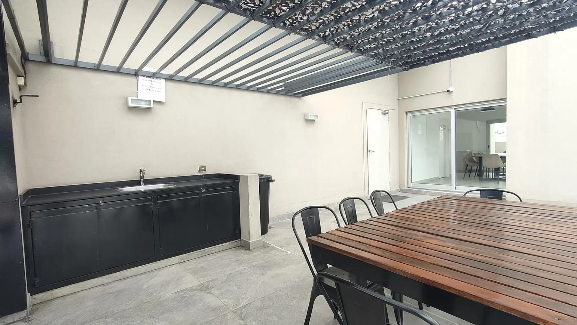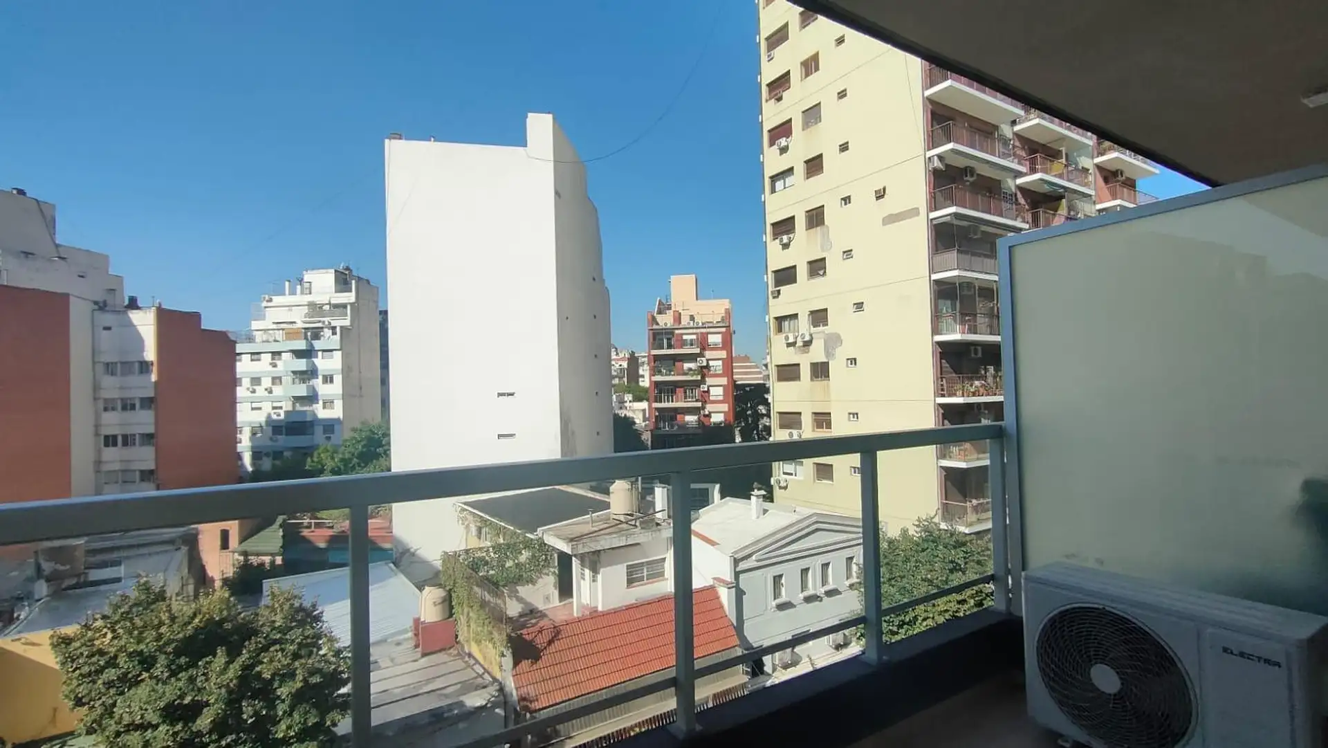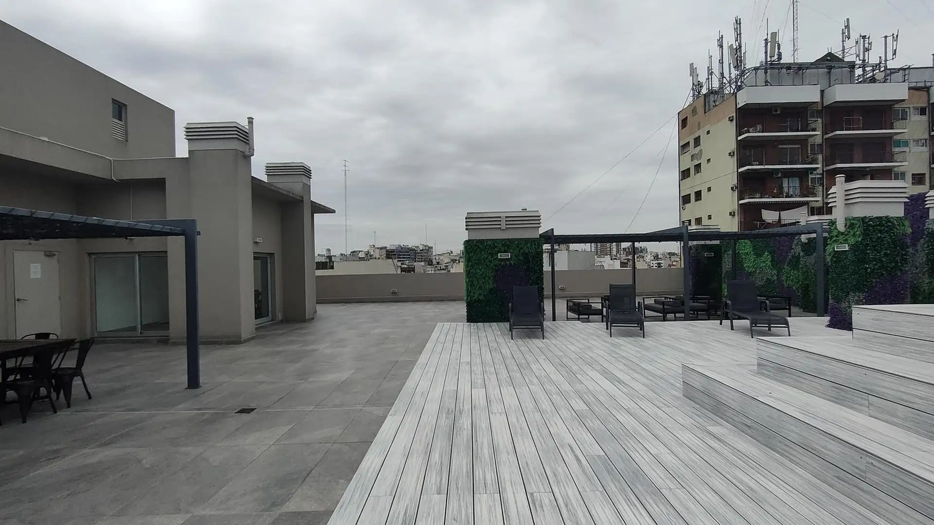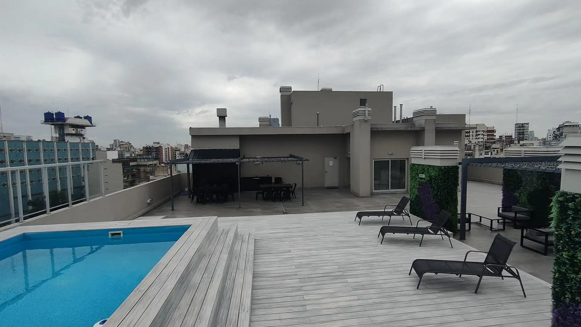 Departamento monoambiente de 11.20 x 3.25 m en Almagro, con balcón al contrafrente y orientación suroeste. Cocina integrada y baño completo de 2.20 x 2.10 m. Cuenta con aire acondicionado f/c, SUM, pileta, terraza y parrilla. Edificio con seguridad y prohibición de mascotas.