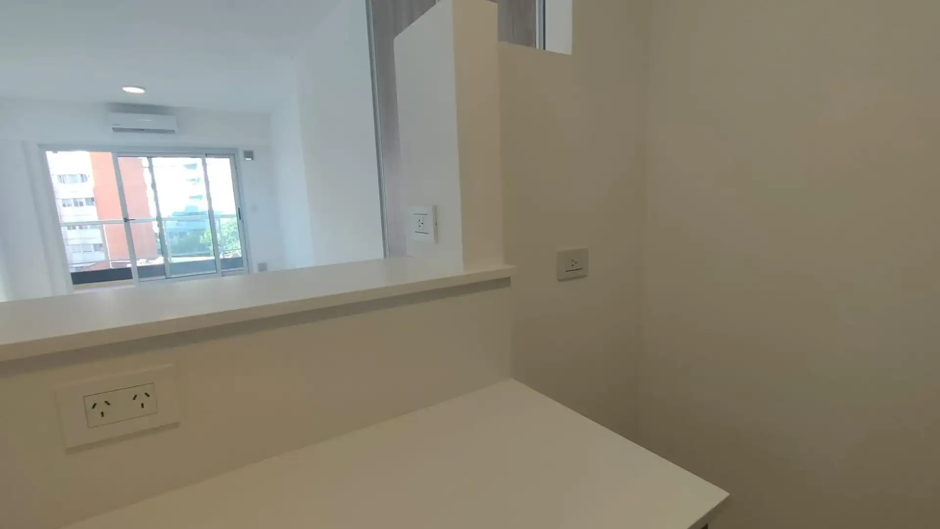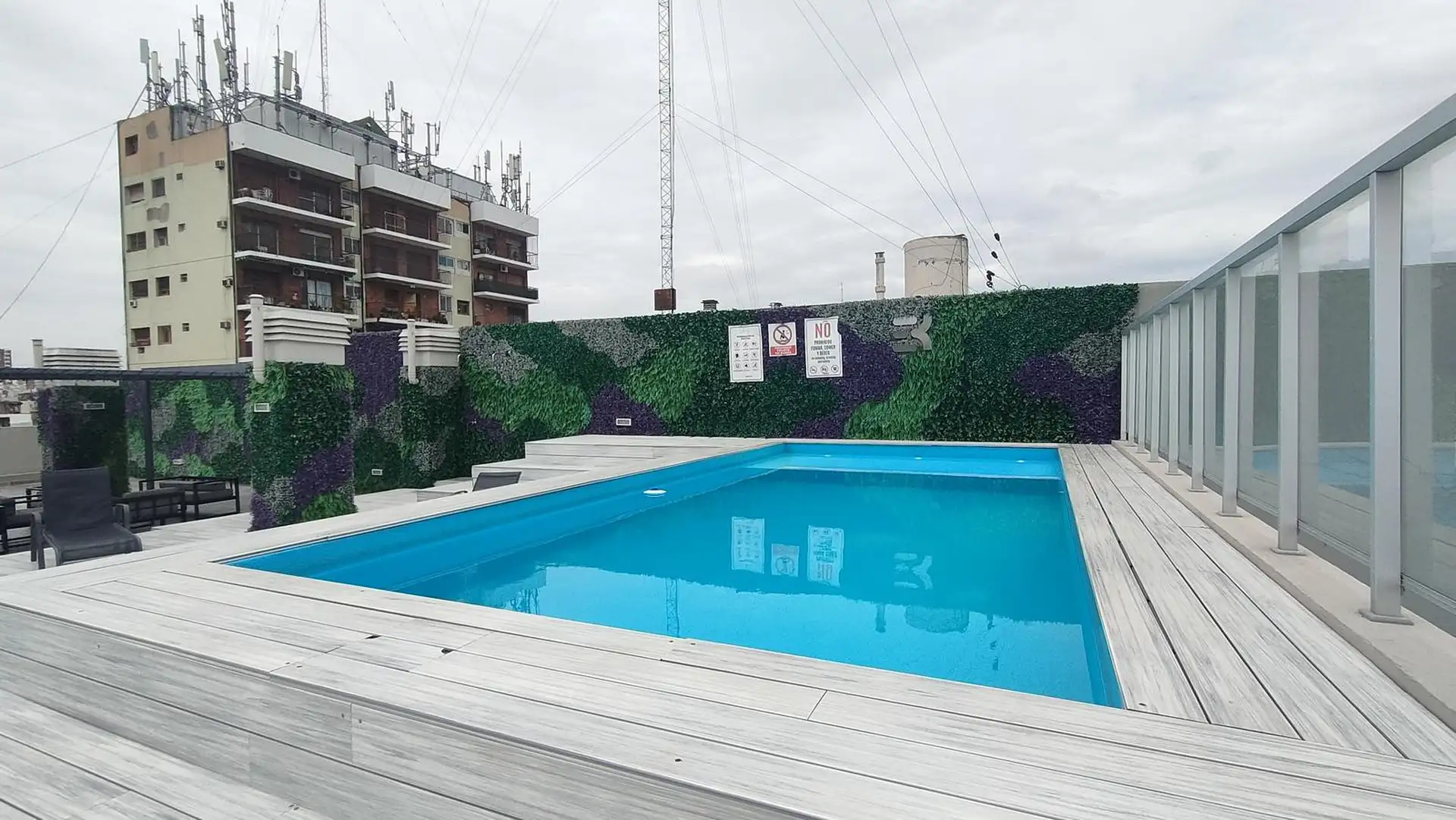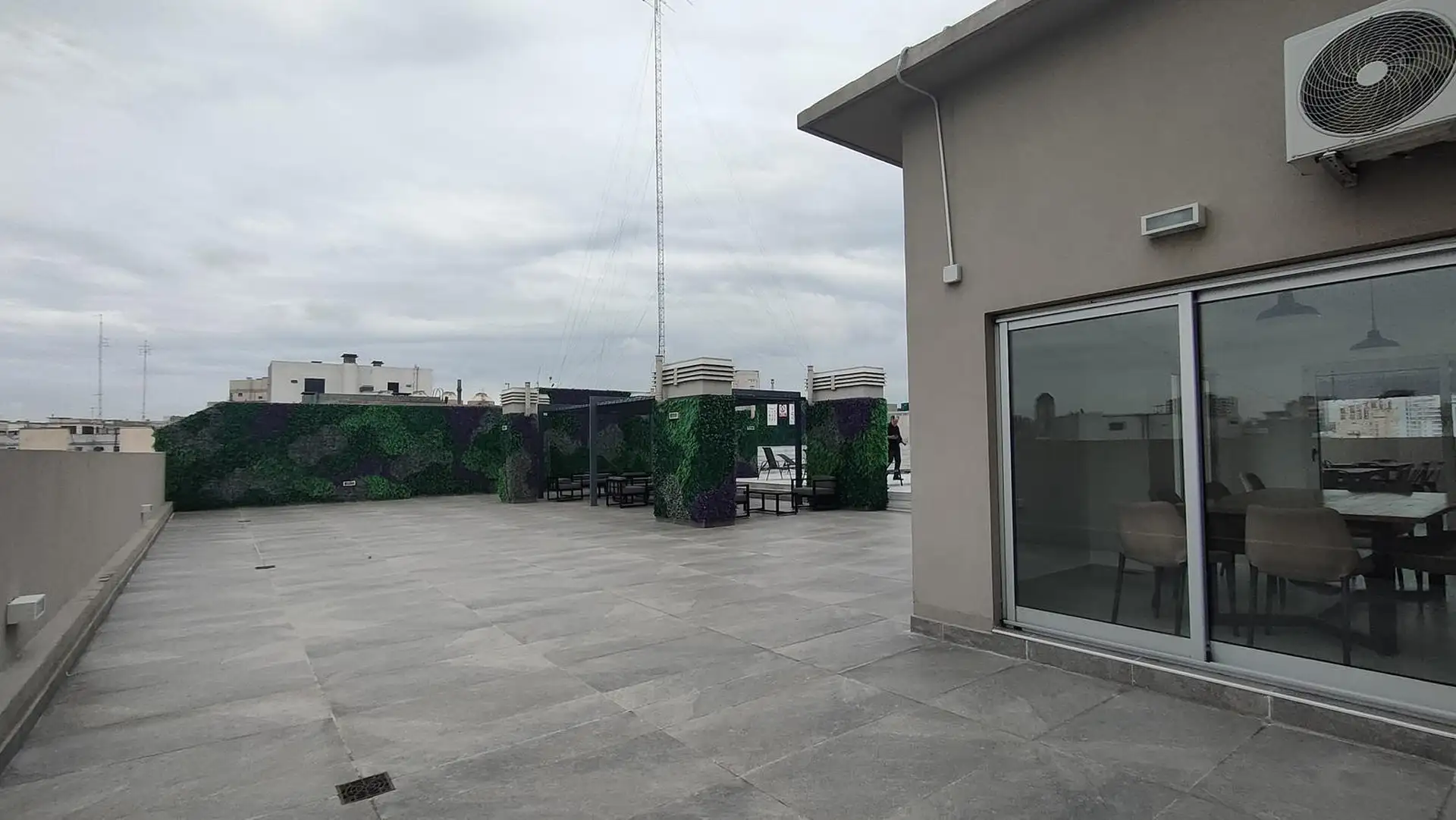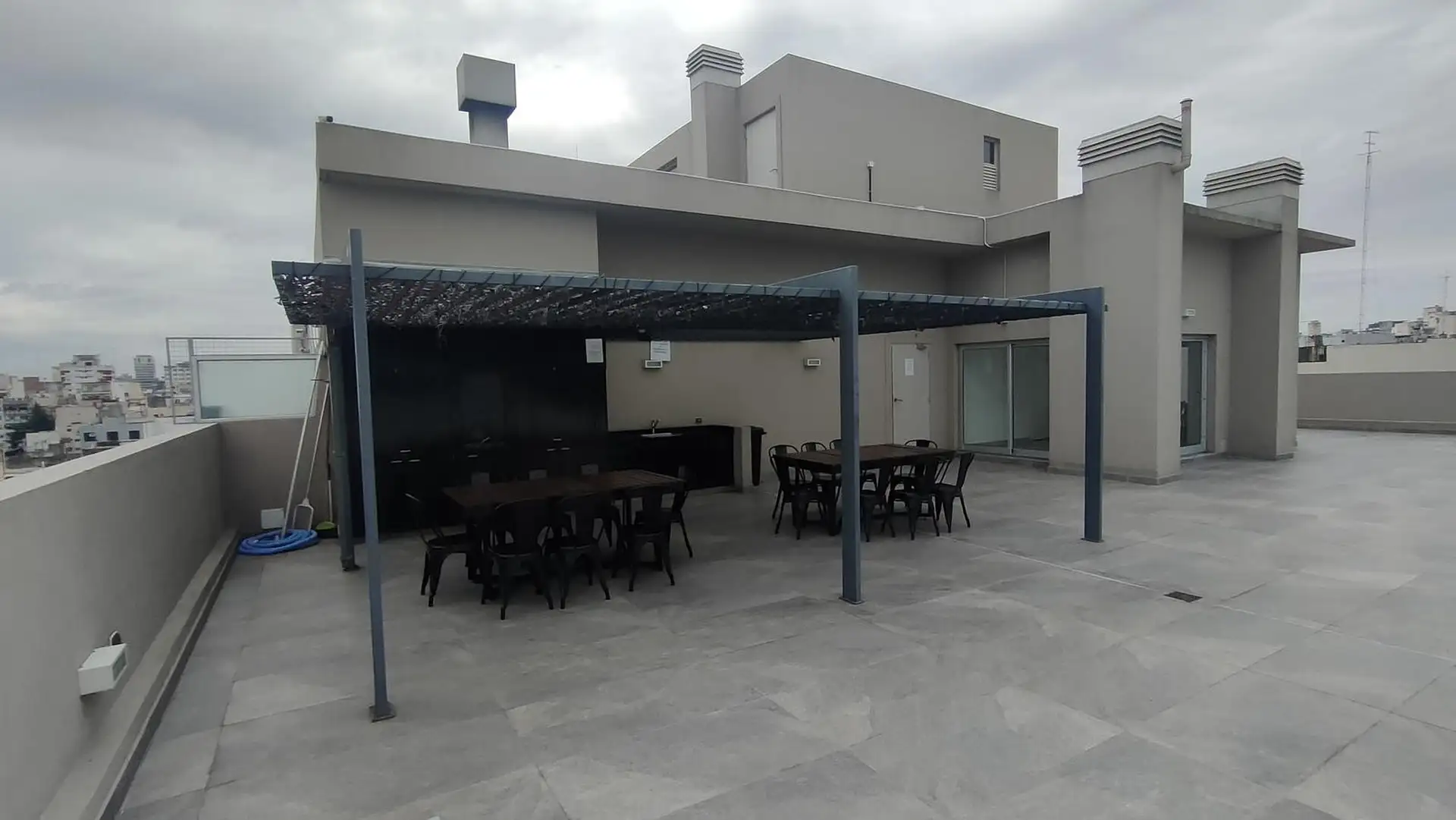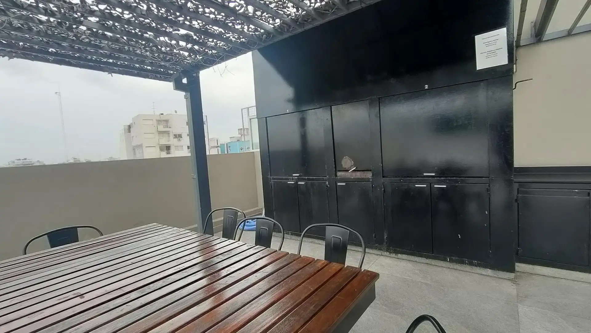 Departamento monoambiente de 11.20 x 3.25 m en Almagro, con balcón al contrafrente y orientación suroeste. Cocina integrada y baño completo de 2.20 x 2.10 m. Cuenta con aire acondicionado f/c, SUM, pileta, terraza y parrilla. Edificio con seguridad y prohibición de mascotas.