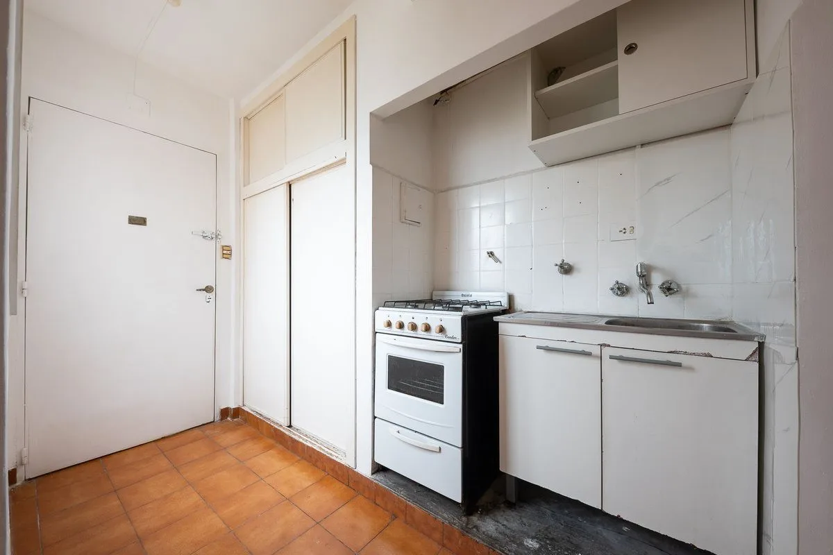 Departamento de 1 dormitorio en Almagro con cocina integrada y baño completo con ventilación natural. Cuenta con ambiente amplio y luminoso. Tiene conexión de lavarropas y el edificio dispone de terraza. El acceso es por ascensor hasta el piso 8 y por escalera un piso; la unidad es la única en el piso. Las expensas son bajas y el cambio de cañerías se realizó recientemente. Requiere 1 mes de adelanto, U$S 700 de depósito, ingresos demostrables, seguro de caución y 1 garante persona física.