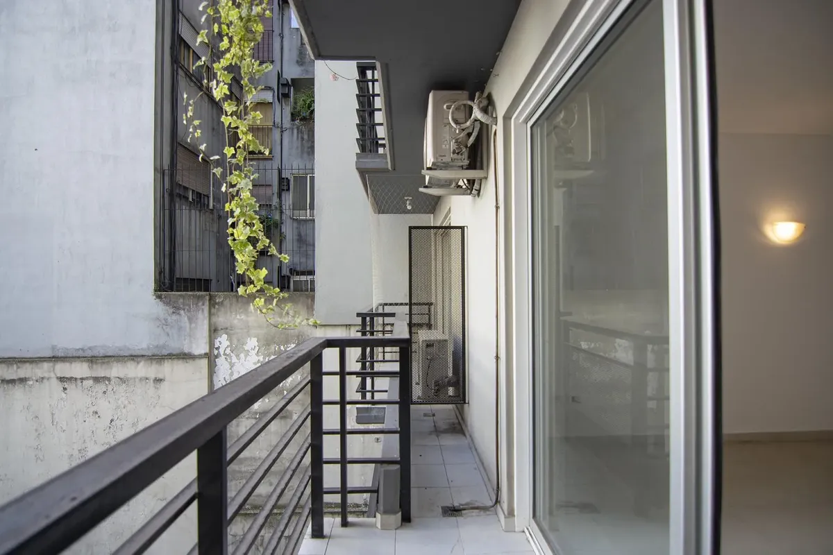 Monoambiente en Río de Janeiro 830, piso 2, en Almagro. Cuenta con aire acondicionado frío-calor y es todo eléctrico. El edificio dispone de pileta al aire libre, SUM, parrilla en la terraza y laundry. Está a pocas cuadras de Parque Centenario.