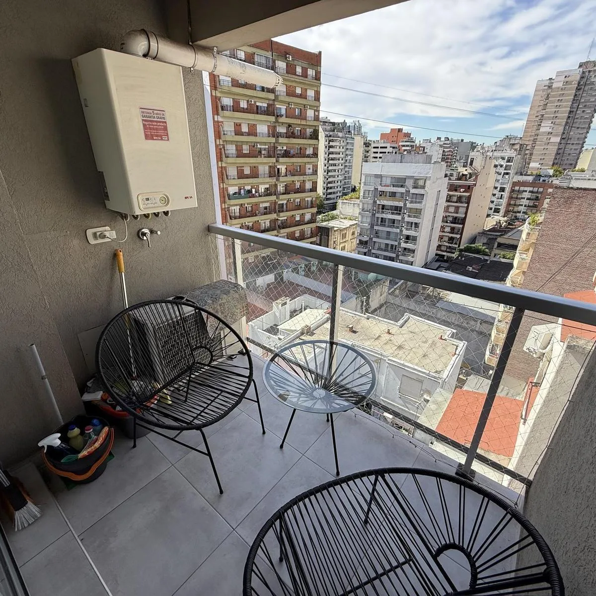 Departamento de 2 ambientes amoblado de 44,4 m² totales, con 41 m² cubiertos, ubicado en el piso 10 y con disposición contrafrente. Cuenta con 1 dormitorio y 1 baño. Cocina equipada, aire acondicionado individual y calefacción central por losa radiante. El edificio dispone de 2 ascensores y ofrece solárium, SUM y pileta. Expensas: 145.000 por mes. Dirección: Bulnes 617, Departamento D.