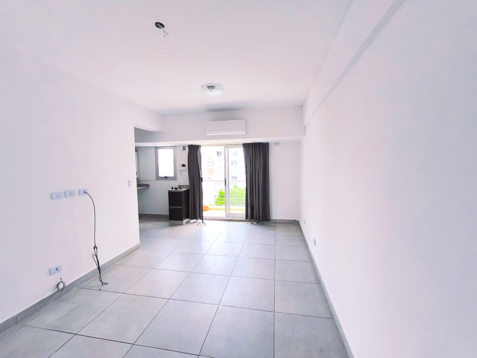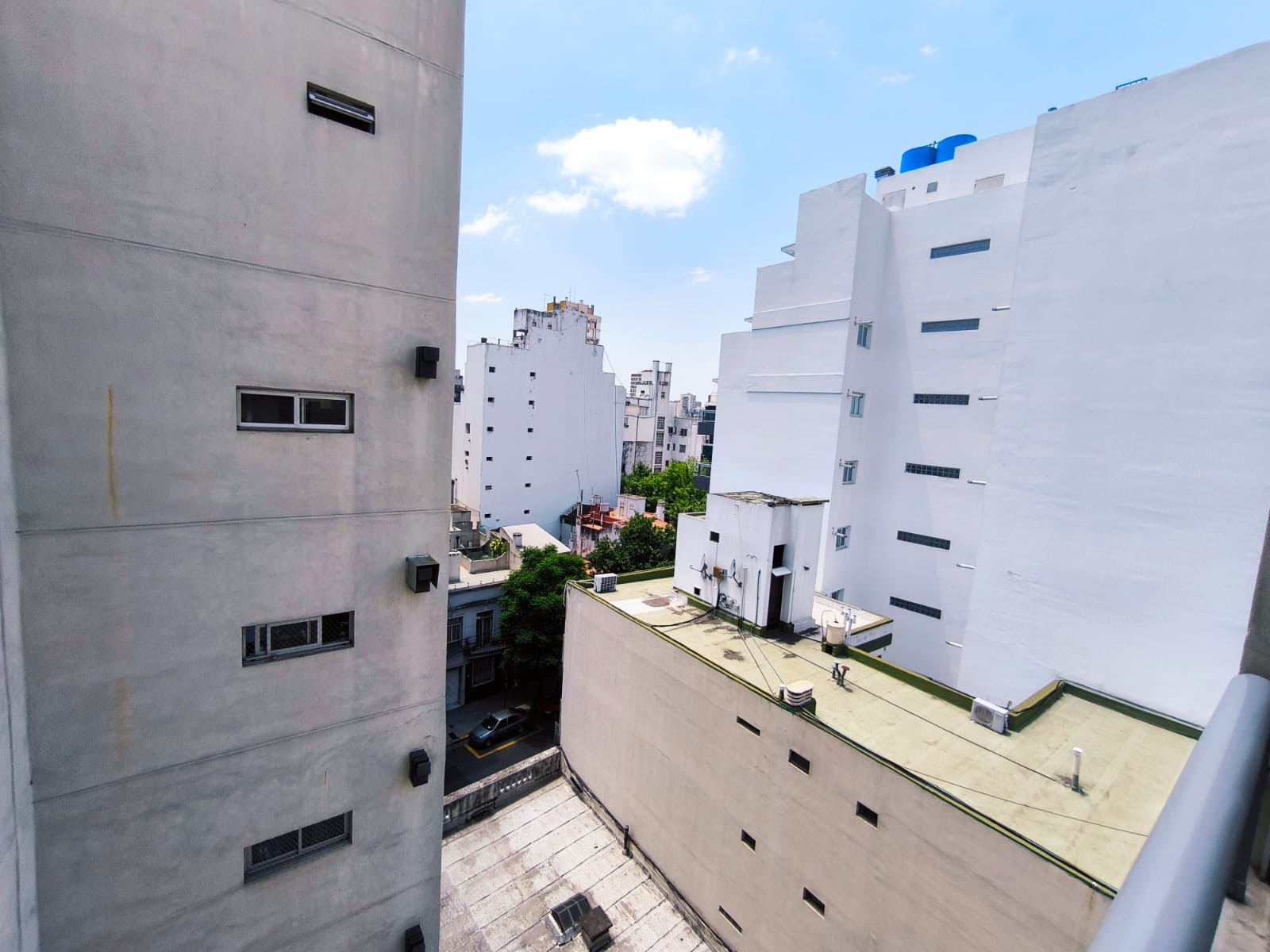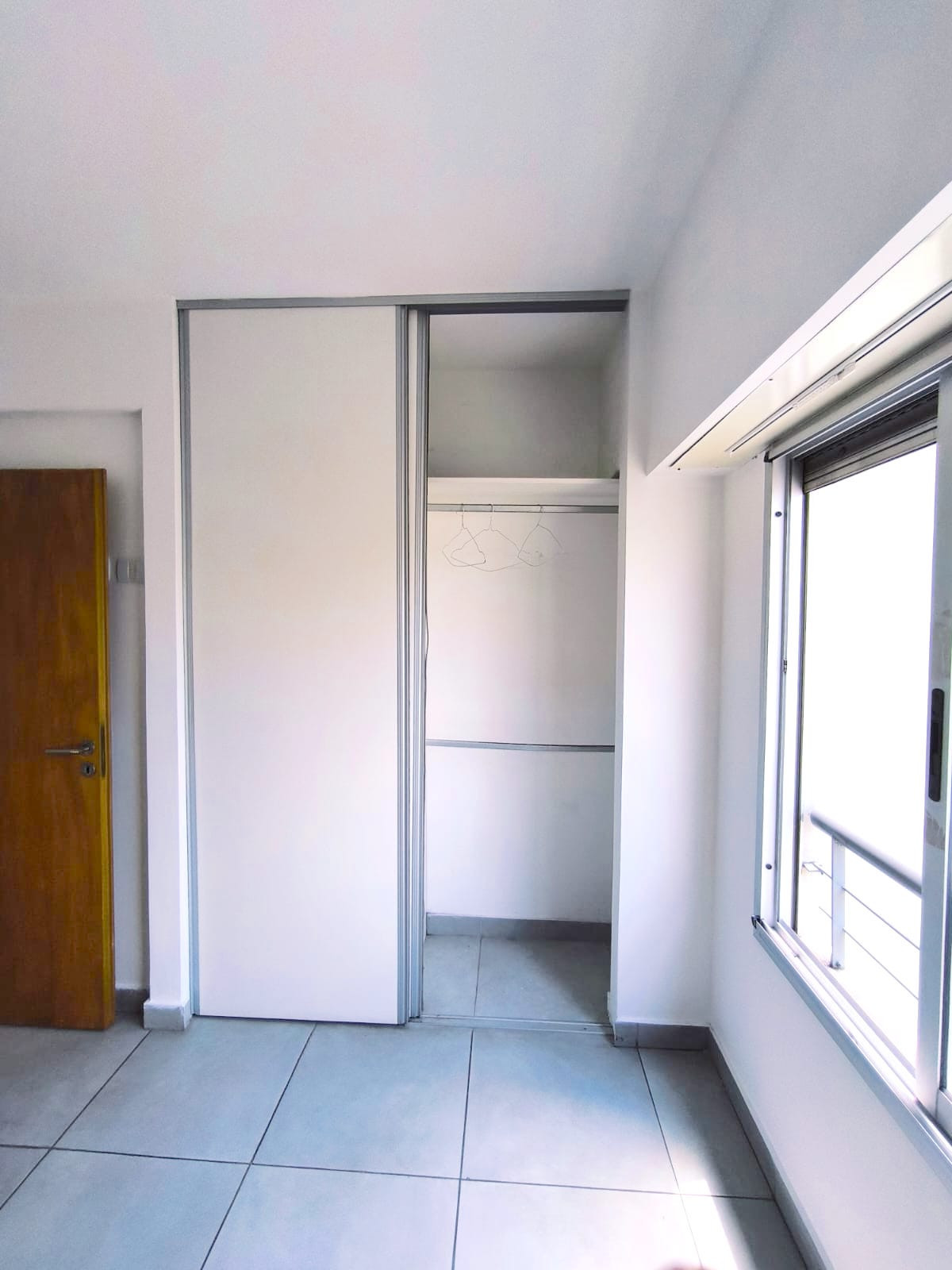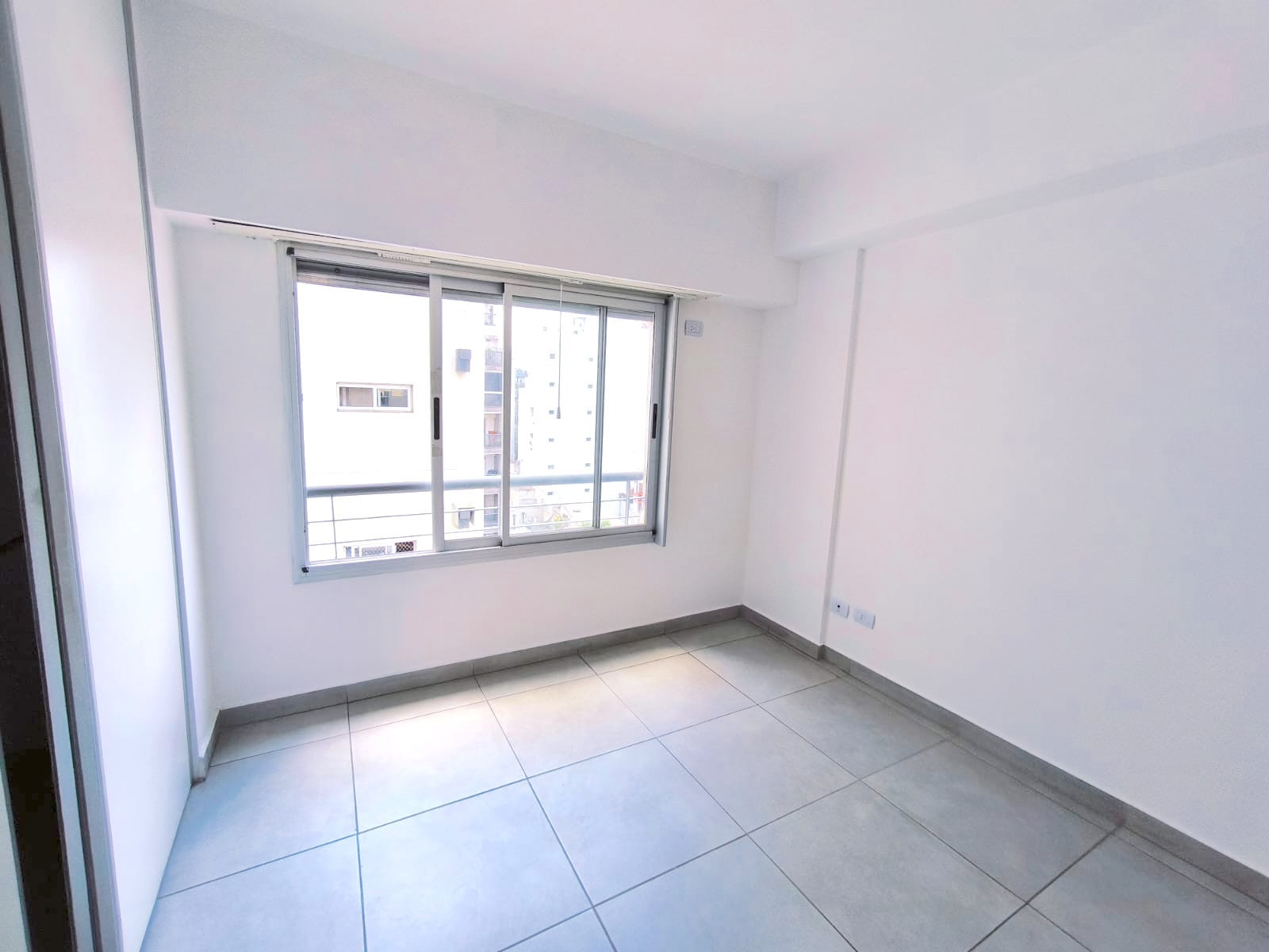 Departamento de 2 ambientes al contrafrente, en el 7° piso, con balcón, no es el último, y en muy buen estado. Cuenta con living comedor, cocina integrada con espacios para lavarropas y heladera, dormitorio con placard, baño completo y placard de recepción. Tiene piso radiante y aire acondicionado frío/calor, además de terraza habilitada. El contrato es por 2 años con actualización trimestral por IPC.