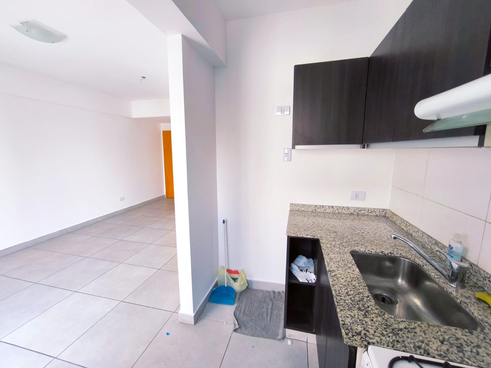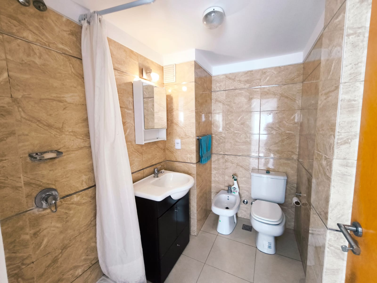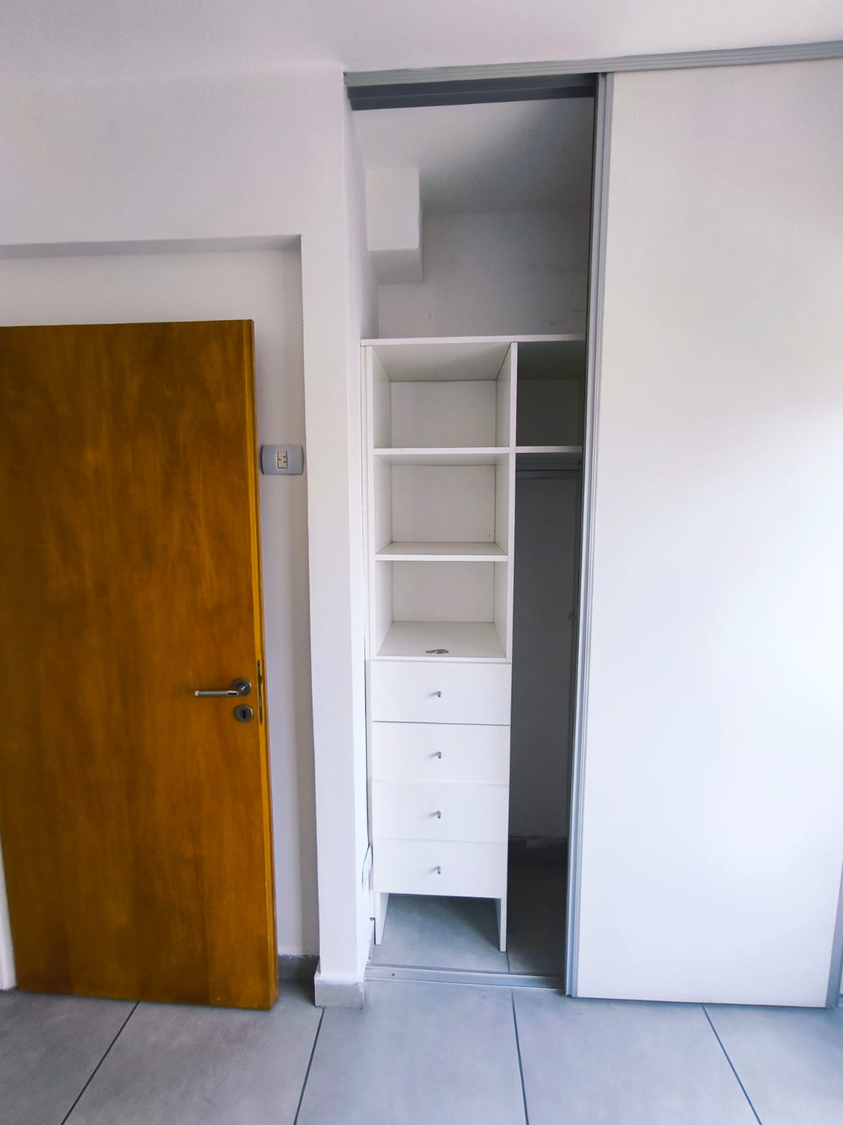 Departamento de 2 ambientes al contrafrente, en el 7° piso, con balcón, no es el último, y en muy buen estado. Cuenta con living comedor, cocina integrada con espacios para lavarropas y heladera, dormitorio con placard, baño completo y placard de recepción. Tiene piso radiante y aire acondicionado frío/calor, además de terraza habilitada. El contrato es por 2 años con actualización trimestral por IPC.