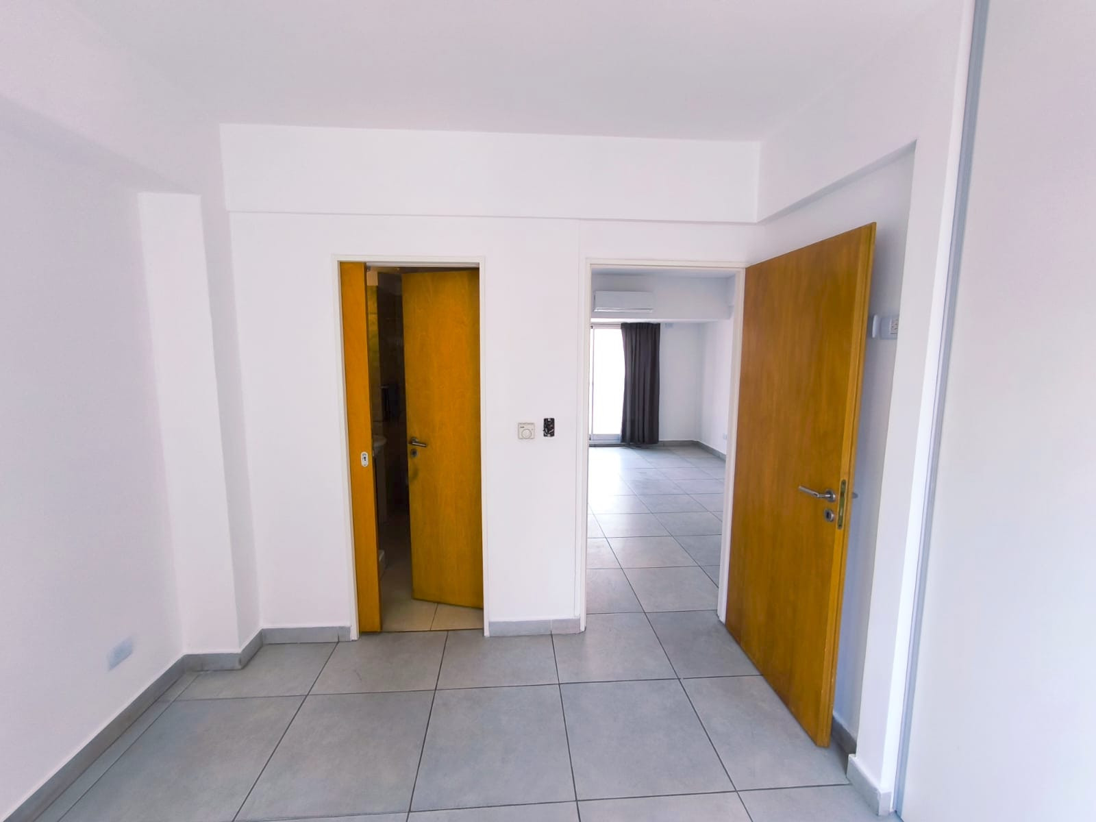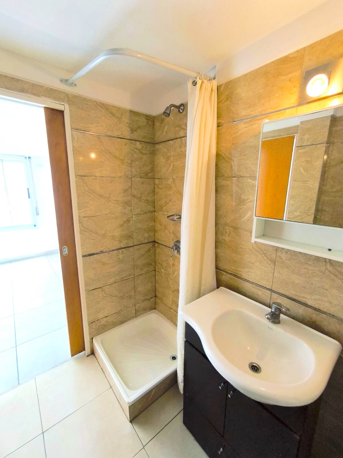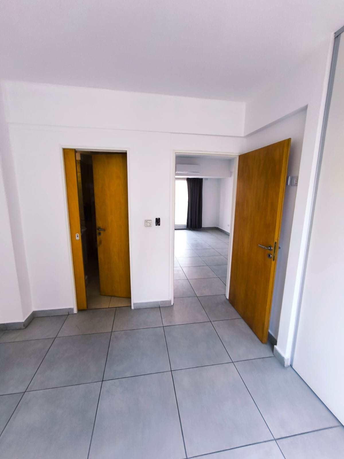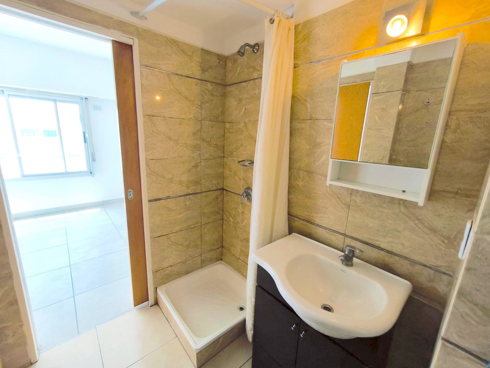 Departamento de 2 ambientes al contrafrente, en el 7° piso, con balcón, no es el último, y en muy buen estado. Cuenta con living comedor, cocina integrada con espacios para lavarropas y heladera, dormitorio con placard, baño completo y placard de recepción. Tiene piso radiante y aire acondicionado frío/calor, además de terraza habilitada. El contrato es por 2 años con actualización trimestral por IPC.