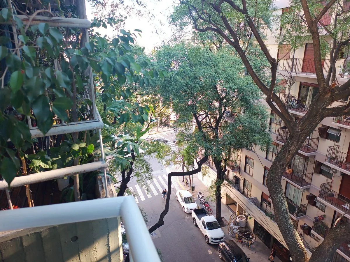 Departamento de 2 ambientes de 60 m² al frente con balcón terraza. Living de 5 x 3,50, dormitorio de 3,50 x 3,20 con placares, cocina de 3 x 2,50 y baño completo. Recién pintado, pisos tarugados y frente a la Universidad de Palermo.