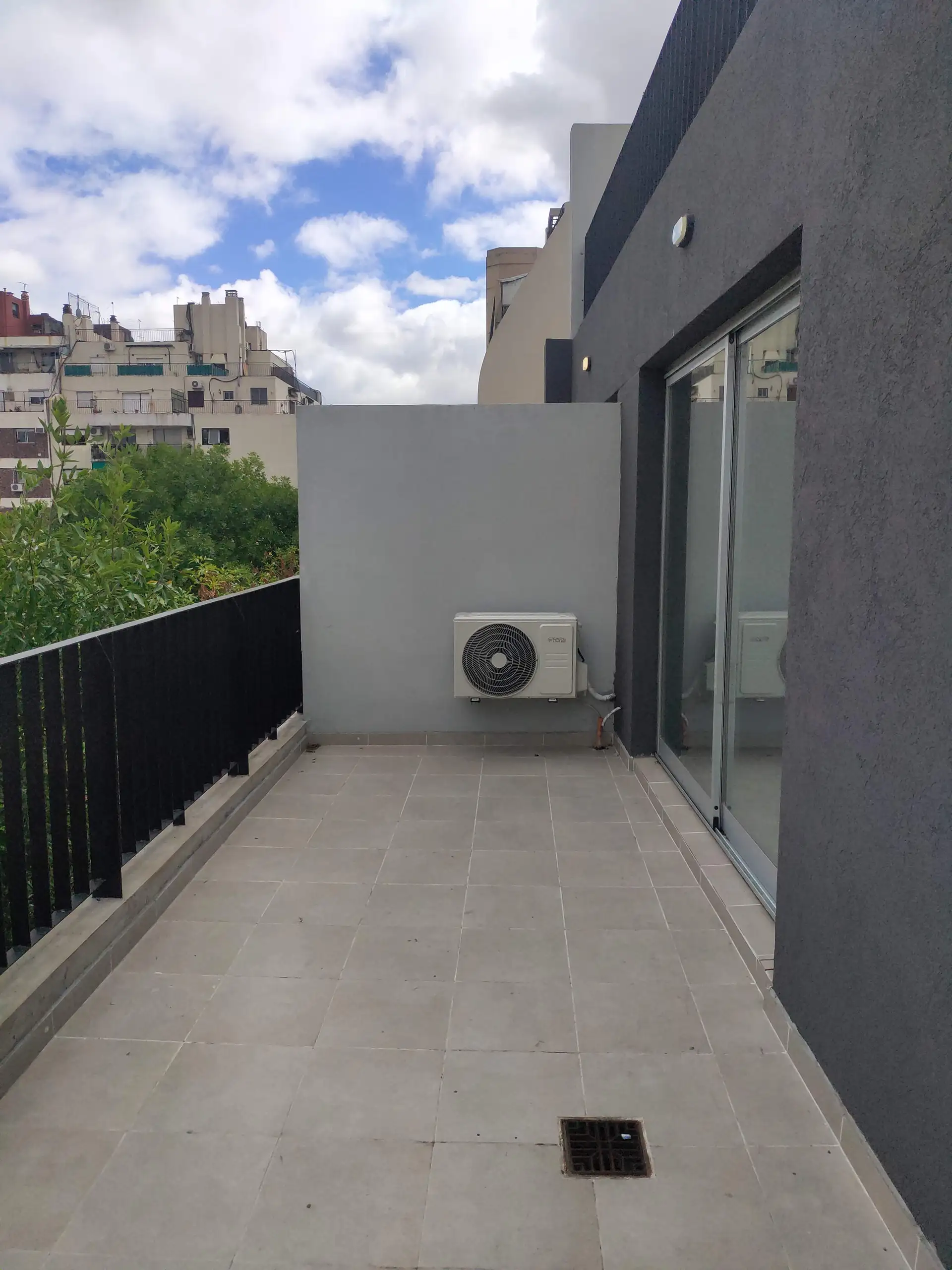 Departamento de 2 ambientes de 55 m² totales y 40 m² cubiertos, al frente, en Almagro Norte. Tiene balcón terraza con vista abierta y salida desde el living y el dormitorio. Cuenta con living comedor con aire acondicionado, baño completo con bañera, cocina eléctrica y agua caliente por caldera; conexión para lavarropas en el balcón. El edificio dispone de terraza común con parrilla y laundry. Alquiler 800.000, contrato a 12 o 24 meses, actualización semestral por IPC. Expensas aprox. $240.000, a