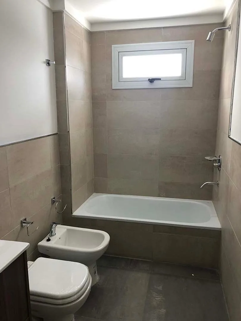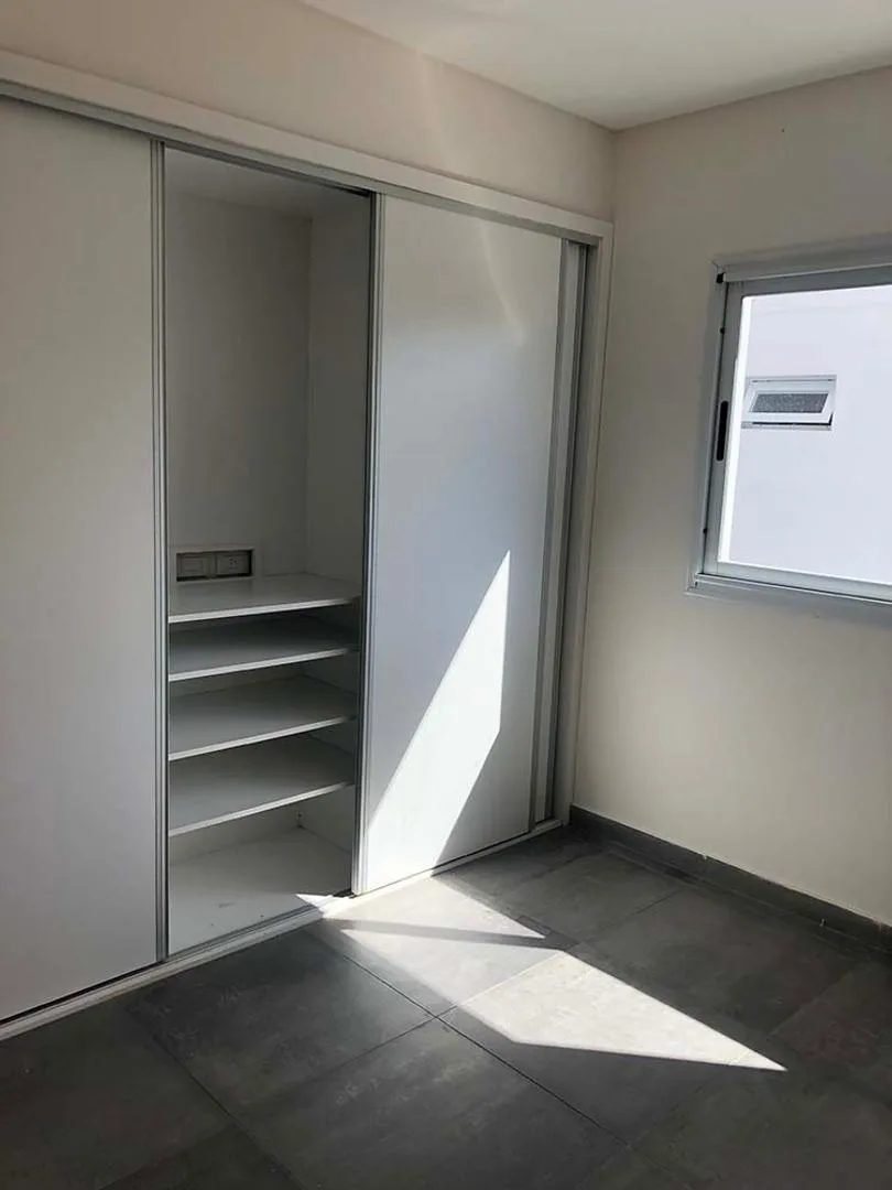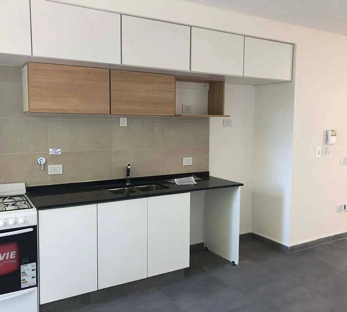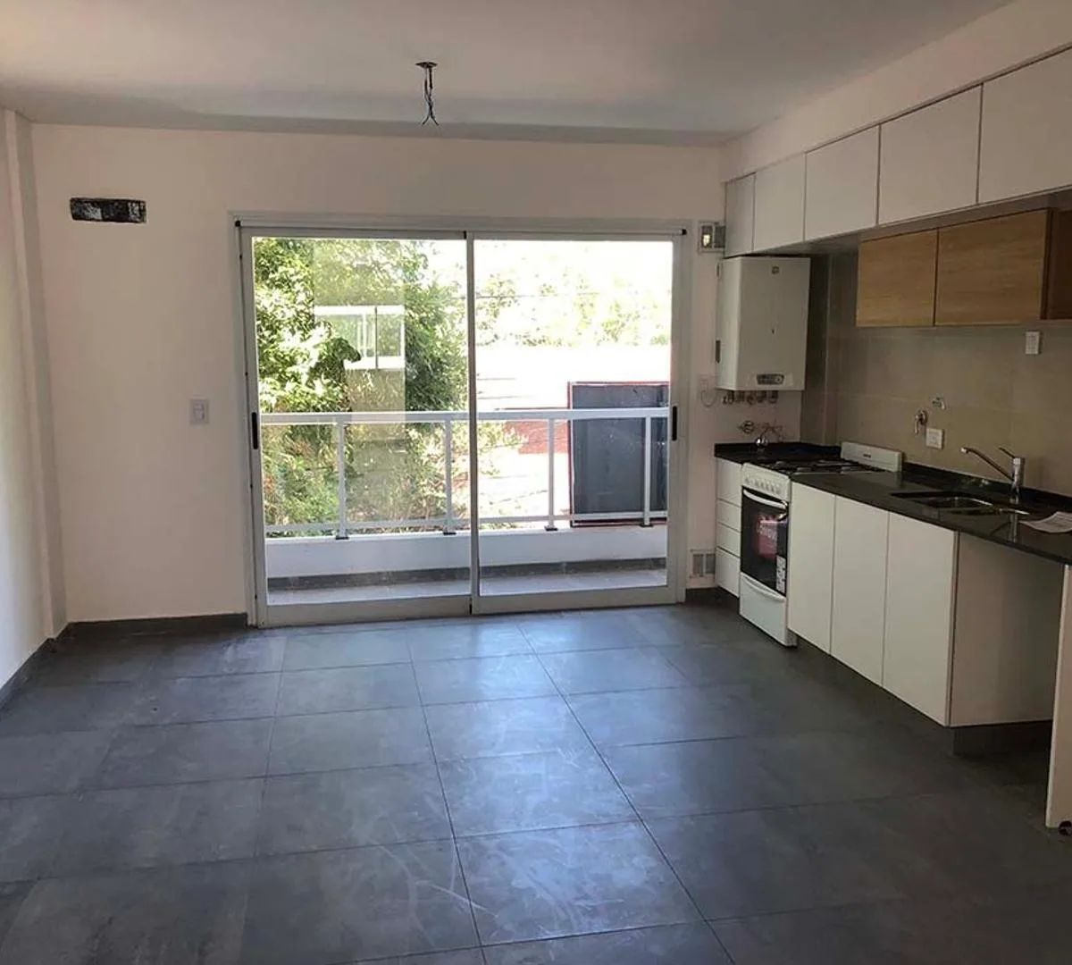 Departamento en 2° piso. Cuenta con ambiente dividido con mamparas, conformando 1 dormitorio con placard, living comedor y cocina con mesada y alacenas. Incluye cocina de 4 hornallas con horno y extractor, baño completo con bañera y vanitory, calefacción por losa radiante con caldera dual y ventanas con doble vidriado DVH. Dispone de balcón y cochera; el aviso menciona que está a 2 cuadras de Av. Espora y tiene terraza. No se aceptan mascotas; se solicita garantía propietaria y justificación de