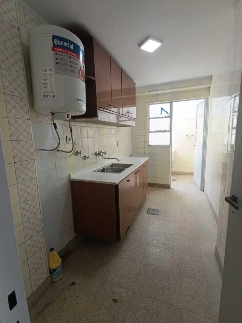Departamento de 3 ambientes de 77 m² más balcón, en el 5°D, con orientación sin especificar. Cuenta con living-comedor con balcón y preparada la instalación para aire acondicionado; pisos vinílicos y luminarias en todos los ambientes. Tiene cocina separada con termotanque eléctrico y lavadero semicubierto con pileta, sin gas natural (todo eléctrico). Dispone de dormitorio con placard y piso cerámico, segunda habitación con escritorio con muebles empotrados (no admite cama) y baño completo con ba