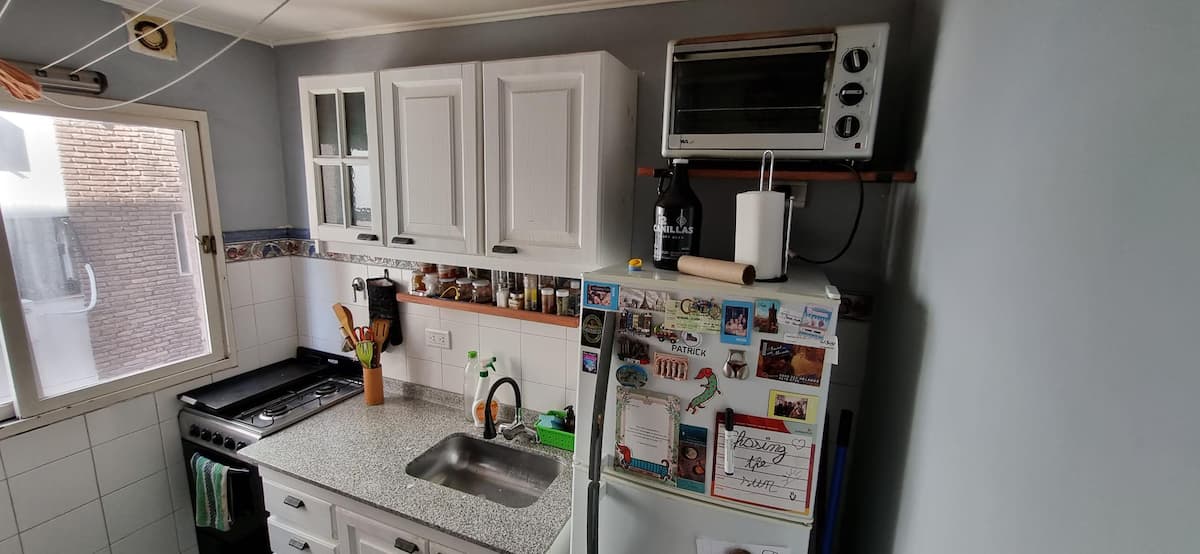 Departamento en Avellaneda a metros de la Av. Hipólito Yrigoyen. A 5 minutos de Capital y a 3 cuadras de la estación de tren. Cocina completa con horno a gas y electrico; lavadero con espacio para lavarropas y lavavajillas. Living con escritorio en la ventana y 1 dormitorio con placard. Hay TV en ambos ambientes.