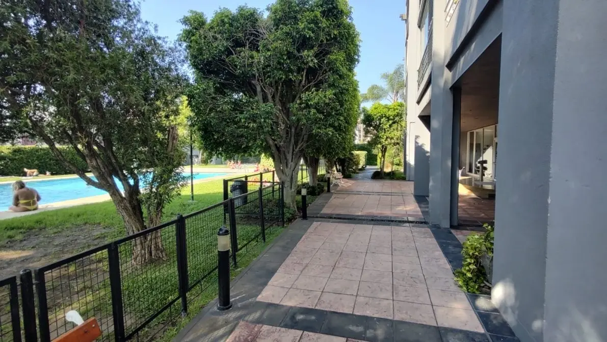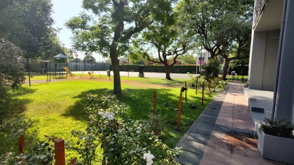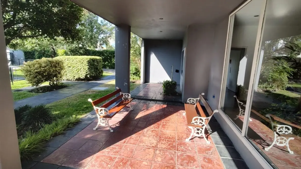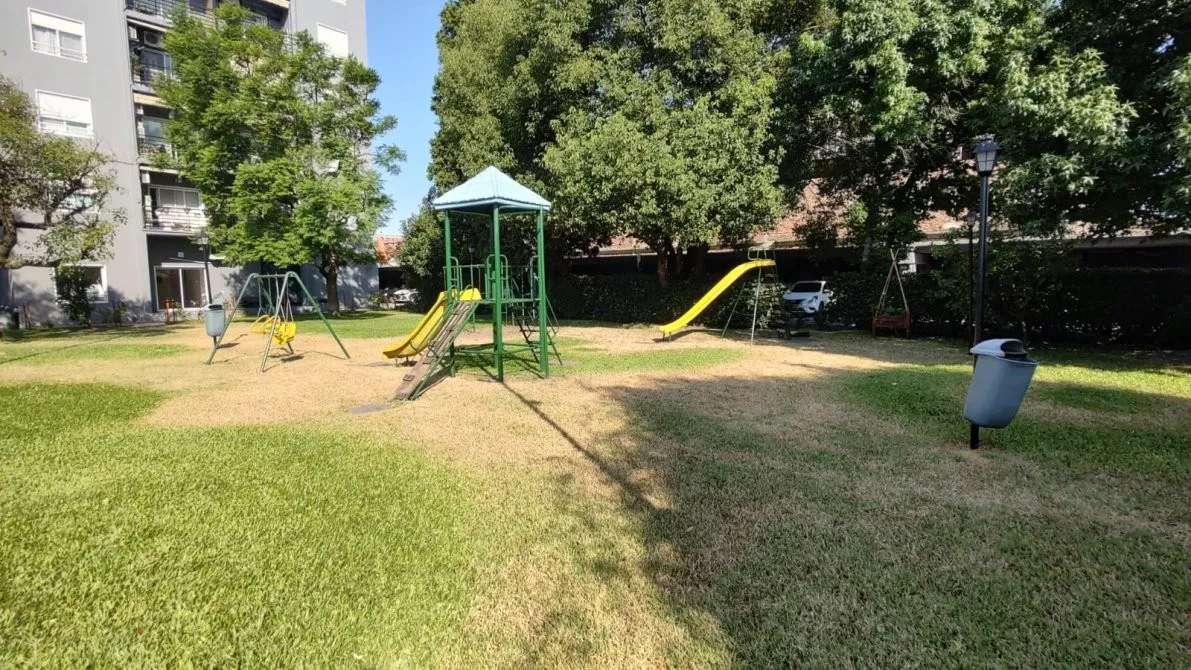 Departamento de 2 ambientes en el complejo Jardines de Avellaneda, con balcón–lavadero. El estar–comedor mide 3,00 x 5,50 m, con aire acondicionado frío/calor y estufa de tiro balanceado. Cuenta con cocina de 1,50 x 4,00 m, baño completo de 1,50 x 2,20 m, dormitorio de 3,00 x 3,70 m con placard y ventilador de techo con luminaria, y balcón–lavadero de 1,50 x 4,70 m con reja de seguridad. Las expensas incluyen agua, servicios cloacales y seguridad privada; el departamento se entrega recién pintad
