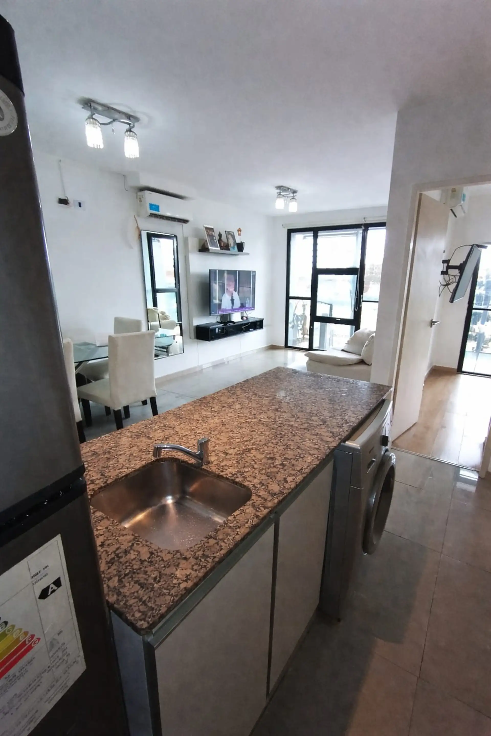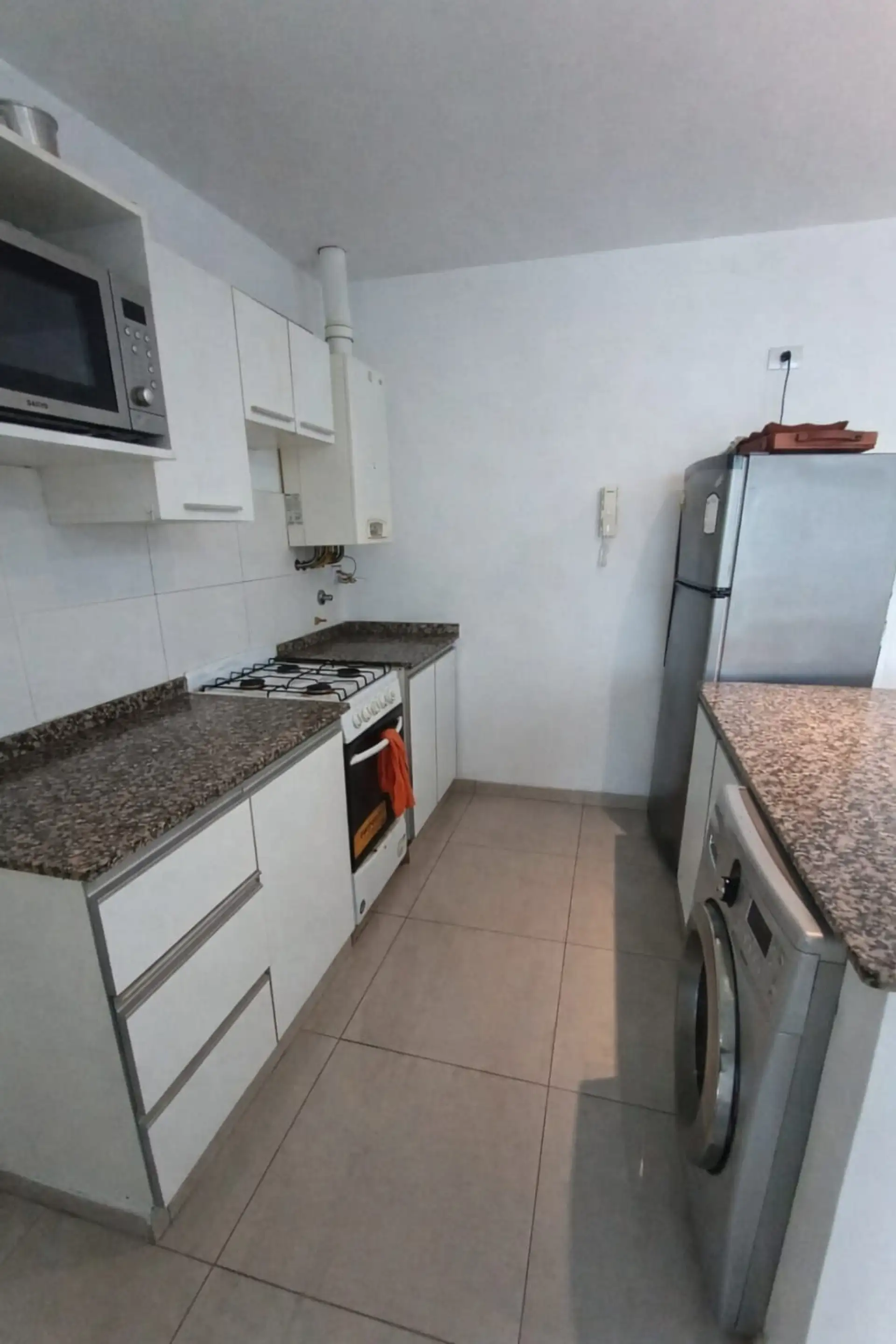 Departamento de 2 ambientes de 41 m² cubiertos, con 1 dormitorio y 1 baño, en disposición contrafrente. Cuenta con balcón y aire acondicionado individual. El edificio tiene 9 pisos, 5 departamentos por piso y ascensor, con caldera central; además, incluye salón de fiestas. Cochera optativa. Expensas no informadas; servicios con ABL, agua corriente, electricidad y gas natural.