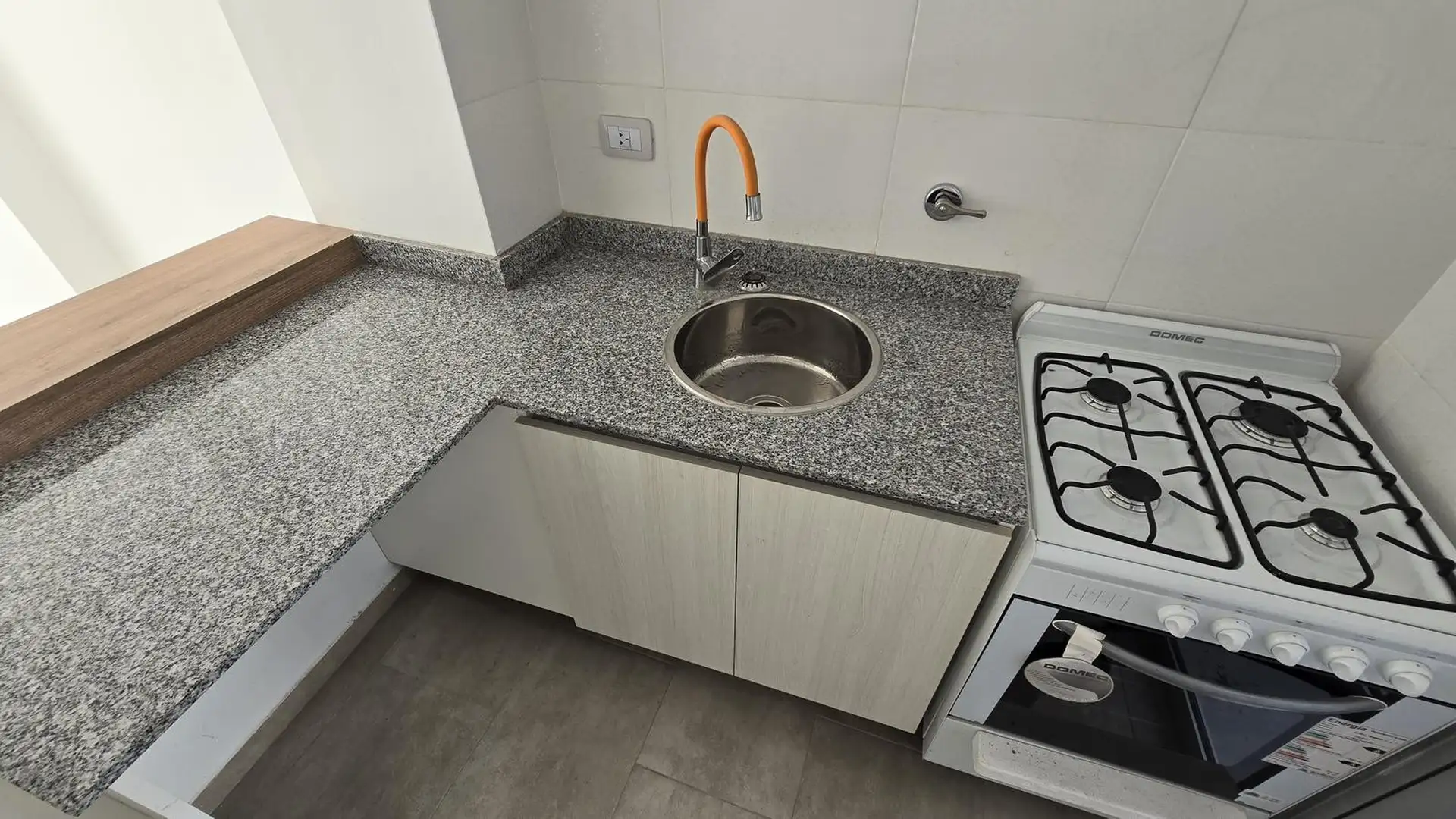 Monoambiente a estrenar de un ambiente con balcón, en edificio de categoría. Cocina integrada, baño completo y ventilación natural. El alquiler incluye piscina, parrilla, SUM y espacio de co-work; cocheras y bauleras son opcionales. El contrato es por 36 meses con ajuste trimestral por IPC.