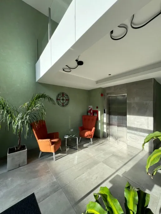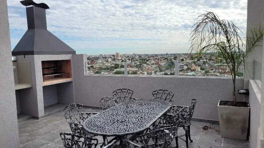 Semipiso de 2 ambientes en el edificio Nuevo Galicia III, ubicado en Av. Santa Fe, en Piñeyro. Cuenta con living-comedor, cocina separada con muebles bajo mesada, alacena, mesada de mármol Negro Boreal y cocina Orbis, y 1 dormitorio con placard empotrado. Tiene baño con porcelanato símil Carrara, sanitarios Roca y vanitory laqueado, aire acondicionado frío/calor y puerta de acceso Pentágono. Incluye piscina en la azotea con solárium y deck, SUM con parrilla y cocina, sector de asadores, cerradur