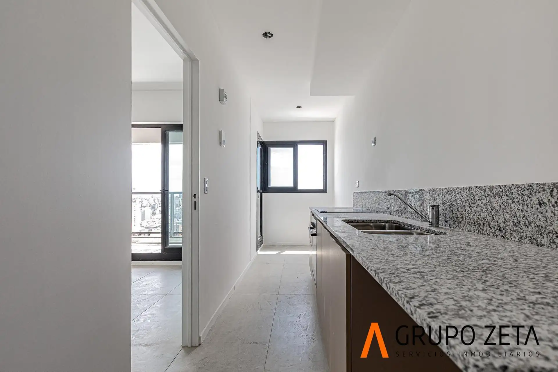 Departamento de 2 ambientes a estrenar en Human Towers Abasto, en el piso 23, con balcón al frente y vista abierta. Superficie total de 45 m². Living comedor con salida al balcón, cocina separada con equipamiento eléctrico y dormitorio con espacio para placard, con baño completo. El edificio cuenta con piscina con solarium, parrillas, gimnasio, spa, microcine, espacios de coworking, SUM, laundry, canchas deportivas, circuito aeróbico, espacios verdes, sector para niños y seguridad 24 horas.