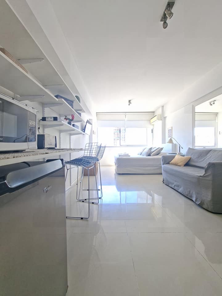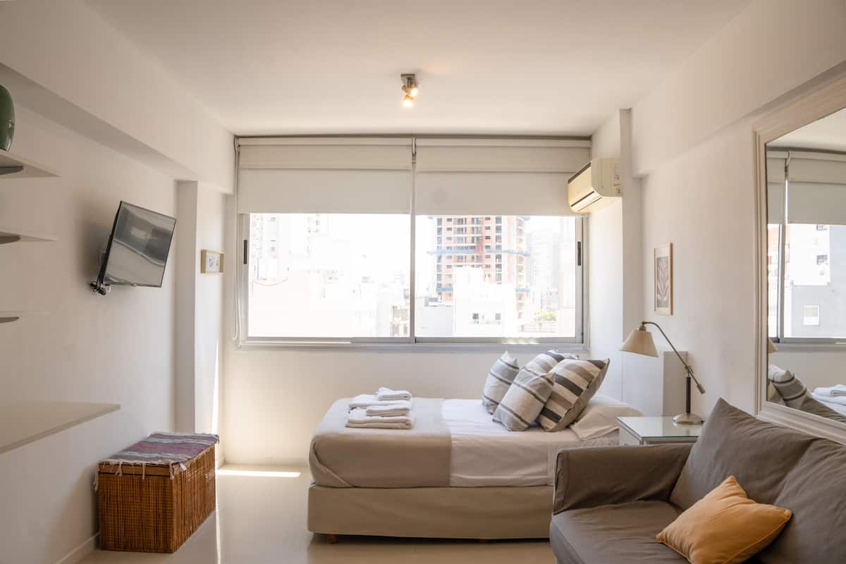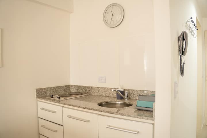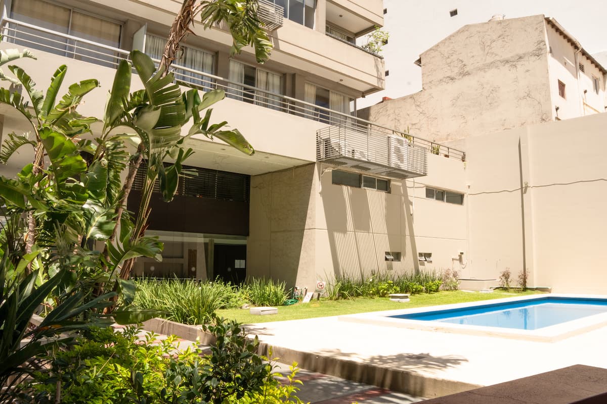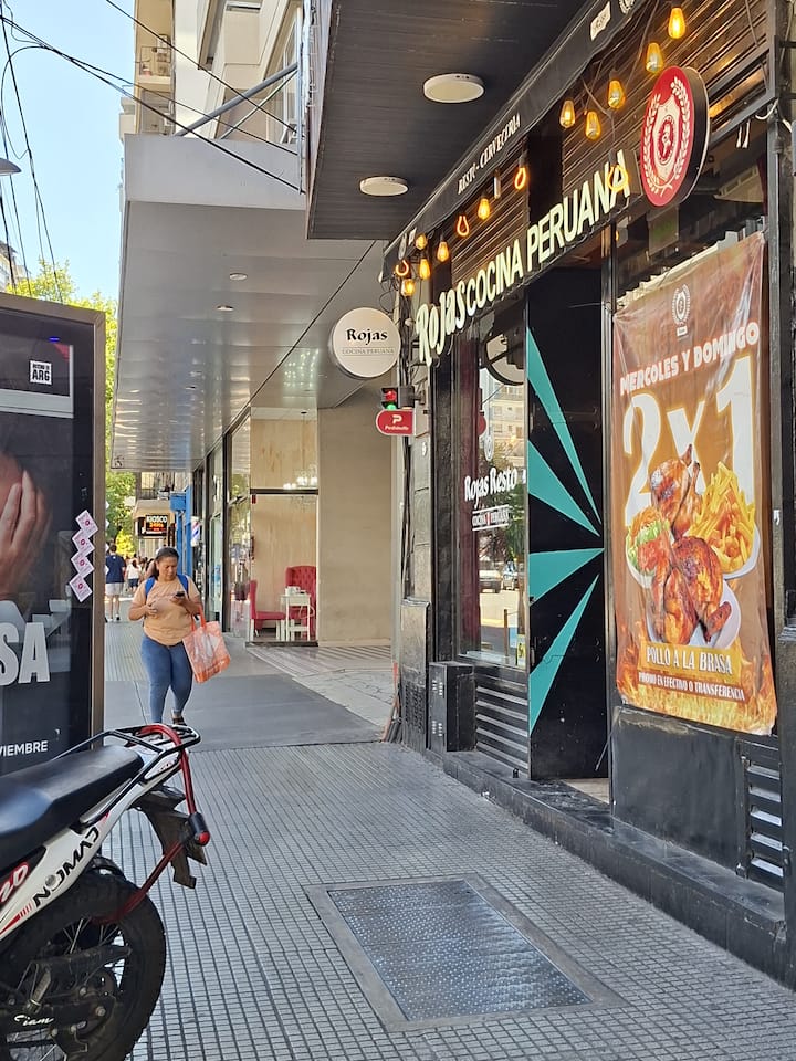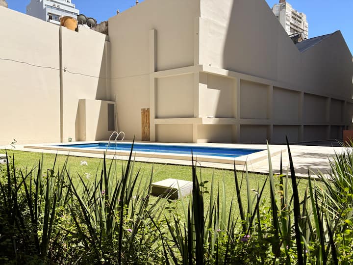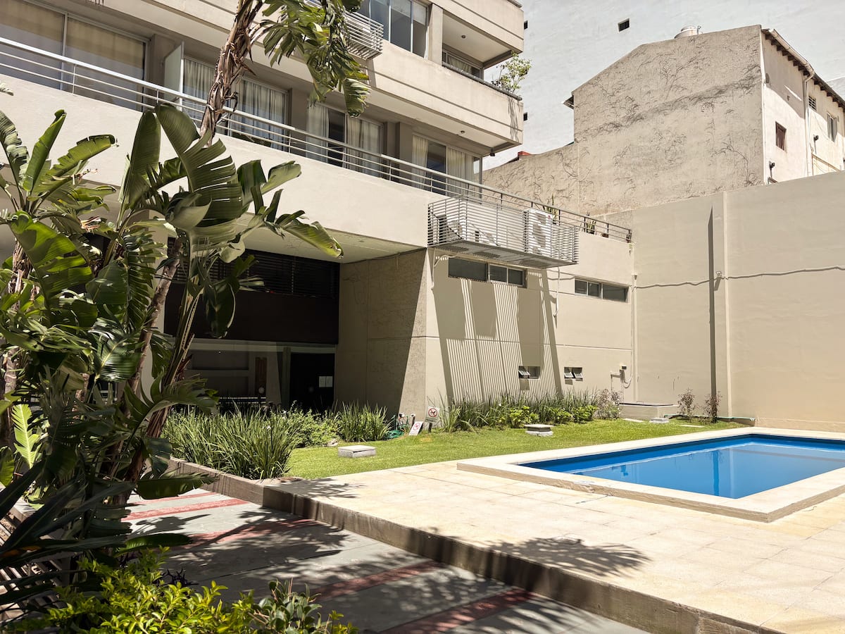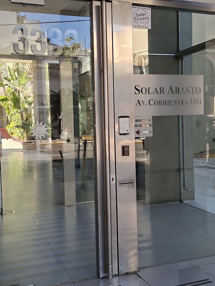 Loft en Solar Abasto, en Balvanera, con pileta y lavadero. Cuenta con cama matrimonial, placard, TV con cable, cocina y baño completos. Se ubica sobre Av. Corrientes, a 50 metros del subte, a 100 metros del Abasto Shopping y a pocas cuadras de la zona comercial de Once, con el Centro Cultural Konex a una cuadra. La estación de subte junto al edificio es Carlos Gardel.