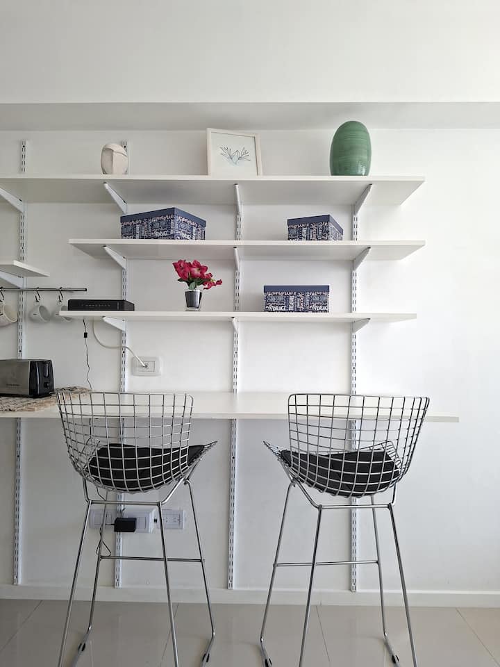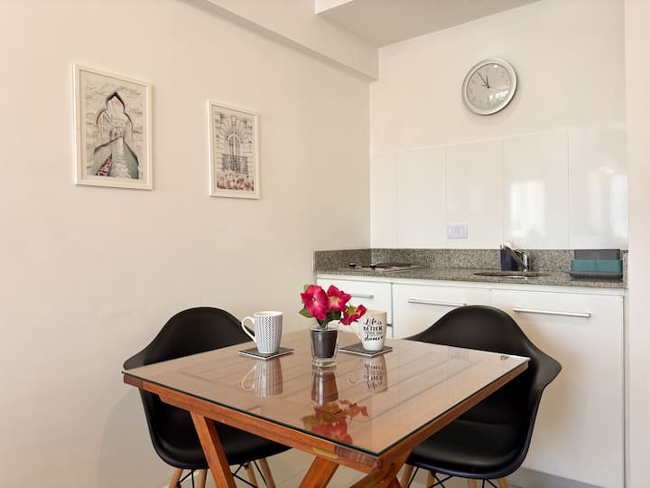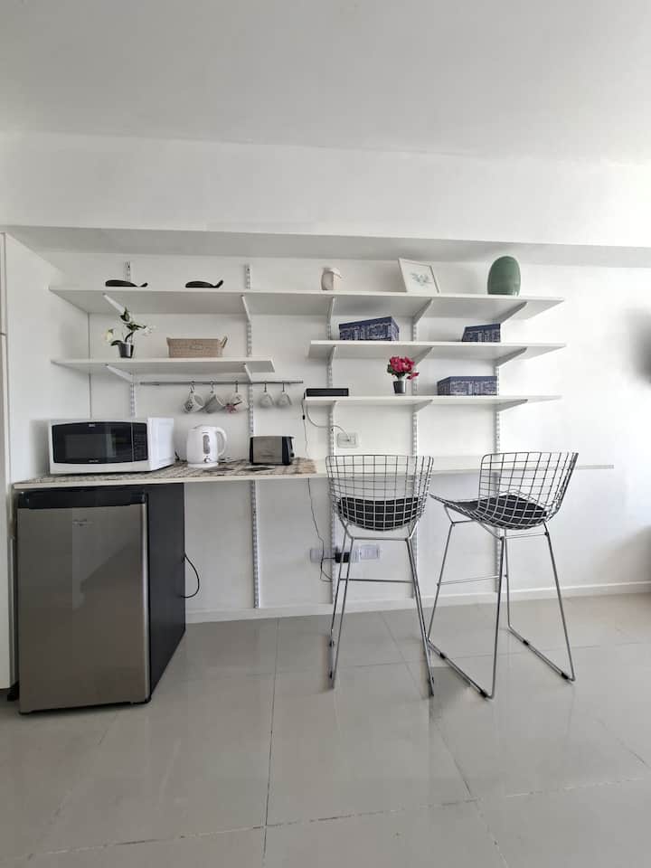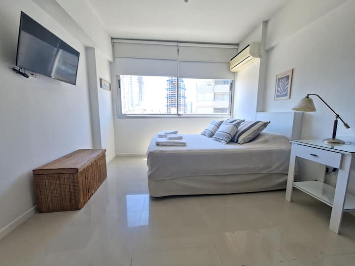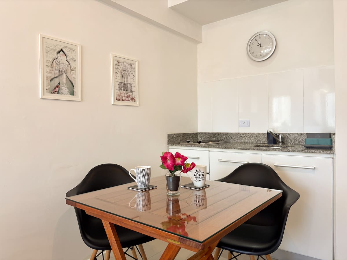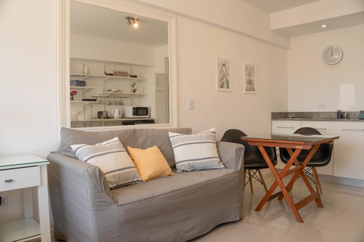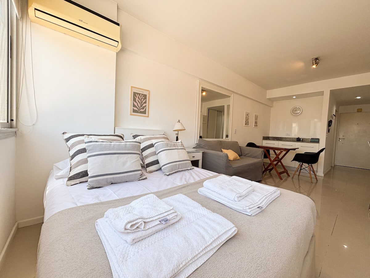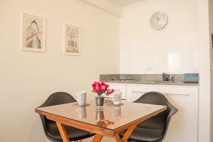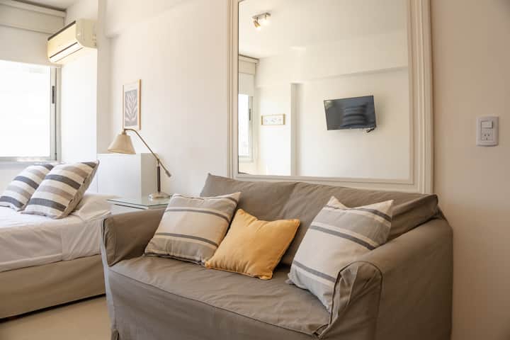 Loft en Solar Abasto, en Balvanera, con pileta y lavadero. Cuenta con cama matrimonial, placard, TV con cable, cocina y baño completos. Se ubica sobre Av. Corrientes, a 50 metros del subte, a 100 metros del Abasto Shopping y a pocas cuadras de la zona comercial de Once, con el Centro Cultural Konex a una cuadra. La estación de subte junto al edificio es Carlos Gardel.