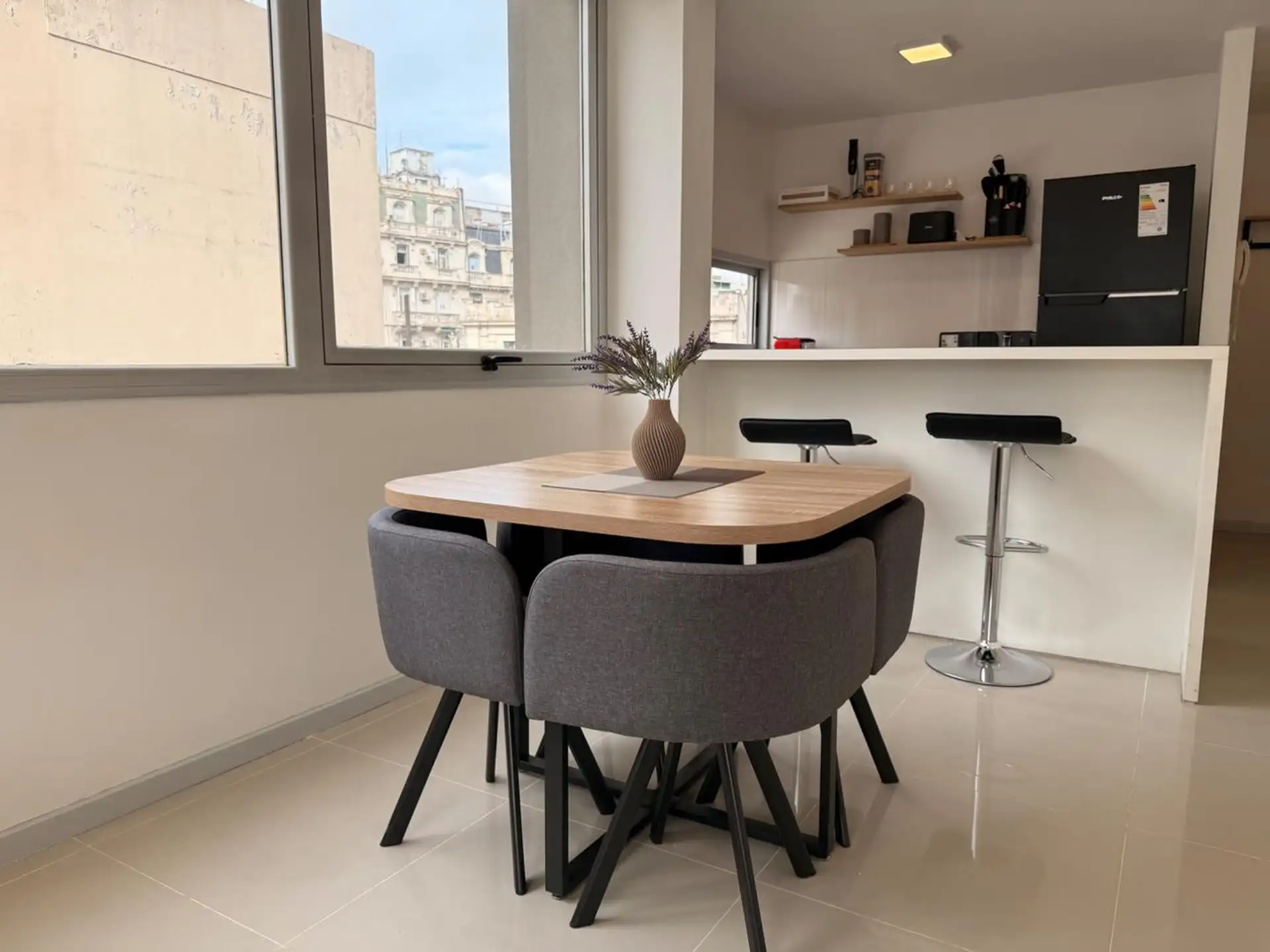 Monoambiente en alquiler en Balvanera, ubicado sobre Av. Corrientes al 3300. Está totalmente amoblado, con cocina equipada y balcón. El edificio cuenta con piscina. El alquiler es de USD 650 y las expensas son de $160.000.