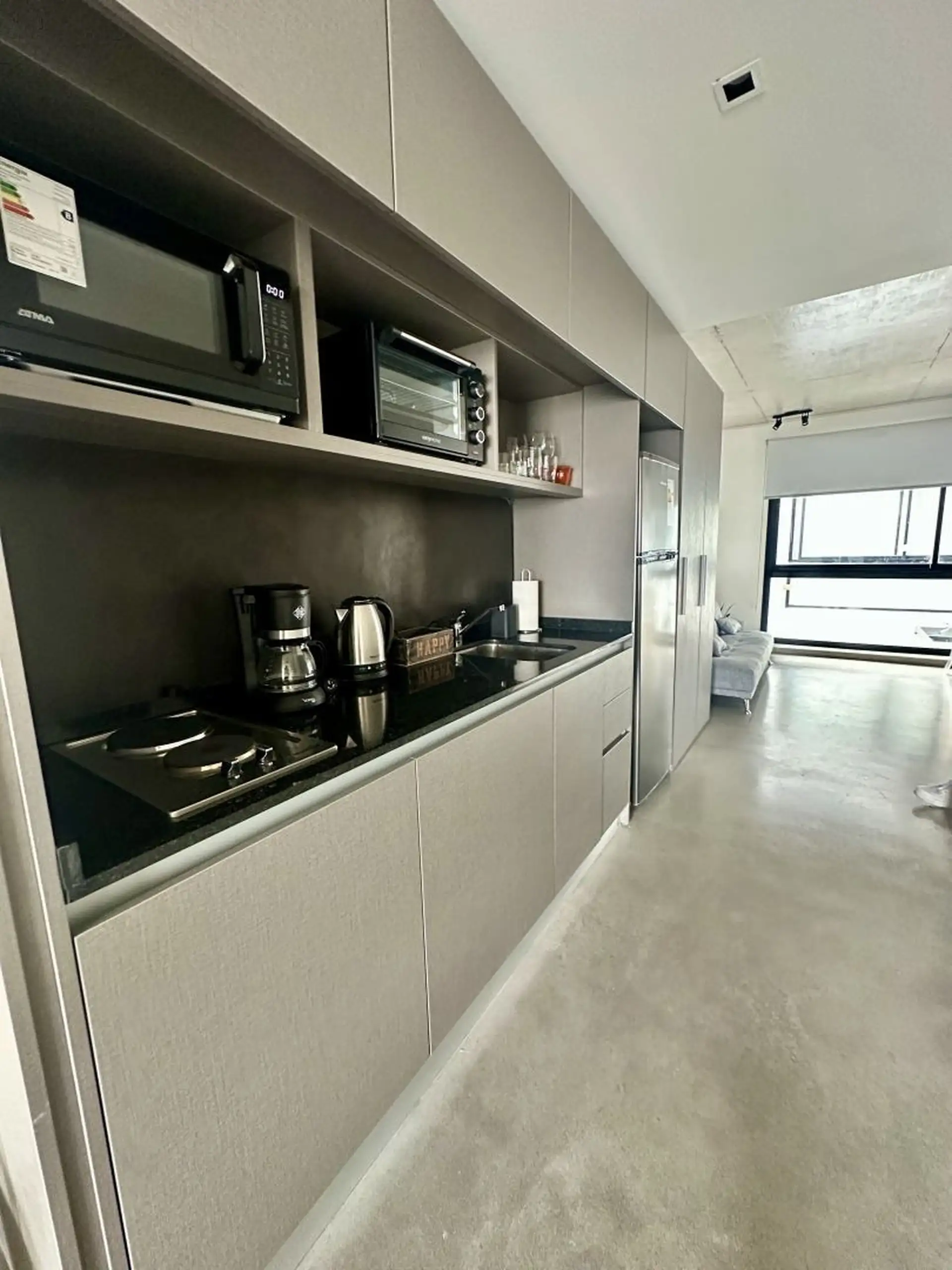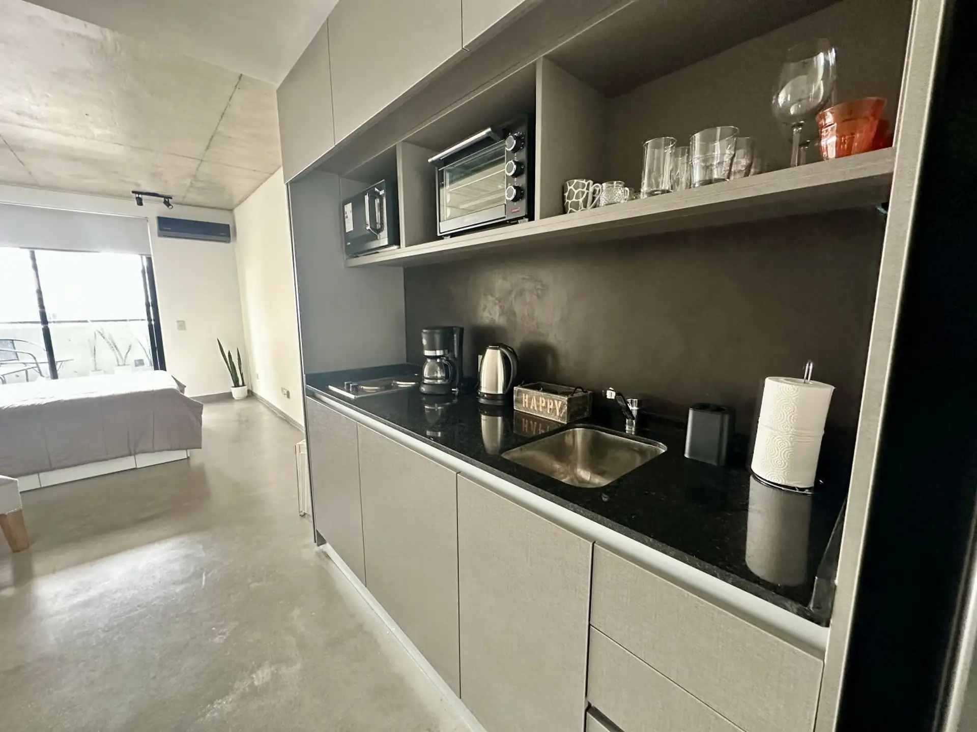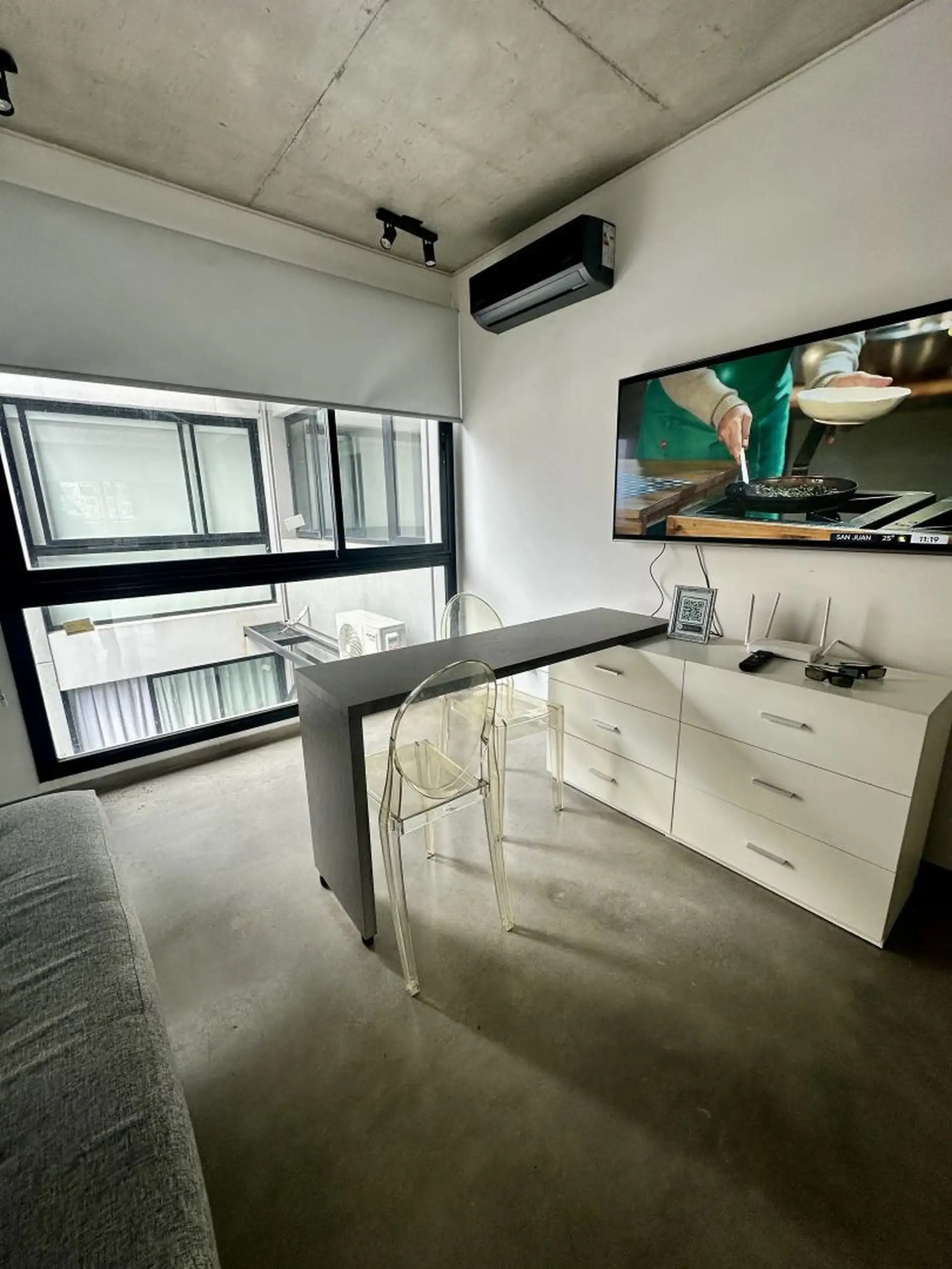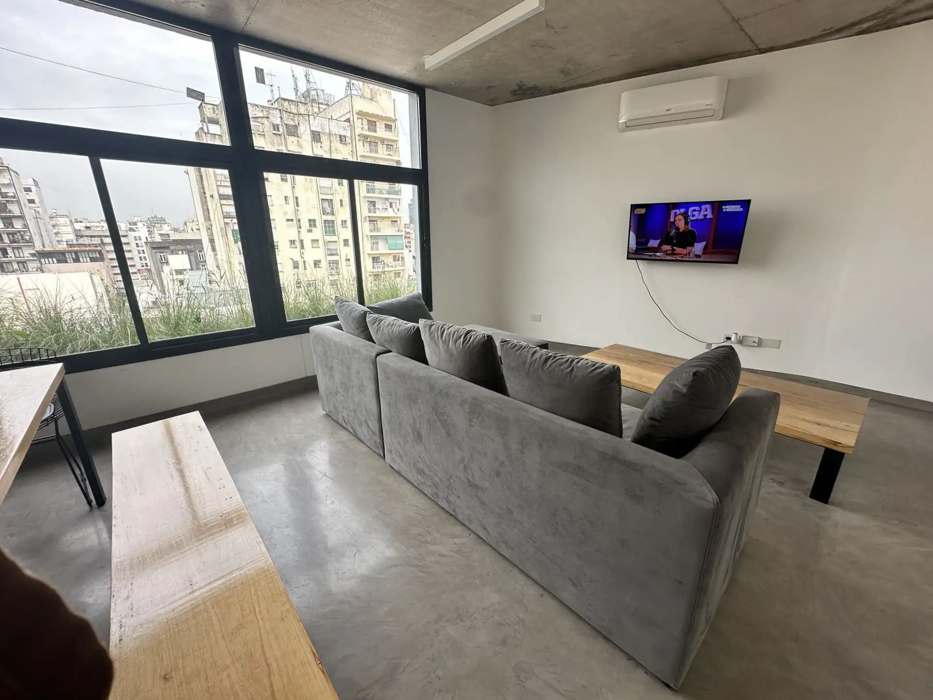 Departamento de 2 ambientes en Balvanera, con ambiente divisible. El dormitorio tiene ventanal; la cocina cuenta con espacio de guardado y el living comedor tiene salida al balcón. Incluye baño completo y se ofrece amoblado. El edificio dispone de SUM con cocina y terraza con parrilla, y el contrato es por 2 a 12 meses.