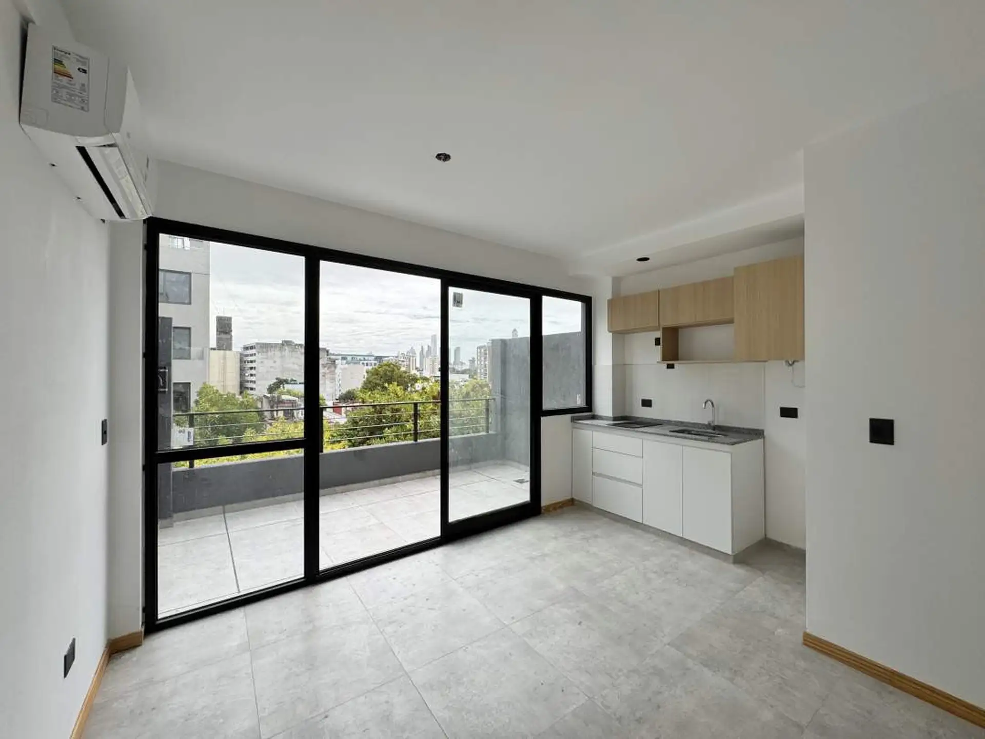 Departamento de 1 ambiente a estrenar en Barracas, en piso alto, con orientación al frente y salida a un balcón aterrazado. Cocina semi-integrada con conexión y espacio para lavarropas; baño completo. Las expensas son de $180.000.