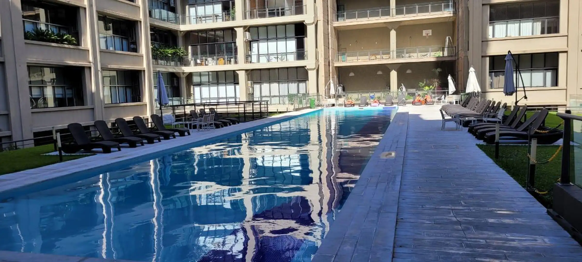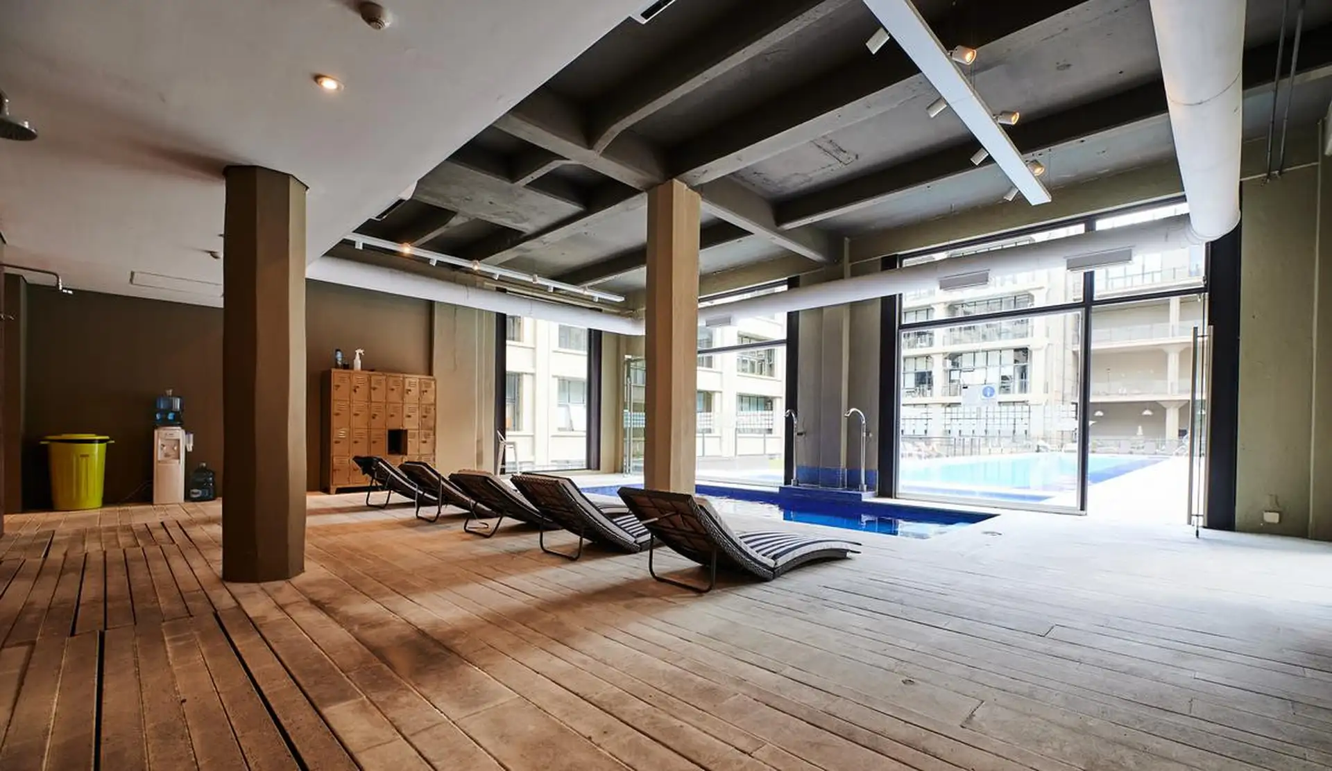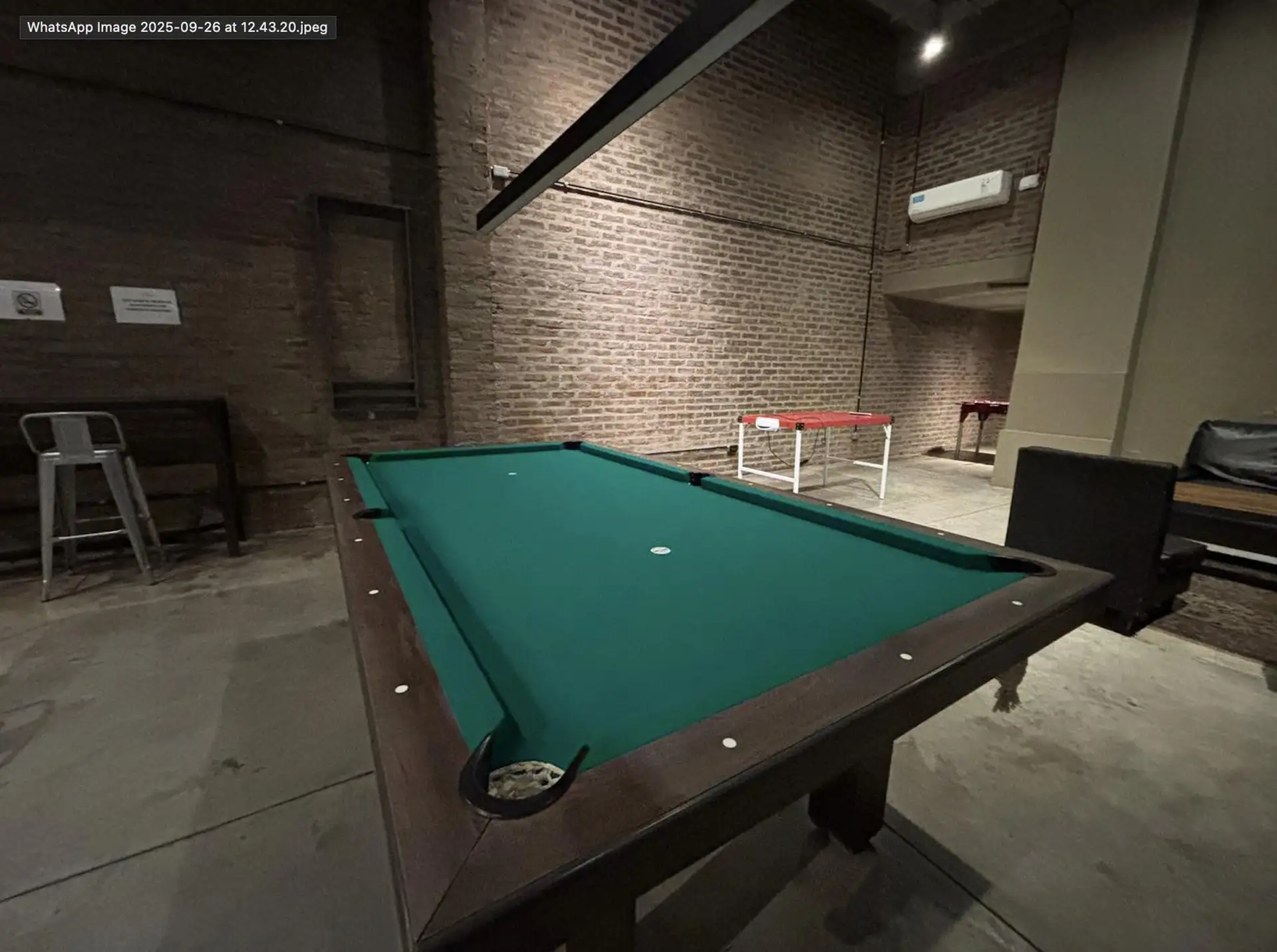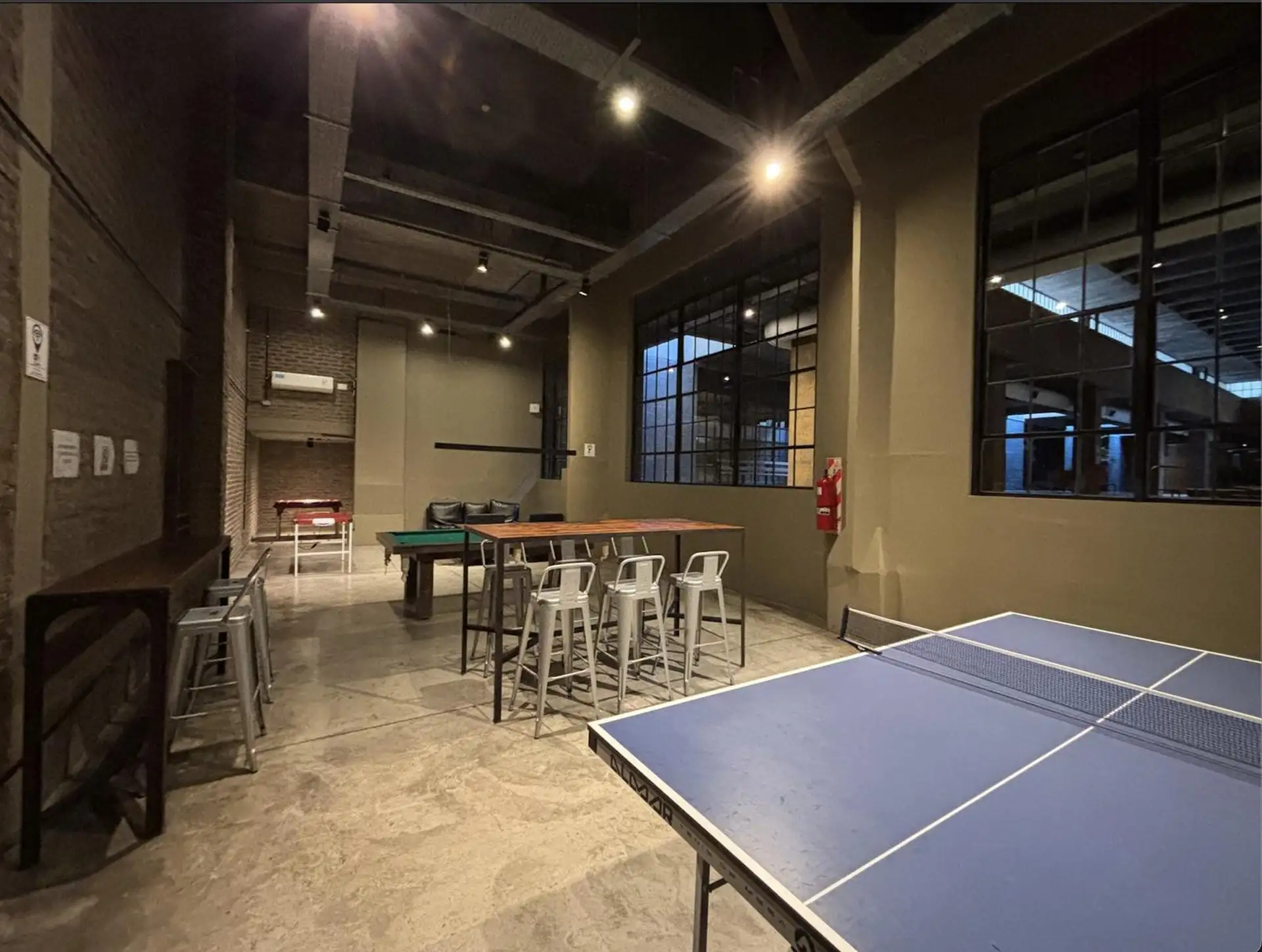 Departamento loft de 2 ambientes en Barracas. Se alquila con contrato por 1 año por USD 900 mensuales más expensas. Cuenta con cocina integrada con barra, muebles de cocina completos, alacena y bajo mesada, living-comedor con salida al balcón, dormitorio con vestidor y baño completo. Tiene cortinas black out en el dormitorio, 2 aires acondicionados frío-calor y cerradura electrónica para el ingreso. El homestaging de la imagen es ilustrativo y se generó con IA a partir de una foto real.