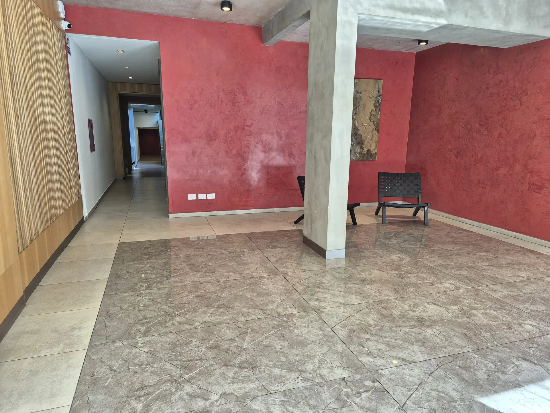 Departamento de 2 ambientes en 5° piso, con vista interna al pulmón del edificio y vista al contrafrente, a estrenar entregado en 2024. Tiene cocina integrada todo eléctrico, agua caliente central, living comedor con AA frío-calor instalado y balcón, dormitorio con placard e interiores y balcón, y baño completo con ducha. Incluye cochera fija en primer subsuelo con acceso por ascensor. El edificio cuenta con jardín de uso común y SUM en la terraza con baños y acceso a terraza-solarium.