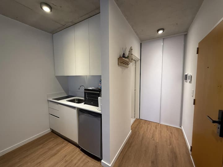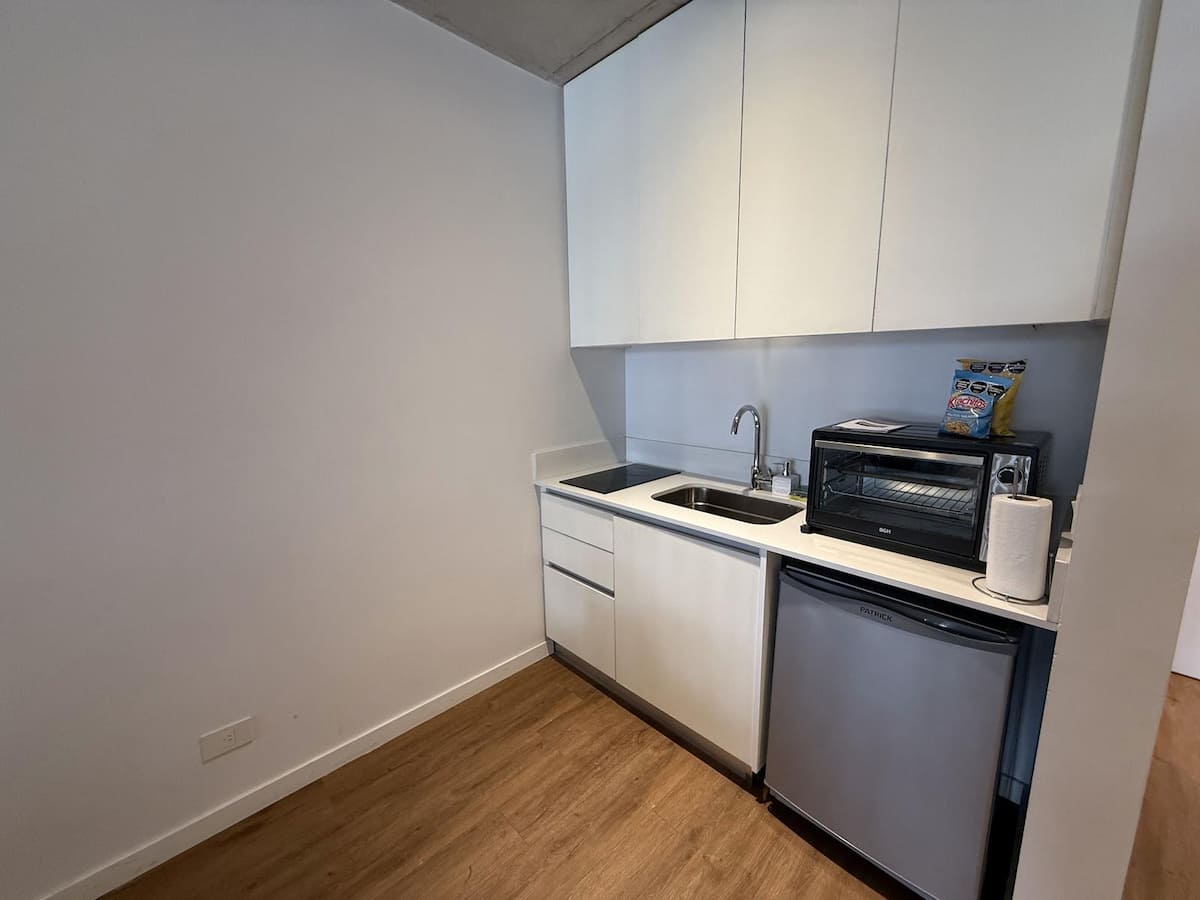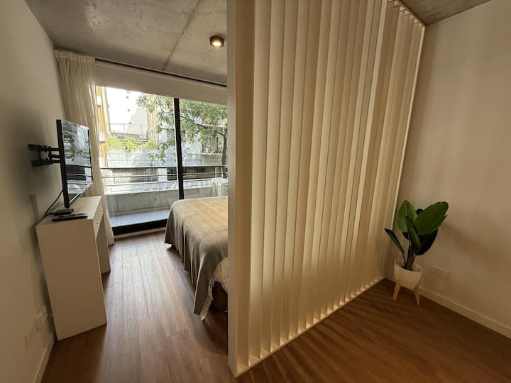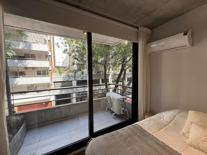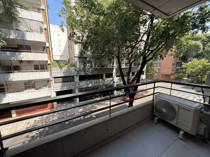 Departamento en Belgrano, de 1 dormitorio, en edificio moderno. Se alquila equipado, con cocina provista de cafetera Nespresso, tostadora, licuadora, pava eléctrica, horno eléctrico y microondas; además cuenta con TV LED y cortinas blackout. El ingreso tiene cerradura electrónica y control con código. Incluye acceso a laundry y a un espacio de co-working en el 10º piso con internet de 1 TB, a 1 cuadra de Plaza Alberti y a 2 cuadras de Av. Cabildo y del Subte Línea D (estación Juramento).