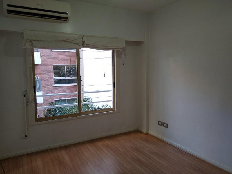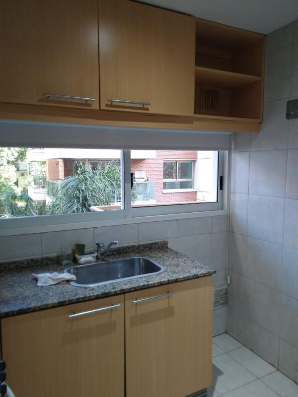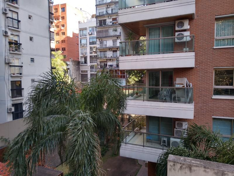 Departamento de 2 ambientes de 41 m² totales, con 38 m² cubiertos y 3 m² semicubiertos, contrafrente. Living-comedor de 6 x 3,50 m, balcón y dormitorio de 3,50 x 3,20 m con placard. Incluye aire acondicionado BGH split de 3000 frigorías, cortina de enrollar, baño completo, cocina completa con muebles bajo mesada y alacena revestidos en melamina, mesada de granito y espacio para mesa. Cuenta con instalación para lavarropas, caldera individual Baxi para agua caliente y calefacción (losa radiante),