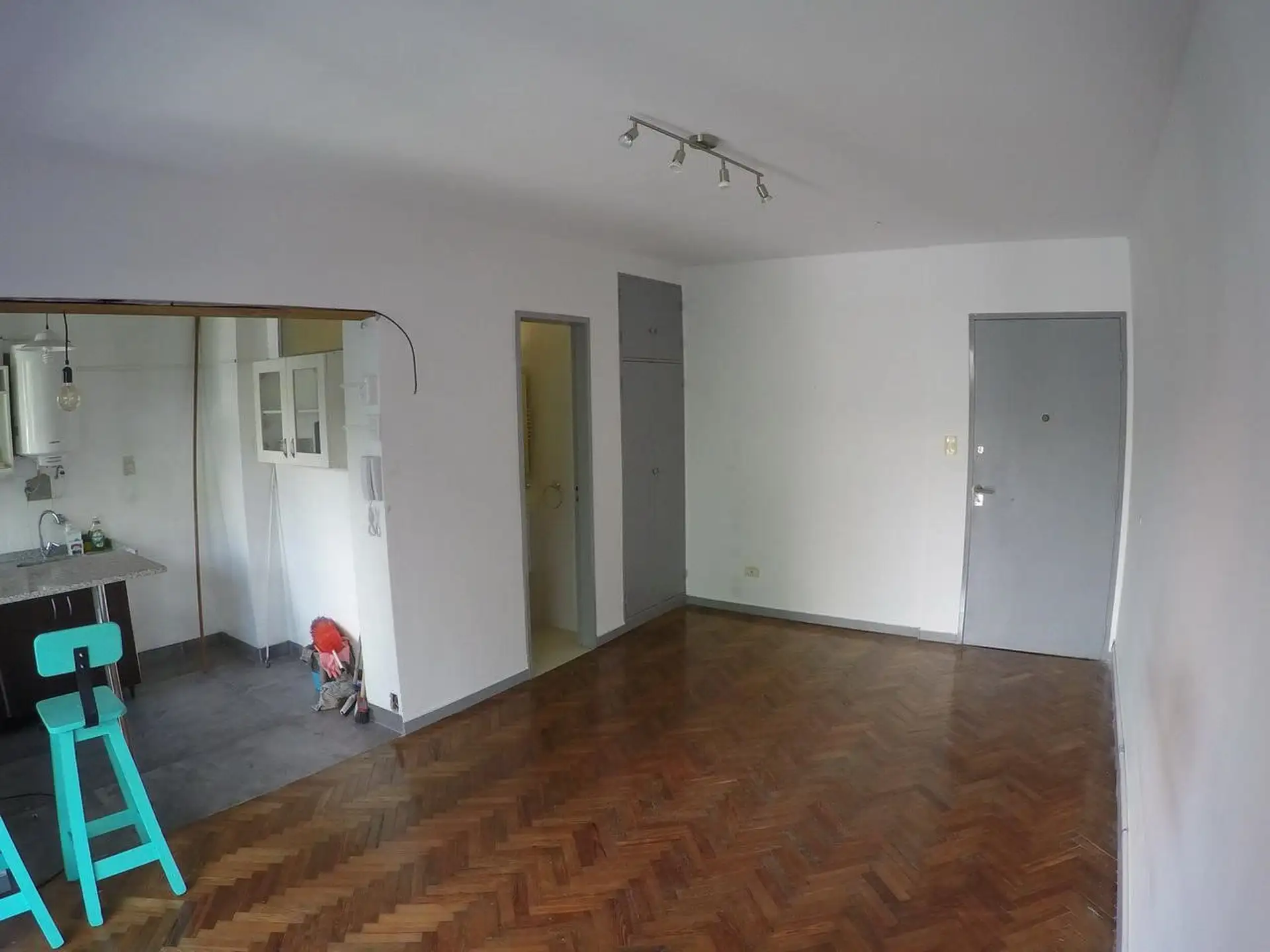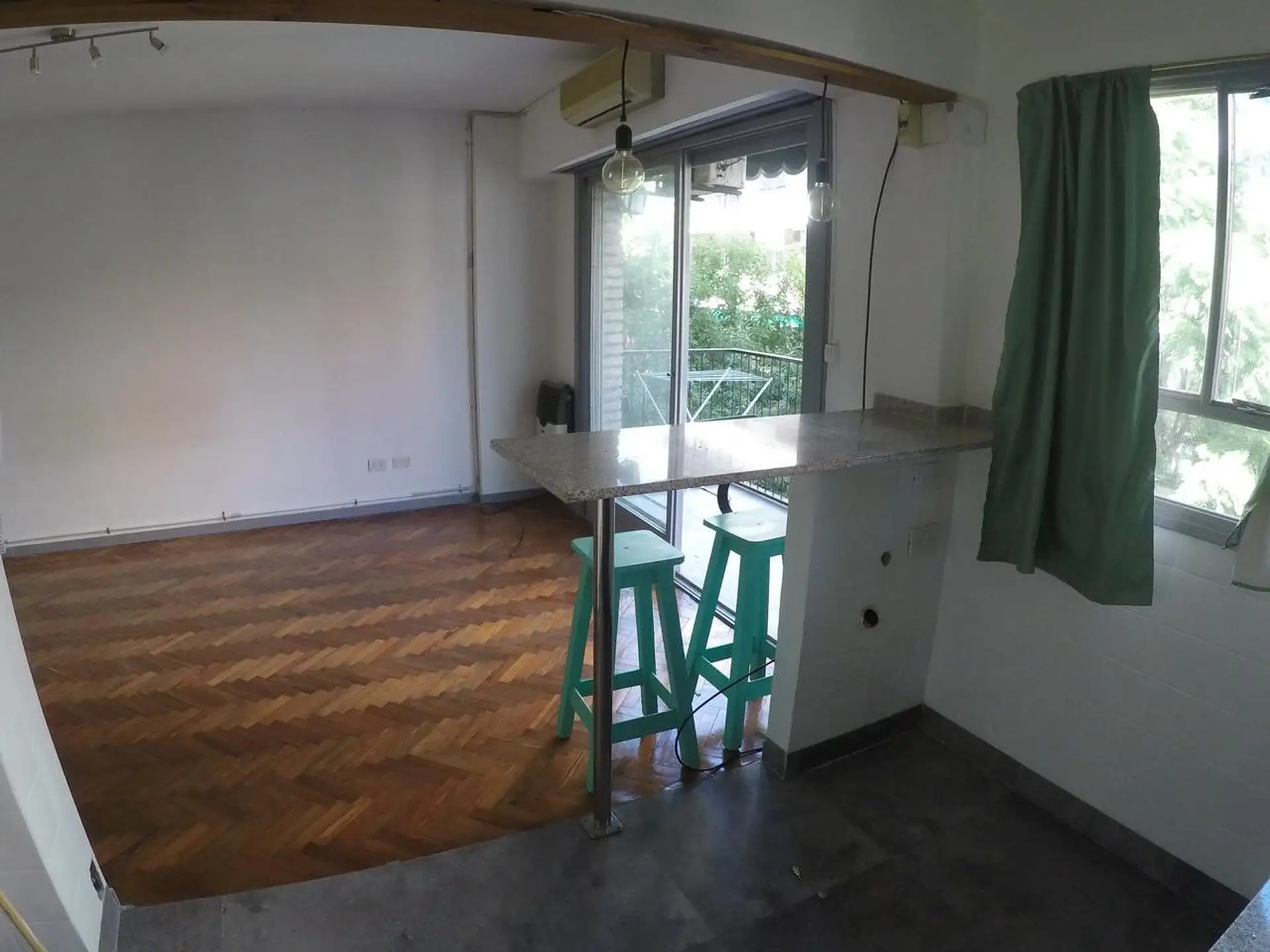 Monoambiente con placard, piso de parquet y balcón al frente, en el 3er piso por escalera. Cocina con barra desayunadora y 2 taburetes, con instalación para lavarropas. Contrato por 2 años con ajustes trimestrales al IPC y posesión inmediata.