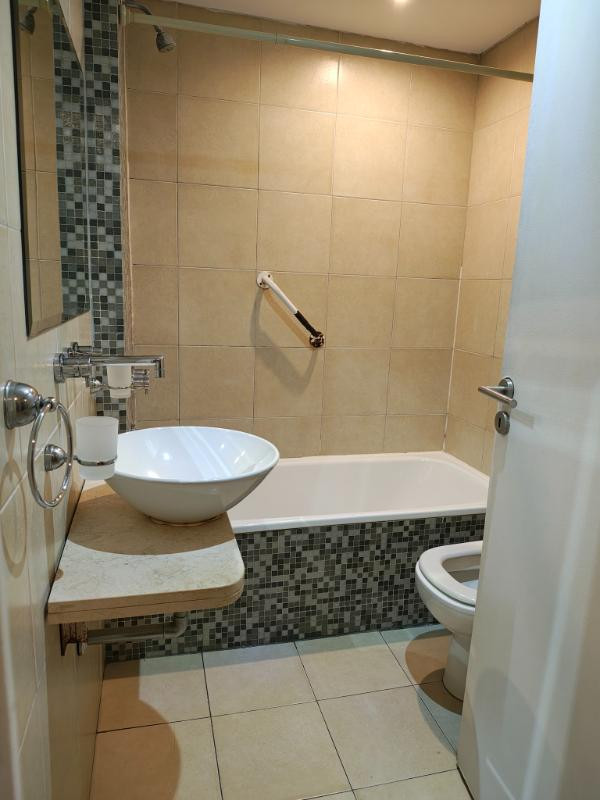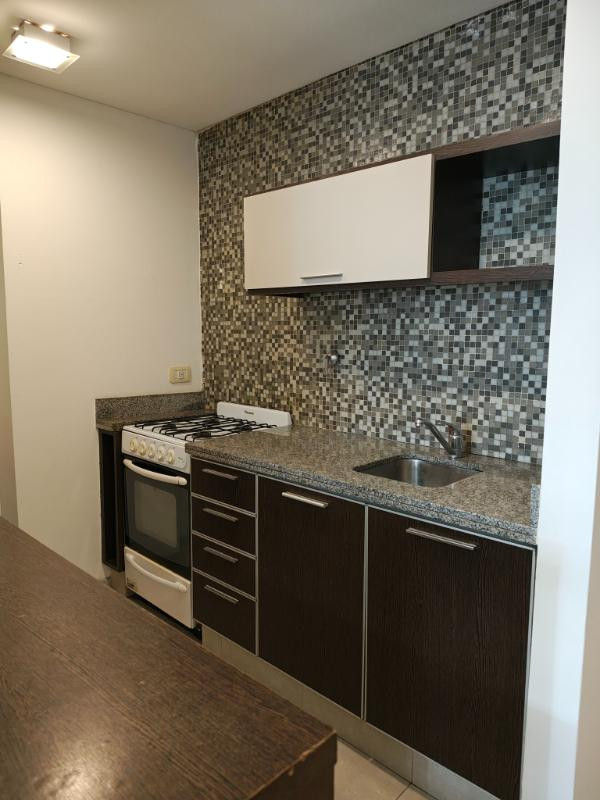 Monoambiente de 35 m² cubiertos, 38 m² totales, al frente, en 2° piso. Incluye balcón de 2,50 x 1,30 m con malla protectora. Cocina con cuatro hornallas y horno, muebles bajo mesada y alacenas, con espacio previsto para heladera y lavarropas. Baño completo con bañera, placard con puertas espejadas e interiores con cajonera. Cuenta con caldera individual, aire acondicionado frío/calor y luminarias instaladas. El edificio tiene 7 pisos, 4 departamentos por planta, piscina con solárium, jardín, sau