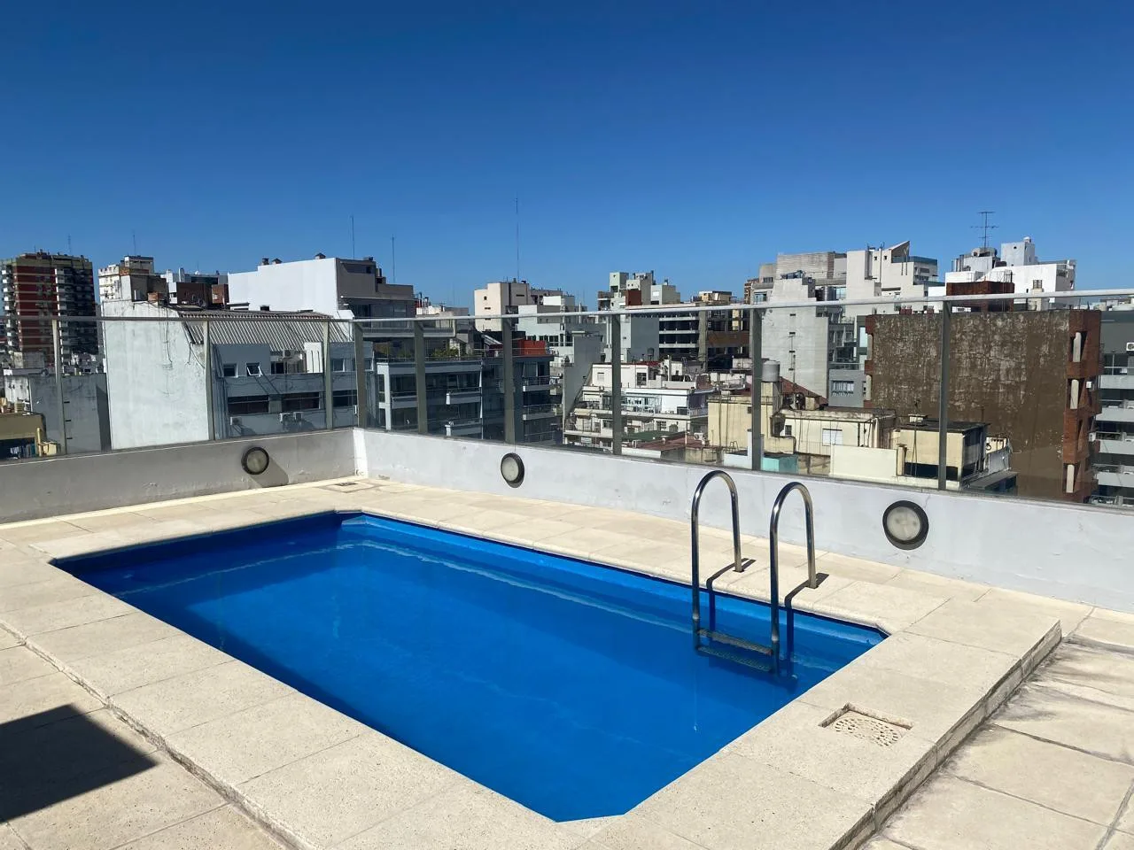 Departamento de 2 ambientes en Belgrano, piso 9 al contrafrente, con balcón no especificado, vista despejada y buena ventilación. Living comedor con aire acondicionado frío/calor, cocina integrada y toilette de recepción. Dormitorio en suite con placard, ventana con persiana y baño con ventana al exterior. El edificio cuenta con pileta, jacuzzi y espacio de gym, además de laundry y SUM en el piso superior, con encargado y acceso mediante llave electrónica.