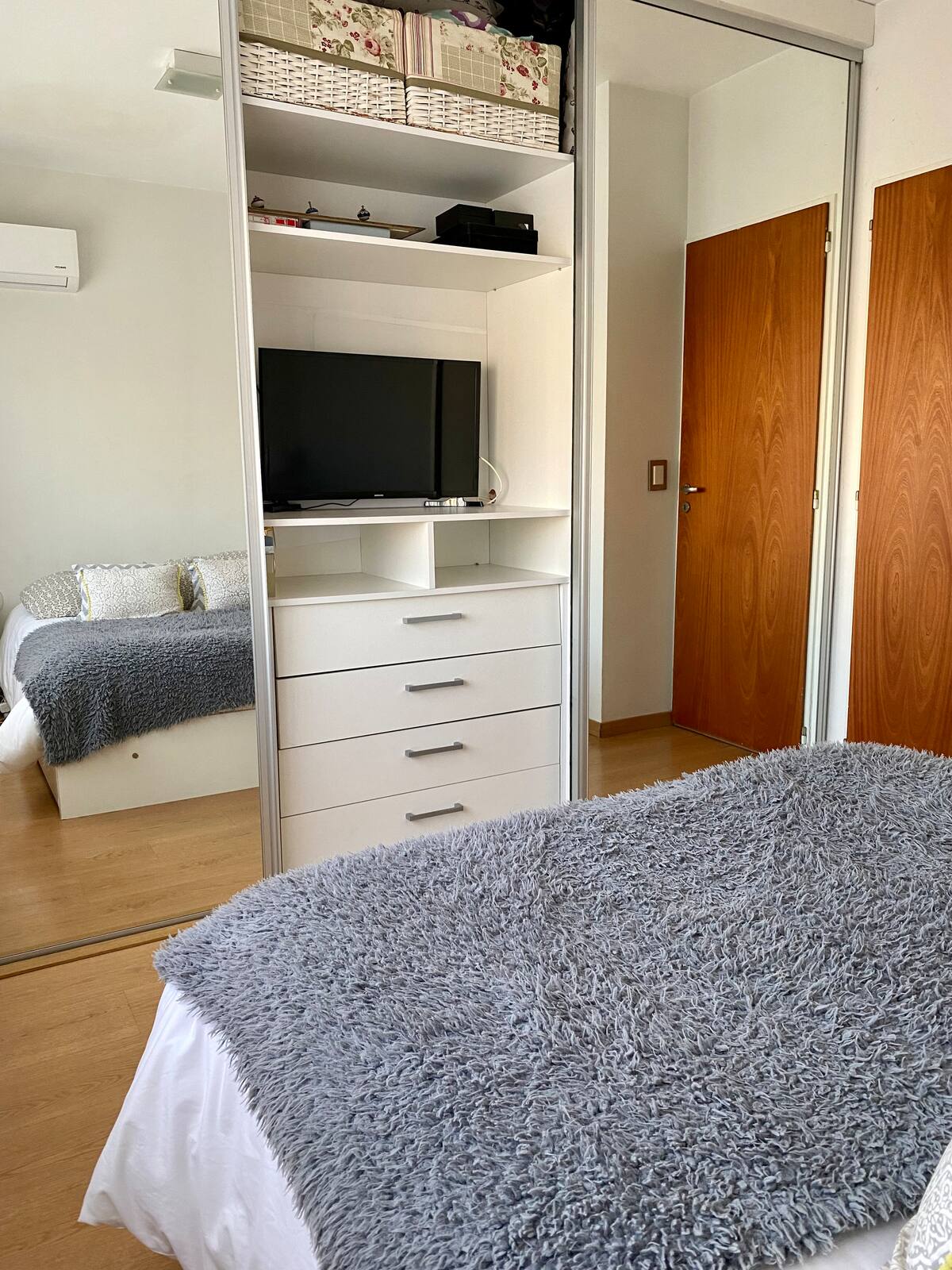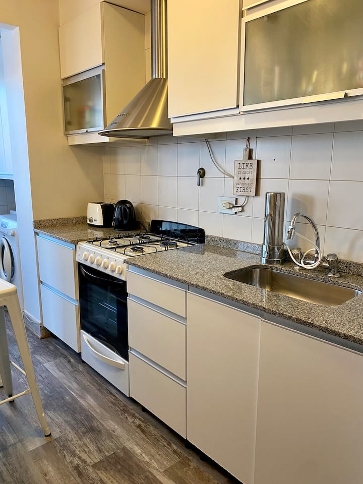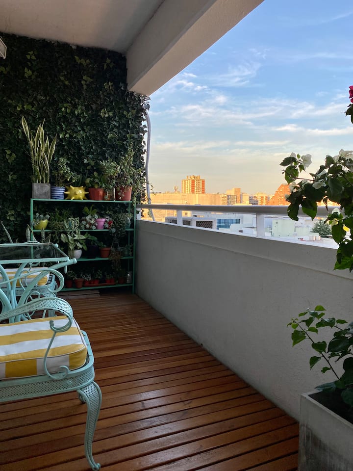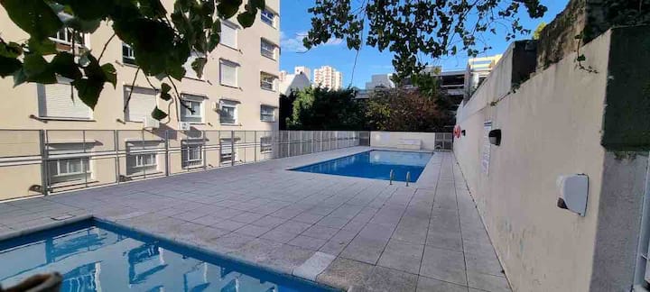 Apartment in Belgrano, equipped for 2 people, with a balcony and open views. The building has 24-hour security, a swimming pool, a residents’ square and a gym. There is a separate work area, plus TV and WiFi; a hairdryer is available. Garage availability is subject to confirmation, about 500 metres from the Congressional de Tucumán metro station and 300 metres from Av. Del Libertador.