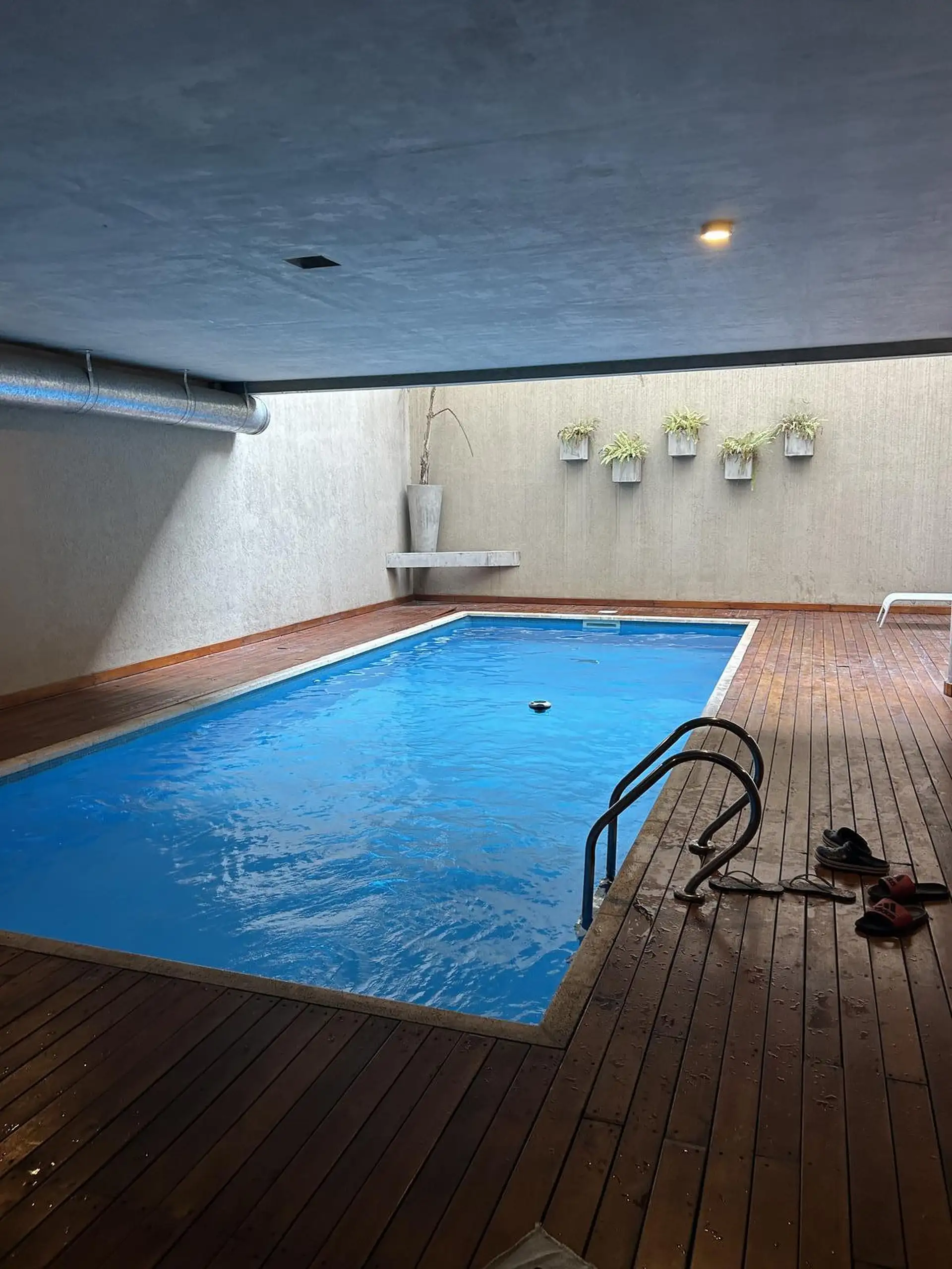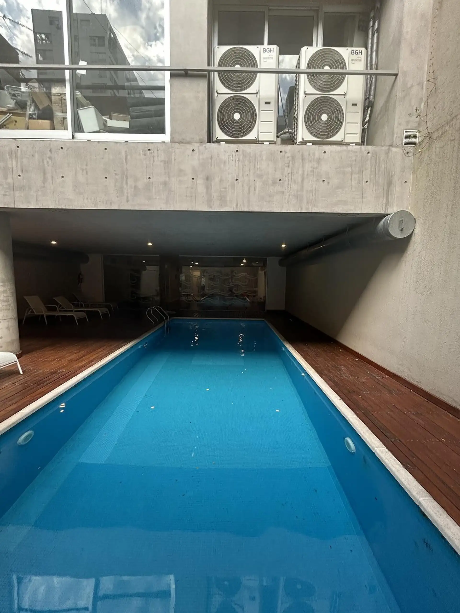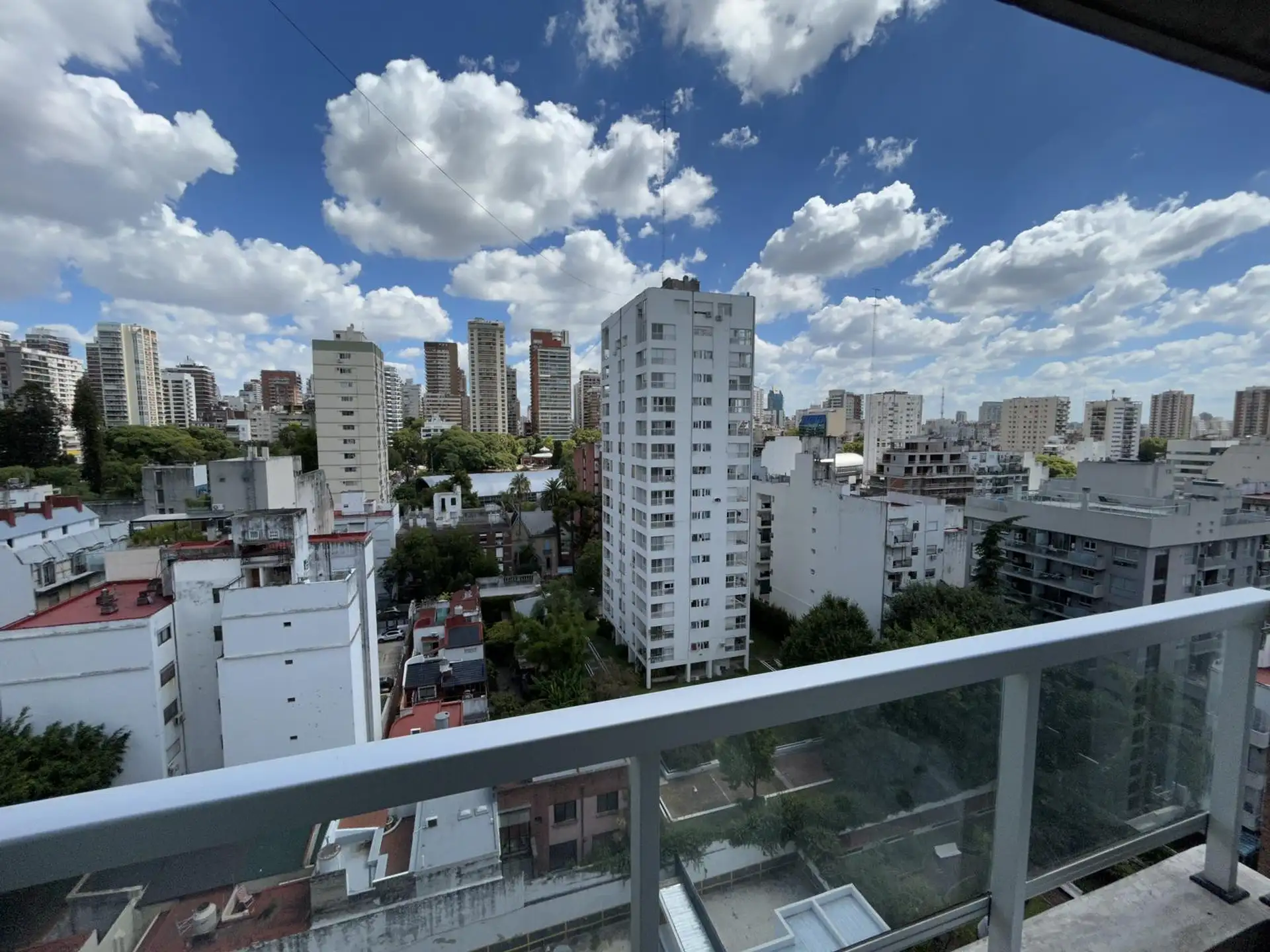 Departamento monoambiente de 36 m² cubiertos en Belgrano, en el contrafrente del edificio y en un piso alto. Cuenta con cocina integrada y balcón. El edificio tiene 5 años de antigüedad e incluye pileta, gimnasio, terraza con parrilla y laundry.