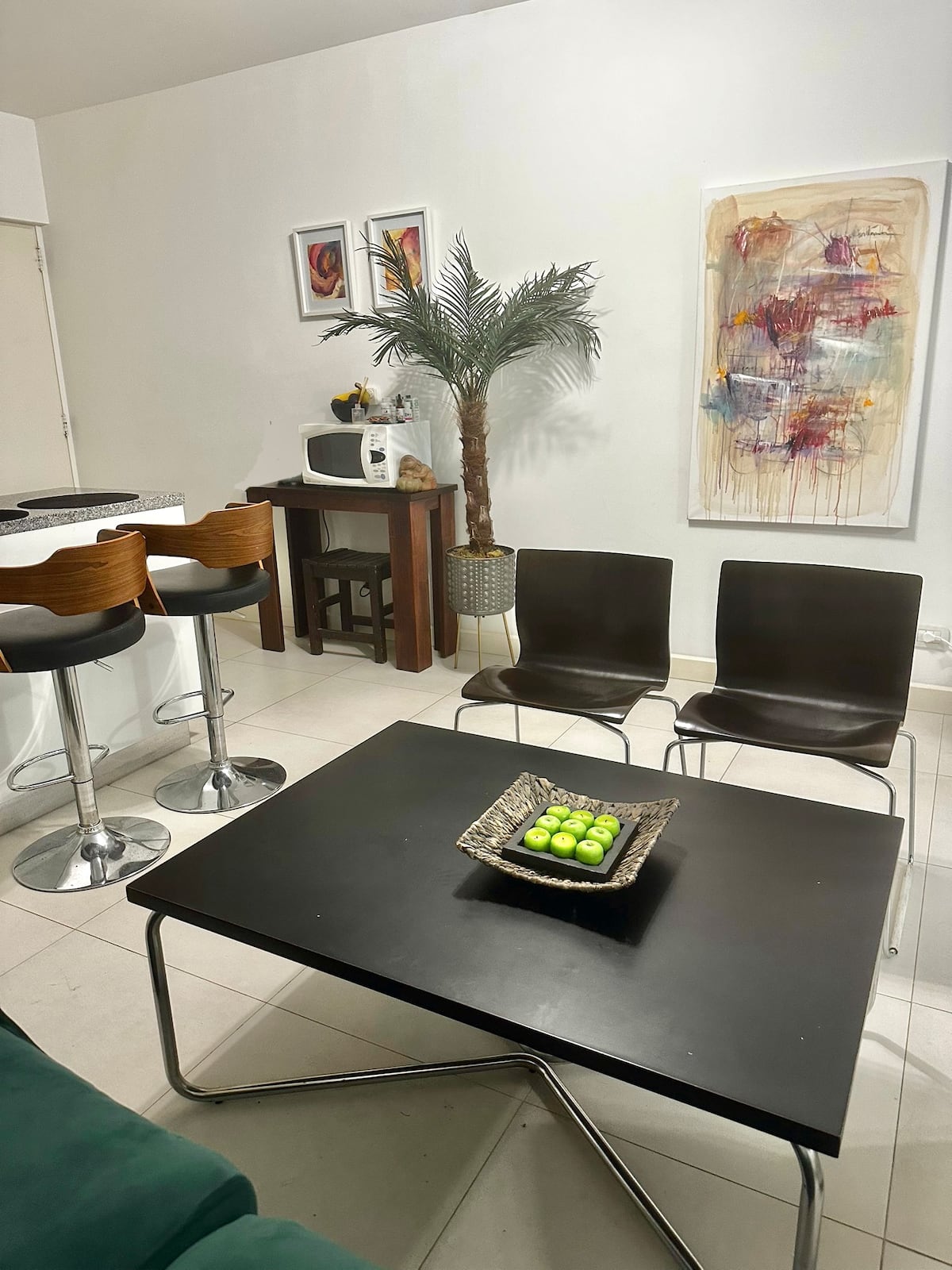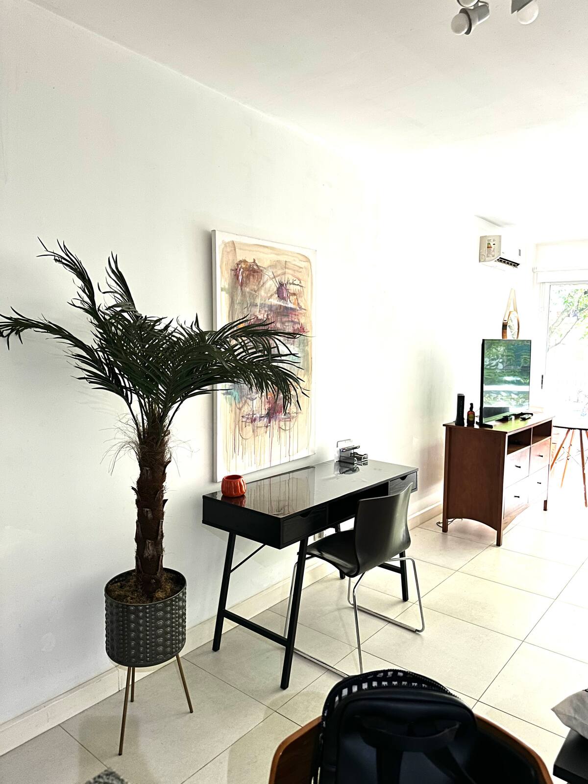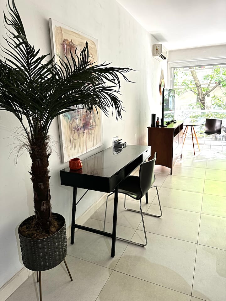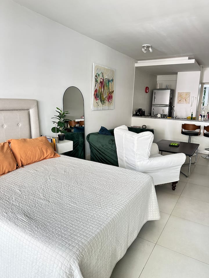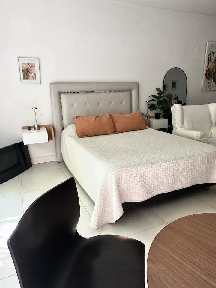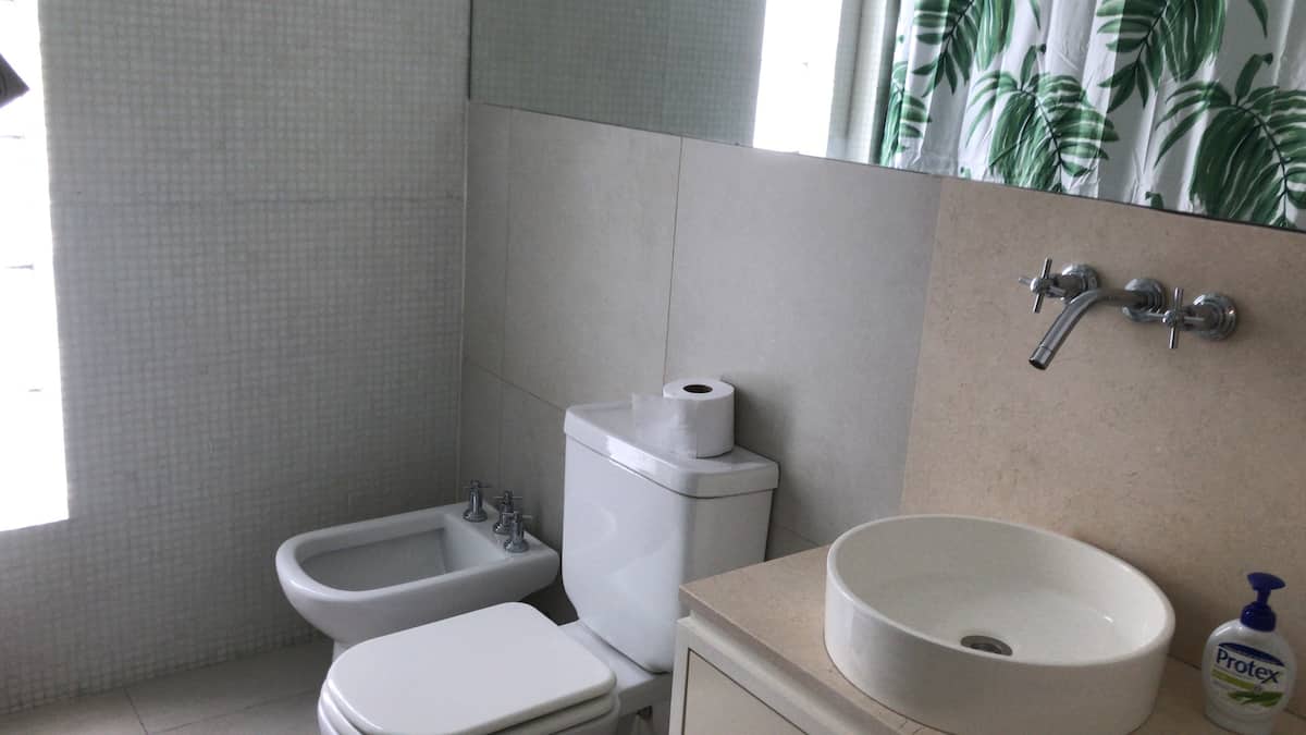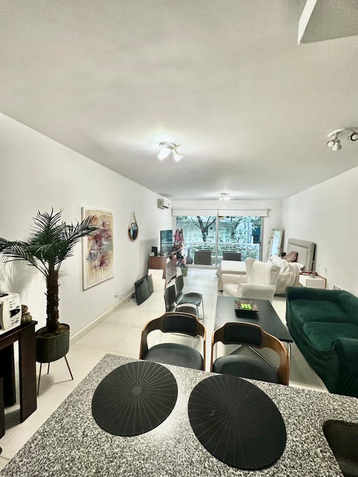 Monoambiente de departamento en Belgrano, con cama doble, ambiente comedor y cocina americana. Cuenta con heladera con freezer, microondas, horno y cocina eléctrica; aire acondicionado y estufa eléctrica. Hay lavandería de uso con fichas en planta baja, y parrilla en la terraza con reserva previa. Incluye Wi-Fi de alta velocidad y TV por cable. El acceso es al departamento completo.