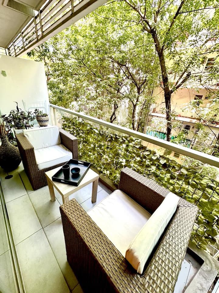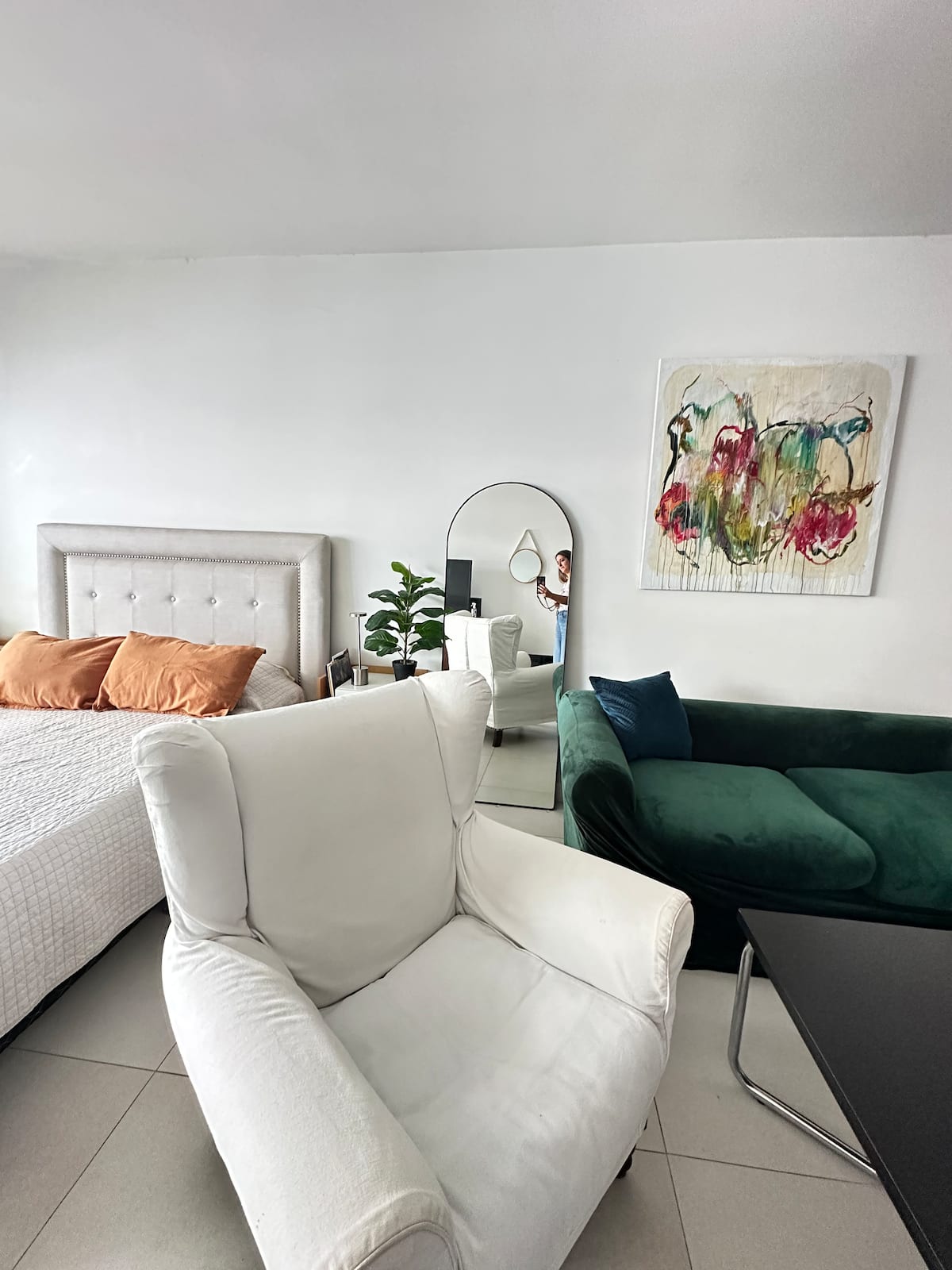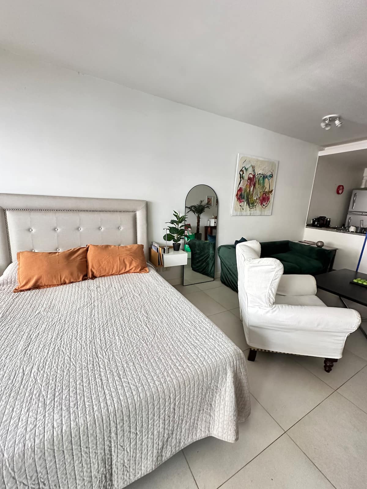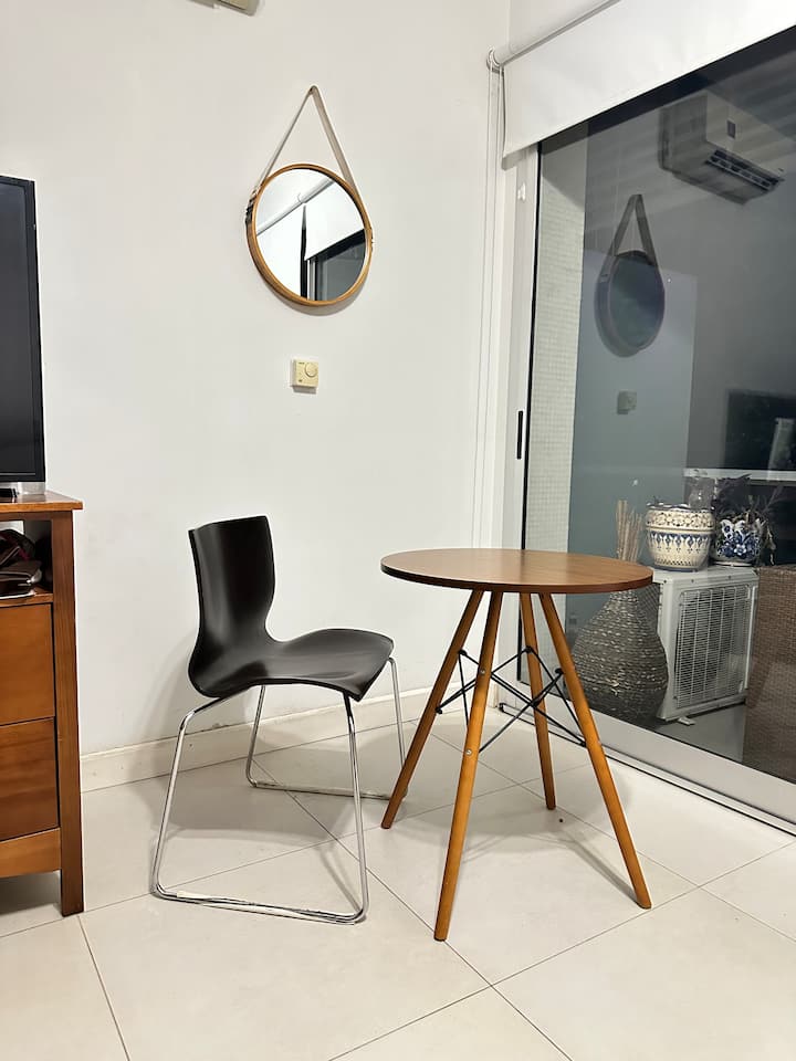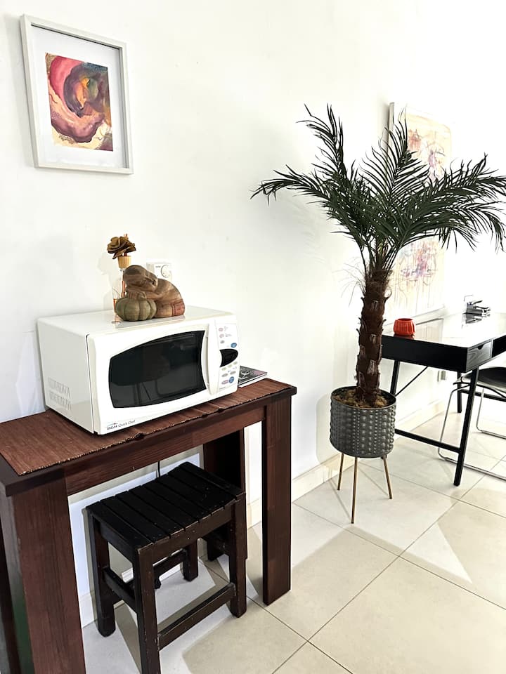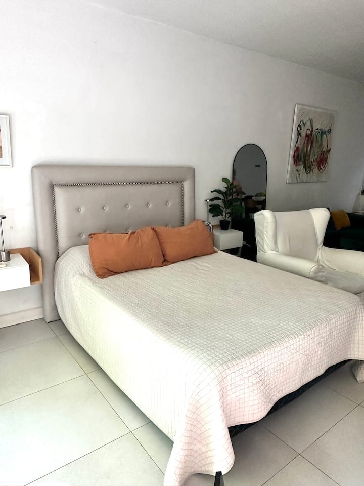 Monoambiente de departamento en Belgrano, con cama doble, ambiente comedor y cocina americana. Cuenta con heladera con freezer, microondas, horno y cocina eléctrica; aire acondicionado y estufa eléctrica. Hay lavandería de uso con fichas en planta baja, y parrilla en la terraza con reserva previa. Incluye Wi-Fi de alta velocidad y TV por cable. El acceso es al departamento completo.