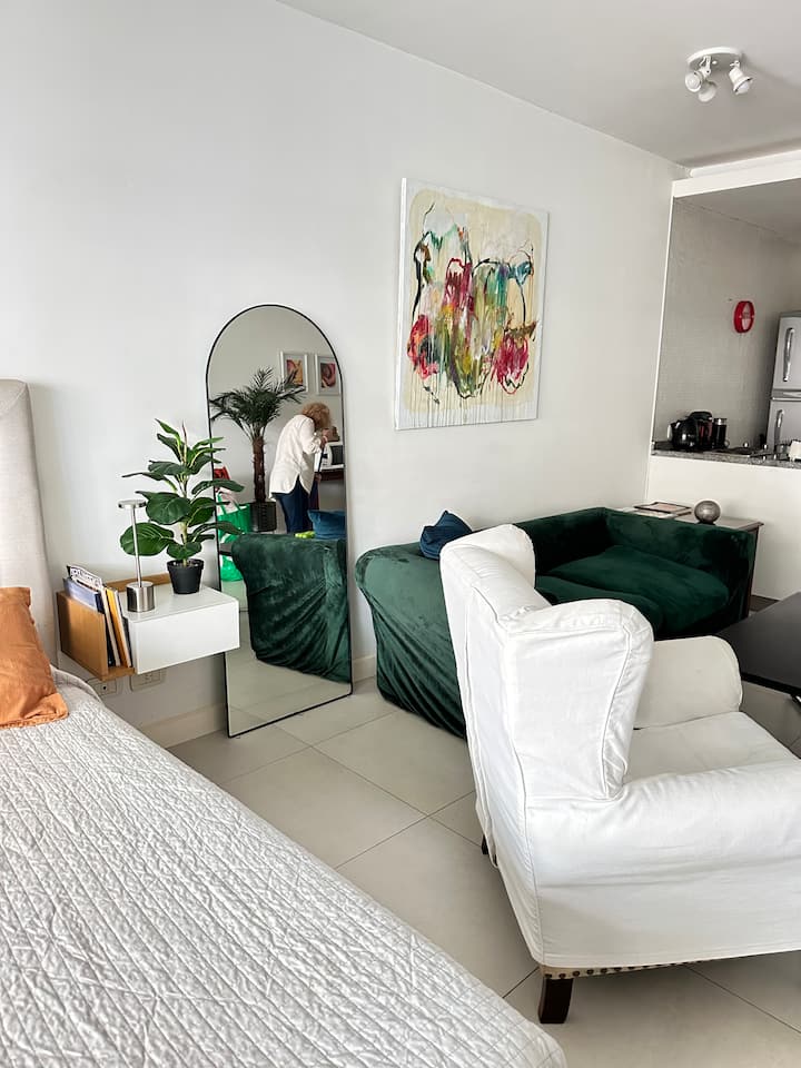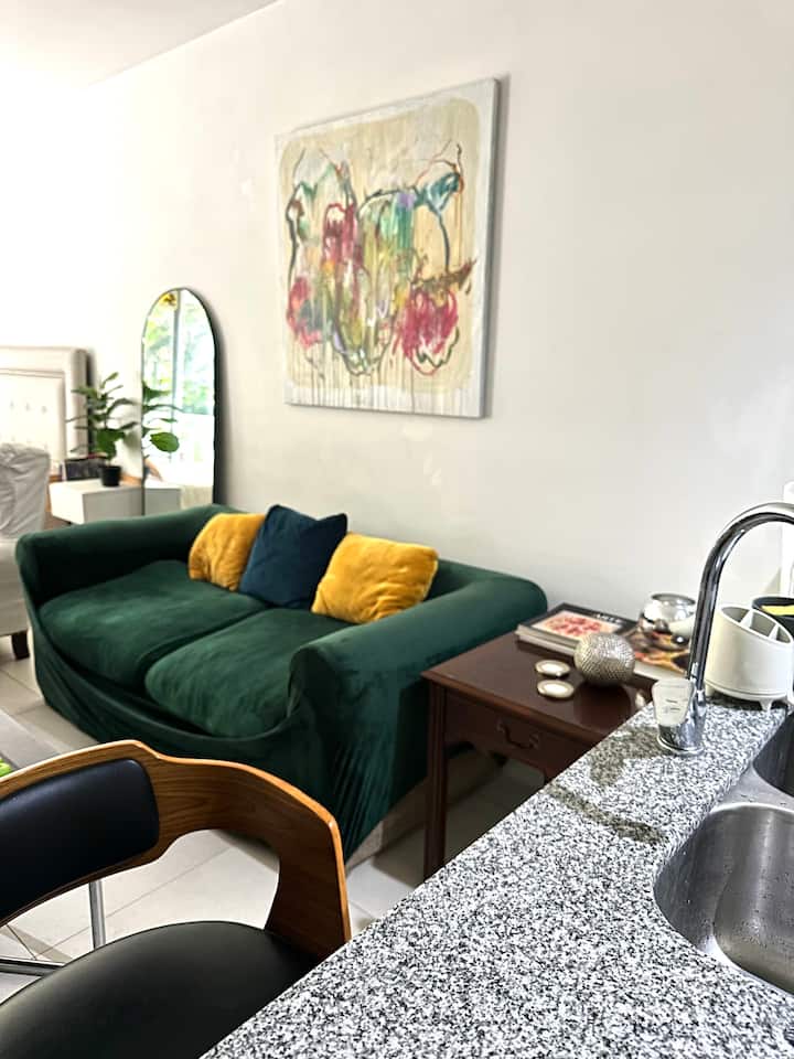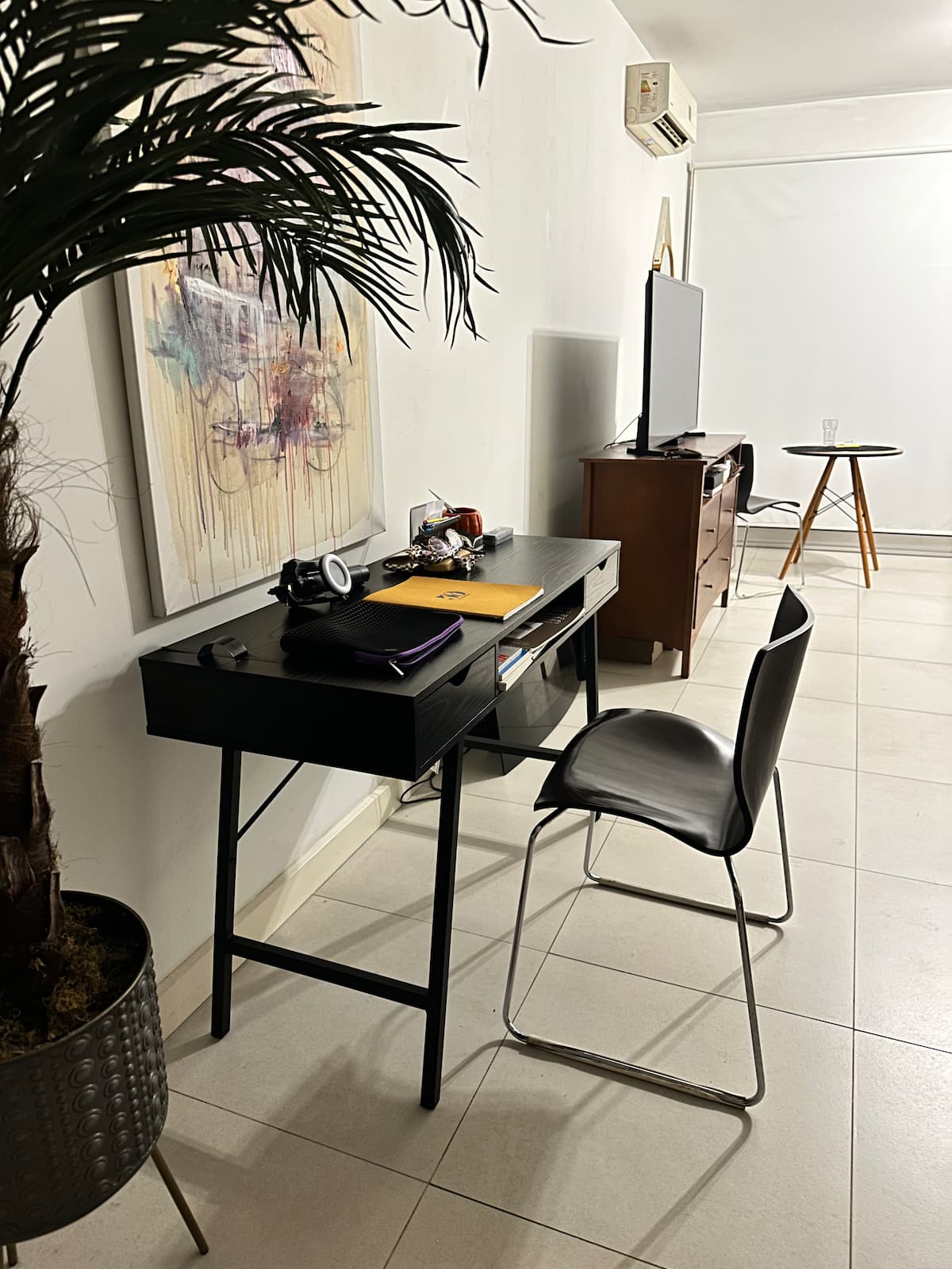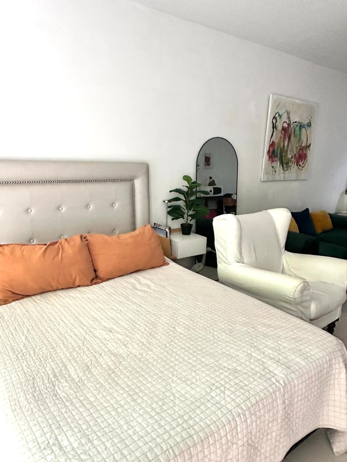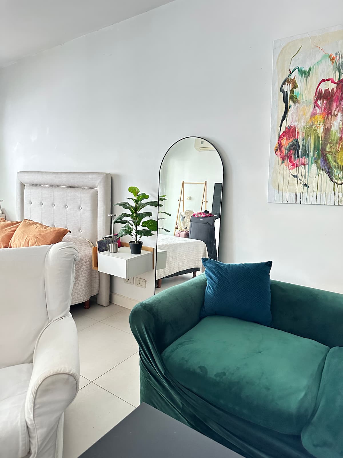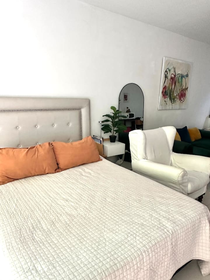 Monoambiente de departamento en Belgrano, con cama doble, ambiente comedor y cocina americana. Cuenta con heladera con freezer, microondas, horno y cocina eléctrica; aire acondicionado y estufa eléctrica. Hay lavandería de uso con fichas en planta baja, y parrilla en la terraza con reserva previa. Incluye Wi-Fi de alta velocidad y TV por cable. El acceso es al departamento completo.