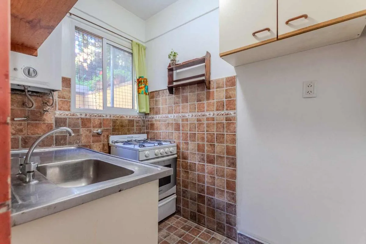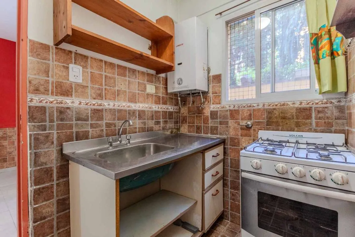 Departamento de 2 ambientes con patio en planta baja en Belgrano. Living comedor con salida al patio que da al pulmón de manzana. Cocina completa con calefón nuevo, baño completo con ducha y baulera en la parte superior; dormitorio con placard empotrado y espacio para cama de 1 plaza. Agua corriente con fuerte tiraje por tratarse de una planta baja; calefacción por estufa a gas con tiro balanceado. Expensas aprox. de $170.000.