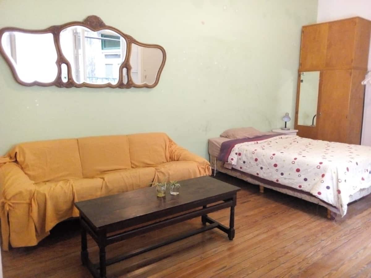 Habitación en alquiler en Boedo con cama doble. Está destinada a 1 persona. Si dos personas quieren compartir la cama, el precio se define a acordar.