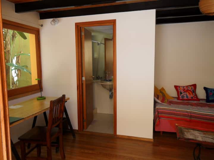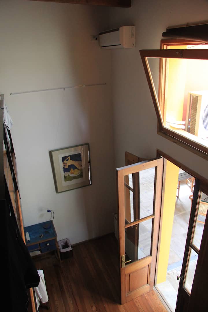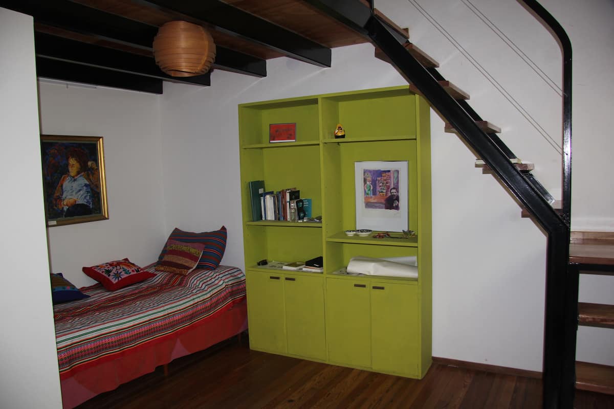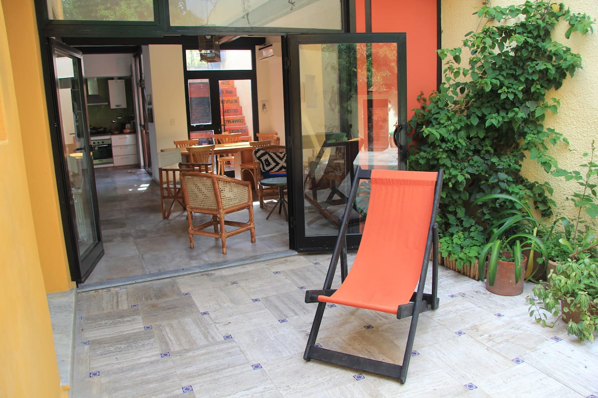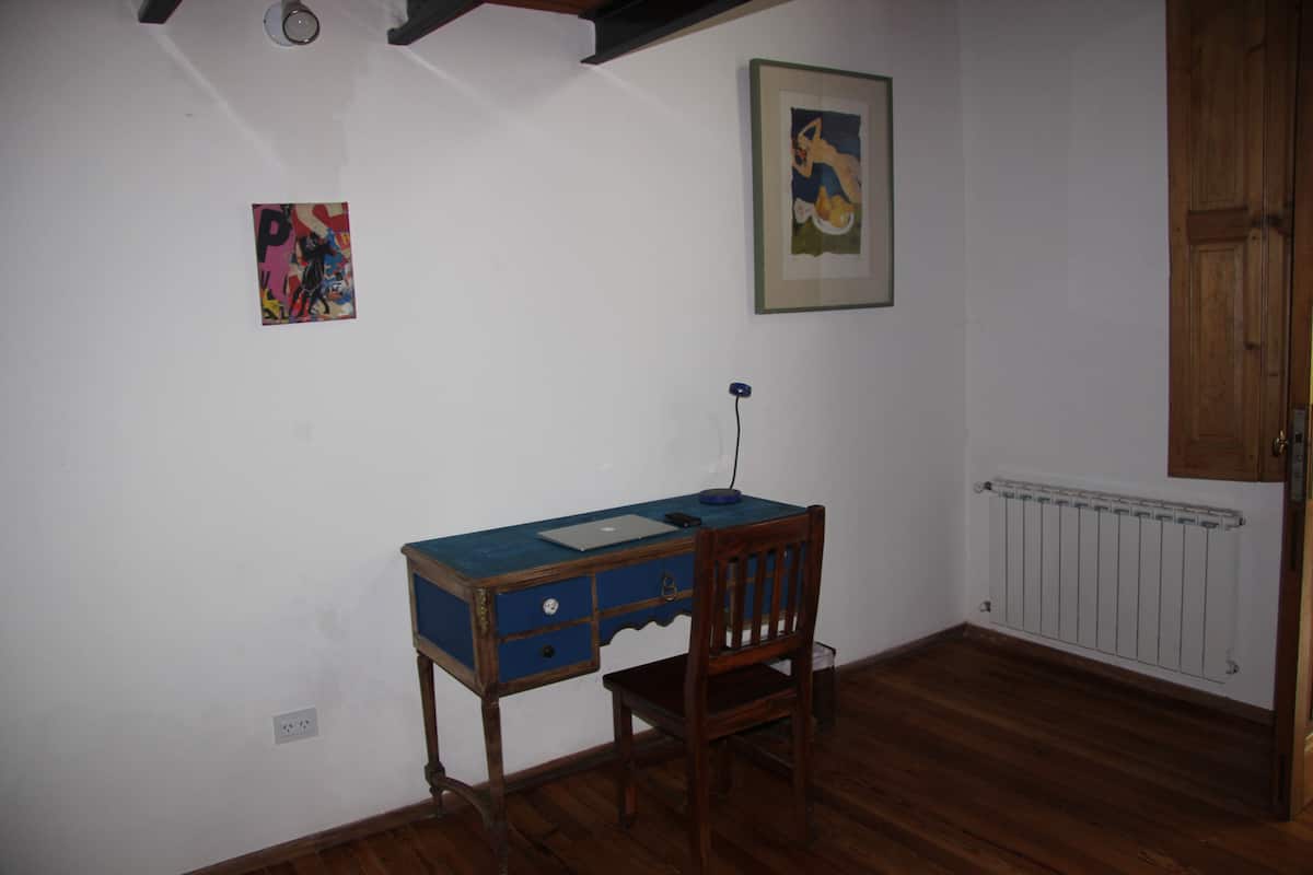 Casa chorizo en Boedo, con 2 ambientes al contrafrente, con vista al patio. Cada ambiente cuenta con cama doble, placard con caja de seguridad y escritorio. Hay calefacción central y aire acondicionado frío/calor en los ambientes, además de WiFi. Acceso a espacios comunes compartidos: cocina, living con sector de TV, parrilla y terraza.