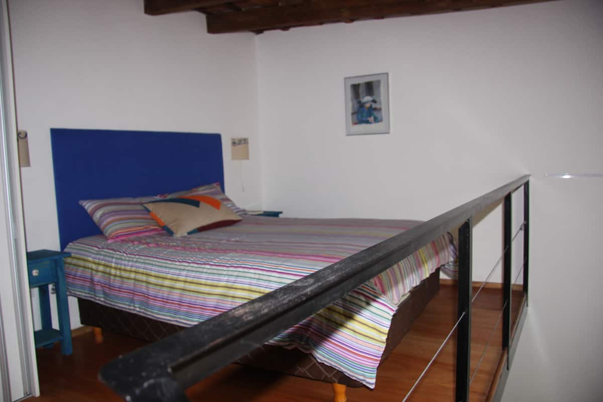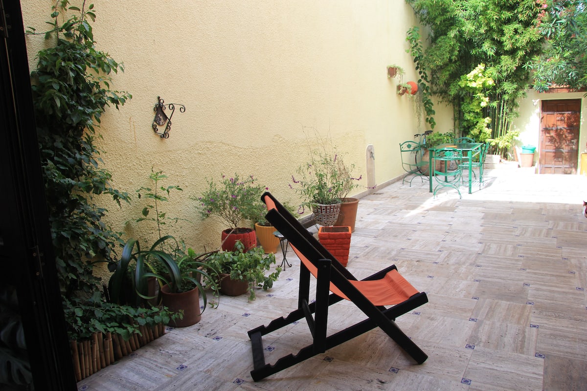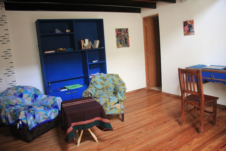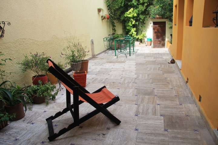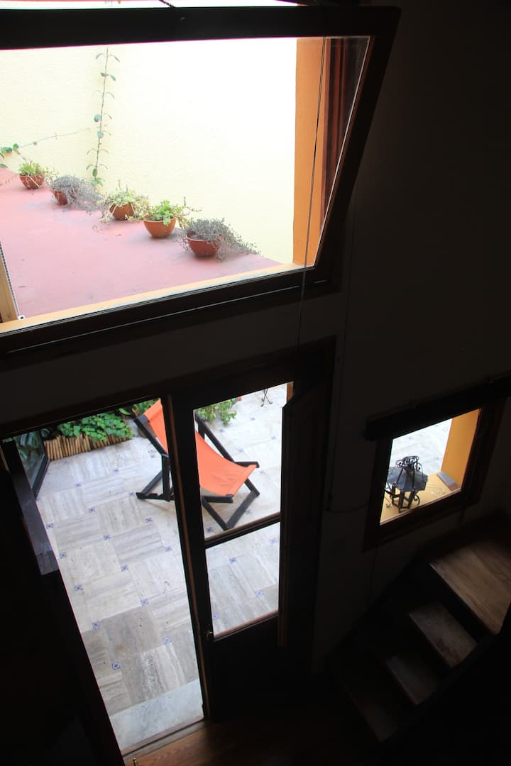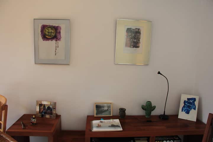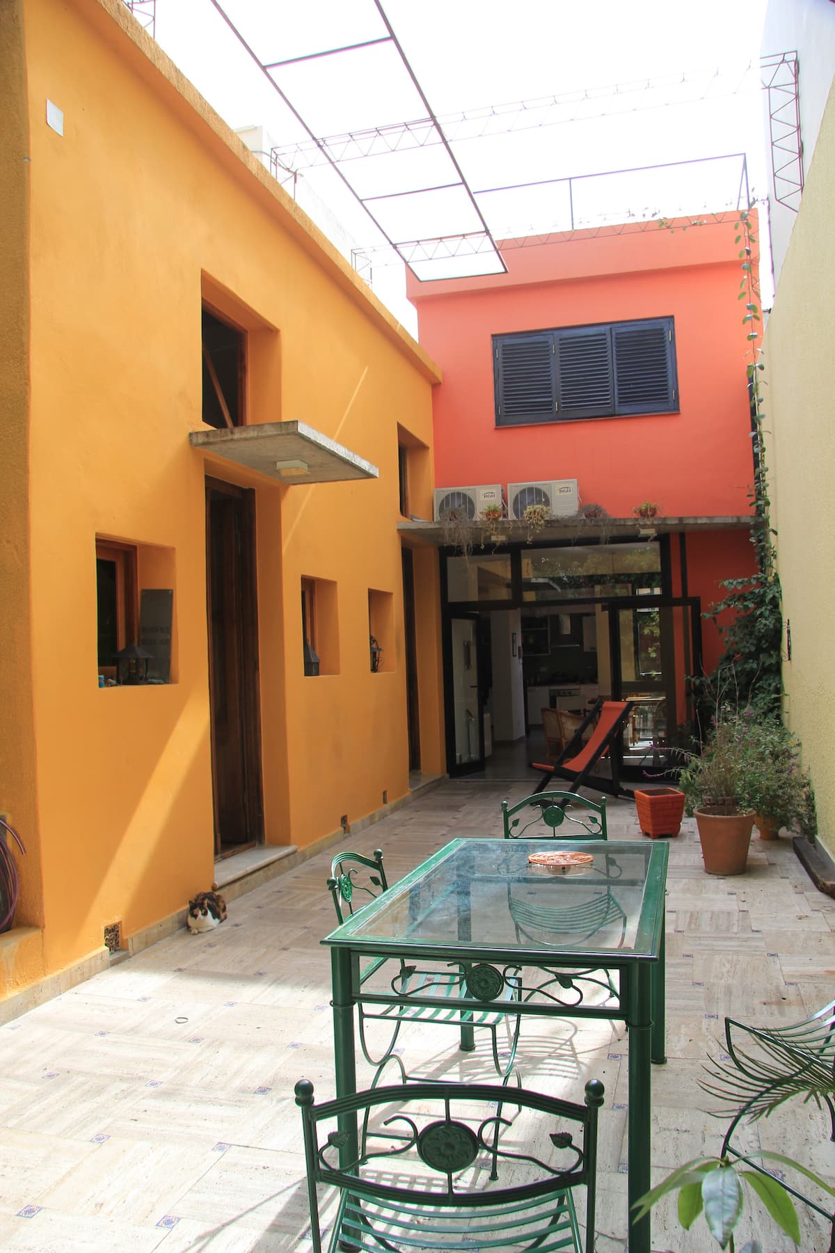 Casa chorizo en Boedo, con 2 ambientes al contrafrente, con vista al patio. Cada ambiente cuenta con cama doble, placard con caja de seguridad y escritorio. Hay calefacción central y aire acondicionado frío/calor en los ambientes, además de WiFi. Acceso a espacios comunes compartidos: cocina, living con sector de TV, parrilla y terraza.